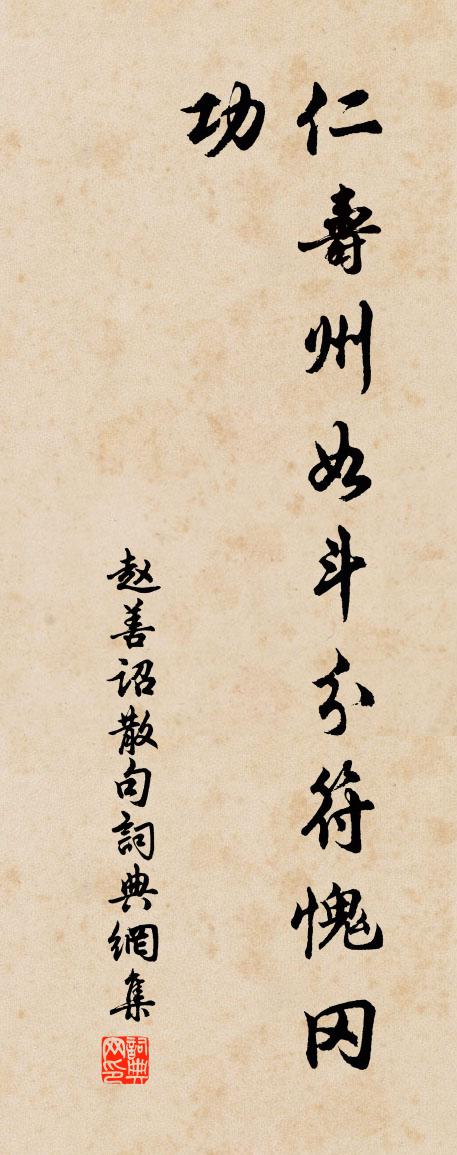 詩詞名句歷史字典書法欣賞書法字典國語詞典說文解字康熙字典古漢語字典標 題 作 者 詩 句 句作者:趙善詔 朝代:宋代句原文仁壽州如斗,分符愧岡功。詩詞問答問:句的作者是誰?答:趙善詔問:句寫於哪個朝代?答:宋代趙善詔句書法欣賞句書法作品詩詞推薦爇心香 繼重陽韻馬鈺〔元代〕此個扶風。幼習儒風。遇風仙、傳得清風。風狂便做。總笑餘風。這風風風,風得煞,似心風。脫俗宜風,離境收臨洮龍興寺玄上人院,同詠青木香叢岑參〔唐代〕移根自遠方,種得在僧房。六月花新吐,三春葉已長。抽莖高錫杖,引影到繩床。只為能除疾,傾心向藥王。姑孰十詠天門山李白〔唐代〕迥出江山上,雙峰自相對。岸映松色寒,石分浪花碎。參差遠天際,縹緲晴霞外。落日舟去遙,回首沉青靄。第一春秋戰國門陳靈公周曇〔唐代〕誰與陳君嫁禍來,孔寧行父夏姬媒。靈公徒認徵舒面,至死何曾識禍胎。答趙守見貽這韻曹彥約〔宋代〕已報親題下紫泥,尚留佳識築新堤。一心國事忉忉在,萬口民歌剪剪齊。惜去轍須田父臥,催歸詔有內臣齎。舍人臨川道中釋行海〔宋代〕溪林煙靄雜斜陽,仿佛遙岸是故鄉。客里忽驚時節過,酒旗山店菊花黃。劭農翠山賦唐律二首吳潛〔宋代〕老守憂民若己傷,三回奉詔勸耕桑。周家綿遠農開國,漢室興隆谷腐倉。麥緣少地鋤山種,水怕多流累石防。田裡自勉陳宓〔宋代〕蓋世聲名都在少,君看前輩合何如。我年若此成何事,白日還同過隙駒。送邵裔員外尉長洲蘇頌〔宋代〕洞庭山側第新成,門對湖 * 鑒明。紫綬使君還政日,彩衣仙尉拜官榮。丘園自適親心樂,桴鼓稀鳴吏局清。退食奉和魯望漁具十五詠藥魚皮日休〔唐代〕吾無竭澤心,何用藥魚藥。見說放溪上,點點波光惡。食時競夷猶,死者爭紛泊。何必重傷魚,毒涇猶可作。謁冷朝奉路逢王才元舍人同在李復〔宋代〕曉路髯翁已我先,清時有味獨君偏。柳深門掩徑未掃,花落鳥啼人尚眠。顛倒著衣驚應客,咄嗟解榻遽張筵。雲開湖上成絕句呈劉伯聲四首張耒〔宋代〕湖北風來吹曉鍾,湖邊漁客閉船篷。波光不動天光闊,更在浮煙細雨中。賞心亭劉過〔宋代〕何人將我此來游,白鷺那知客有愁。如子矜持山玉立,似予迂闊水肋洲。塵襟抖擻風雲入,石刻摩挲歲月流。惆悵四言贈兄秀才入軍詩 其九嵇康〔兩漢〕良馬既閒。麗服有暉。左攬繁弱。右接忘歸。風馳電逝。躡景追飛。凌厲中原。顧盻生姿。龍山會趙以夫〔宋代〕九日無風雨。一笑憑高,浩氣橫秋宇。群峰青可數。寒城小、一水縈迴如縷。西北最關情,漫遙指、東徐南楚。黯百字謠/念奴嬌禪峰〔宋代〕中秋近也,正於門瑞氣,蔥蔥時節。隔歲維熊占吉夢,今夕天生英傑。仙籍流芳,瑞龍毓秀,應是非凡骨。詩書勛酴醾盛開二絕方回〔宋代〕羅雀閒門未寂寥,小園花事自春饒。日葵霜菊逾千本,更有酴醾十萬條。結綬鄠郊縻攝府署偶有自詠鄭谷〔唐代〕鶯離寒谷士逢春,釋褐來年暫種芸。自笑老為梅少府,可堪貧攝鮑參軍。酒醒往事多興念,吟苦鄰居必厭聞。推卻掃花游(賦瑤圃萬象皆春堂)吳文英〔宋代〕暖波印日,倒秀影秦山,曉鬟梳洗。步帷艷綺。正梁園未雪,海棠猶睡。藉綠盛紅,怕委天香到地。畫船系。舞西放鸚鵡二首司馬光〔宋代〕野性思歸久,籠樊今始開。雖知主恩厚,何日肯重來。名句推薦家山何在,雪後園林,水邊樓閣。辛棄疾《瑞鶴仙·賦梅》 富潤屋,德潤身,心廣體胖曾子《禮記·大學》 又酒趁哀弦,燈照離席。梨花榆火催寒食。周邦彥《蘭陵王·柳》 君子敵小人,亦小人也。小人友君子,亦君子也。來俊臣《羅織經·制敵卷第五》 江心雲帶蒲帆重,樓上風吹粉淚香。嚴仁《鷓鴣天·惜別》 綺席象床寒玉枕,美人何處醉黃花。汪元量《望江南·幽州九日》 滿羅衫是酒,香痕凝處,唾碧啼紅相半。張翥《陌上花·有懷》 故音樂者,所以動盪血脈,通流精神而和正心也。司馬遷《史記·樂書》 人不閒,勿事攪。人不安,勿話擾。李毓秀《弟子規·泛愛眾》 浮雲遊子意,落日故人情。李白《送友人》