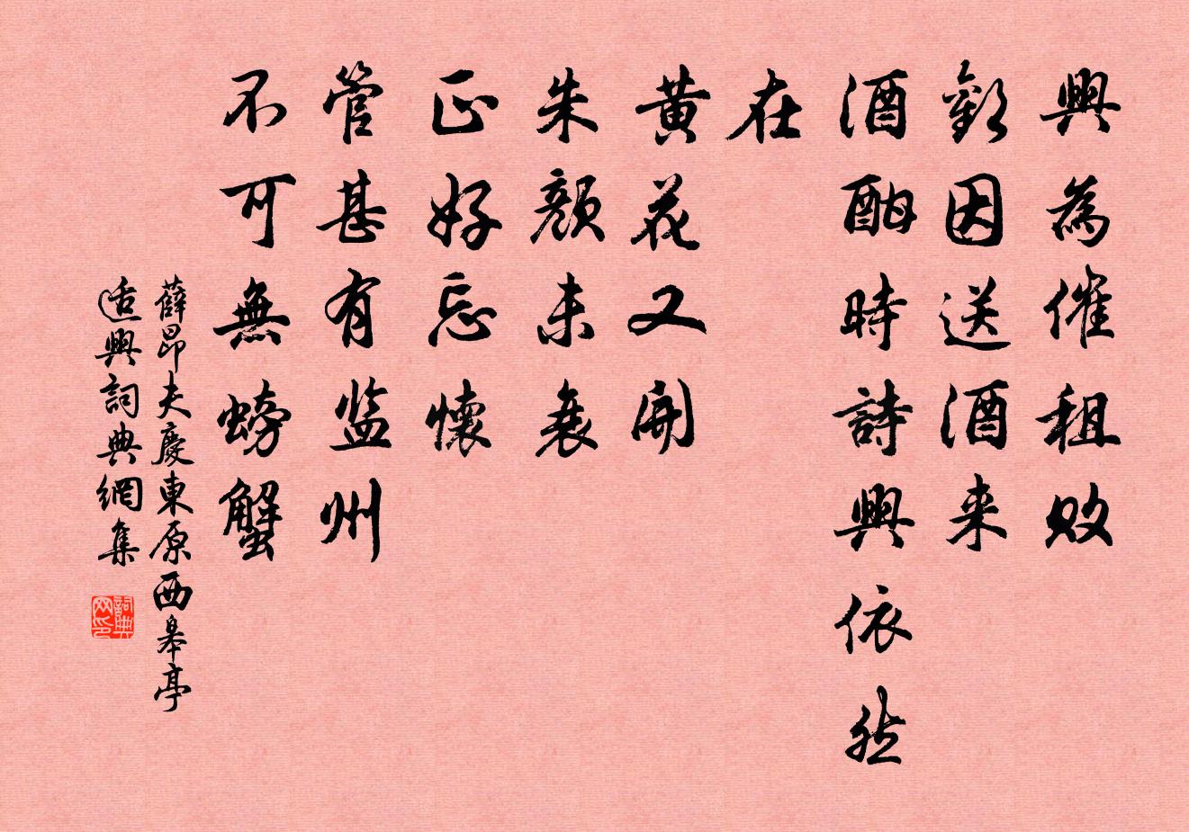 興致常常被催租事破壞,快活也常為送酒人帶來。醉醺醺時,詩興依然存在。菊花又盛開,人也未衰老,就應該把世事忘懷。管他有什麼監州來礙手礙腳,只要有螃蟹朵頤,便是我平生一快。