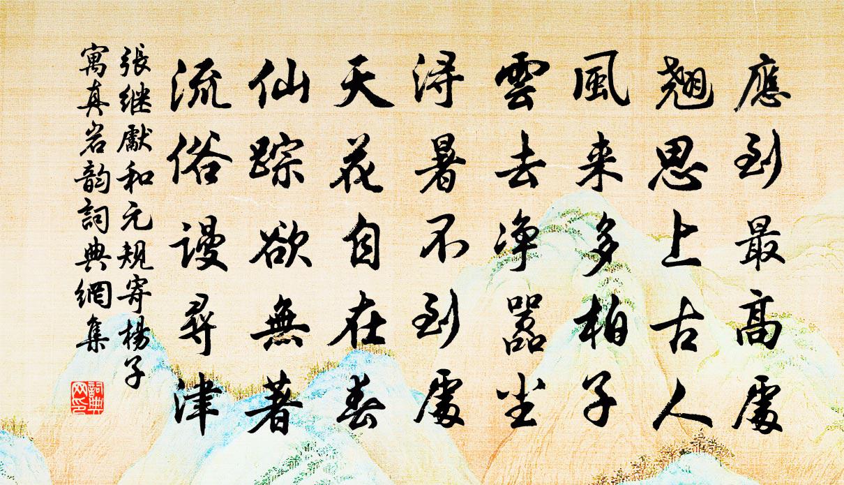 詩詞名句歷史字典書法欣賞書法字典國語詞典說文解字康熙字典古漢語字典標 題 作 者 詩 句 和元規寄楊子寓真岩韻作者:張繼先 朝代:宋代和元規寄楊子寓真岩韻原文應到最高處,翹思上古人。風來多柏子,雲去淨囂塵。潯暑不到處,天花自在春。仙蹤欲無著,流俗謾尋津。詩詞問答問:和元規寄楊子寓真岩韻的作者是誰?答:張繼先問:和元規寄楊子寓真岩韻寫於哪個朝代?答:宋代張繼先和元規寄楊子寓真岩韻書法欣賞和元規寄楊子寓真岩韻書法作品詩詞推薦回棹杜甫〔唐代〕宿昔試安命,自私猶畏天。勞生系一物,為客費多年。衡岳江湖大,蒸池疫癘偏。散才嬰薄俗,有跡負前賢。巾拂角齊己〔唐代〕聞說征人說,嗚嗚何處邊。孤城沙塞地,殘月雪霜天。會轉胡風急,吹長磧雁連。應傷漢車騎,名未勒燕然。送武補闕襄陽妓〔唐代〕弄珠灘上欲銷魂,獨把離懷寄酒樽。無限煙花不留意,忍教芳草怨王孫。兵火後野望艾可翁〔宋代〕江村兵火復,月色似長淮。鼓角連秋思,風塵帶客懷。諸公朝漠北,一老哭天涯。猶幸舂陵夜,蔥蔥氣尚佳。送淵師歸徑山蘇軾〔宋代〕我昔嘗為徑山客,至今詩筆余山色。師住此山三十年,妙語應須得山骨。溪城六月水雲蒸,飛蚊猛捷如花鷹。羨師次韻袁疇耕道見貽晁補之〔宋代〕閱世紛紛共旅亭,歸來眼為里人明。老夫未嘆嘗三已,吾子何憂取一名。仁義夙心成自誤,文章小道得高評。曲池南園十三首李賀〔唐代〕花枝草蔓眼中開,小白長紅越女腮。可憐日暮嫣香落,嫁與春風不用媒。宮北田塍曉氣酣,黃桑飲露窣宮簾。長腰早春俞桂〔宋代〕客里匆匆二月春,梅花開後柳爭新。西湖不待清明到,早有尋芳拾翠人。題趙質夫艇齋董穎〔宋代〕瘦竹吟風橫笛處,叢蕉著雨打蓬時。錦鱗只向銅盤釣,鱅比松江似更奇。陽關詞陳剛中〔宋代〕客舍休悲柳色新,東西南北一般春。若知四海皆兄弟,何處相逢非故人。故殿撰侍郎趙公挽章三首曹彥約〔宋代〕邊鎖求良牧,京華倚重臣。撫摩中有備,發擿靜無塵。效著龍顏動,班疑豹尾真。訃聞遺憾見,進秩有明綸。嘉禾百詠胥山張堯同〔宋代〕馬革浮屍去,君王太忍人,此山空廟貌,何以勸忠臣。銀葫蘆陳造〔宋代〕山水佳有餘,我與之周旋。江行已久矣,今復領其全。漾舟銀葫蘆,雪在春漸妍。素瓊間蒼玉,化工與雕鐫。屏圍詠槐李復〔宋代〕古槐疏慘倚頹牆,病葉先秋已半黃。封植不知何歲月,凋零今困幾風霜。老根傍出人供爨,蠹腹多穿馬系韁。嘆惜張才叔屢作文公先生像如其生焉亦託名不朽矣蔡沈〔宋代〕紫陽遺像壁間開,誰寫當年道義懷。從此春風百千億,化身皆自筆端來。丙申元日徐端〔宋代〕丙申正月初一日,巢君野人拈禿筆。塗窗作鴉憶少年,不知老醜光陰疾。退藏未了桑簪南,生涯代以崖蜂蜜。小兒水磨亭子歐陽修〔宋代〕多病山齋厭鬱蒸,經時久不到東城。新荷出水雙飛鷺,喬木成陰百囀◇。載酒未妨佳客醉,憑高仍見老農耕。史君入道詩十九首王慶升〔宋代〕先天妙質罕人明,盡向虛無喚已名。術極重歸無極後,謂之皇極始長生。聞角方岳〔宋代〕殘角吹霜月欲斜,天寒無奈客思家。不知野竹滄江上,開到梅梢第幾花。病中聞鶯啼曾幾〔宋代〕獨園森古木,其下客幽棲。盡日綠陰合,有時黃鳥啼。一聲添晝寂,百囀使人迷。賴汝生佳聽,身今氣慘恓。名句推薦鶯花猶怕春光老,豈可教人枉度春?佚名《增廣賢文·上集》 楓葉千枝復萬枝,江橋掩映暮帆遲。魚玄機《江陵愁望寄子安》 橫戈從百戰,直為銜恩甚。李白《塞下曲六首》 覆巢之下,復有完卵劉義慶《世說新語·言語》 長江如虹貫,蟠繞其下。宋濂《閱江樓記》 柘彈何人發,黃鸝隔故宮。溫庭筠《清明日》 遊人記得承平事,暗喜風光似昔年。韋莊《長安清明》 深宮桃李無人問,舊愛玉顏今自恨。元好問《玉樓春·驚沙獵獵風成陣》 雁過也,正傷心,卻是舊時相識。李清照《聲聲慢·尋尋覓覓》 銅盤燭淚已流盡,霏霏涼露沾衣周邦彥《夜飛鵲·河橋送人處》