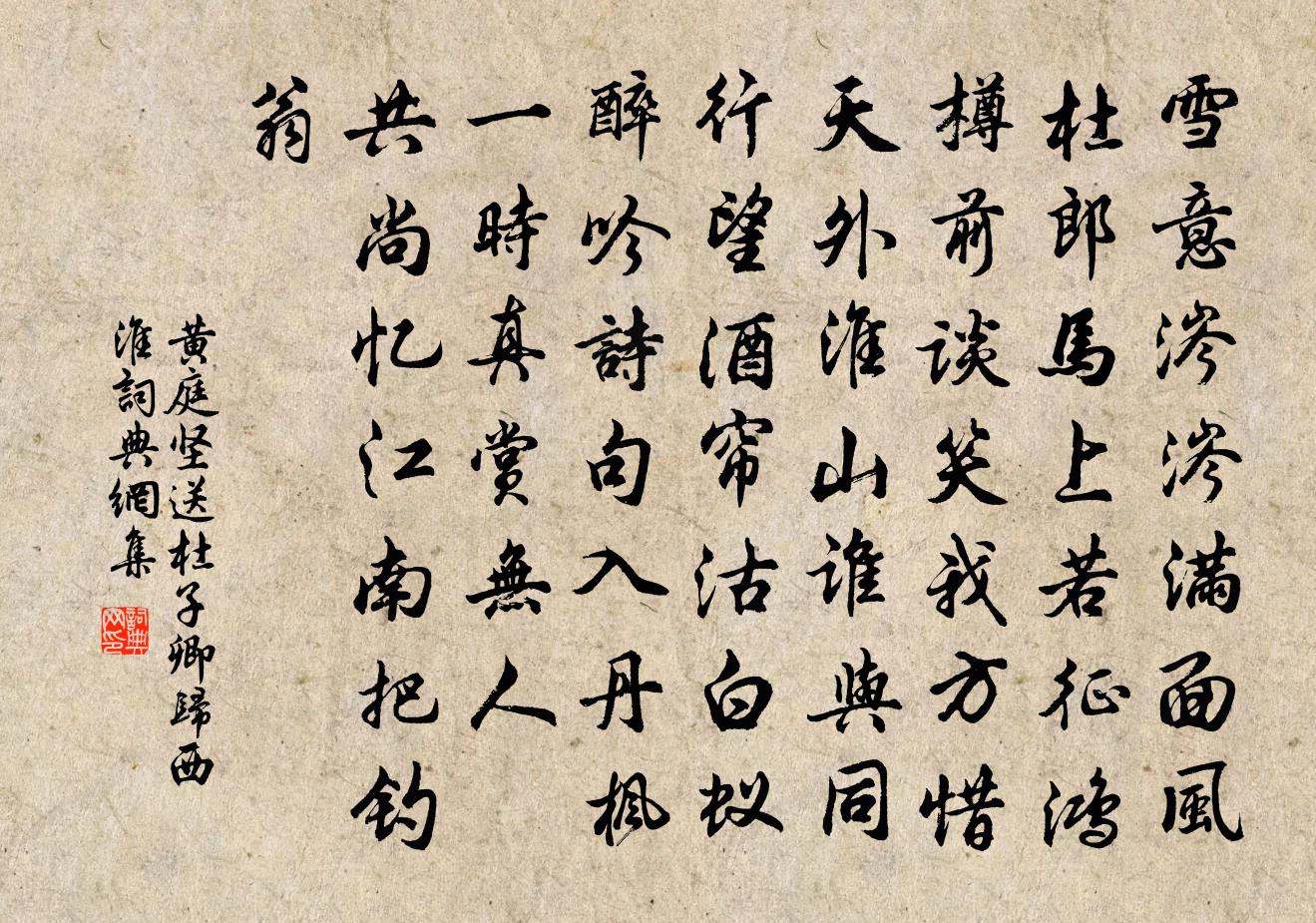 黃庭堅送杜子卿歸西淮書法欣賞