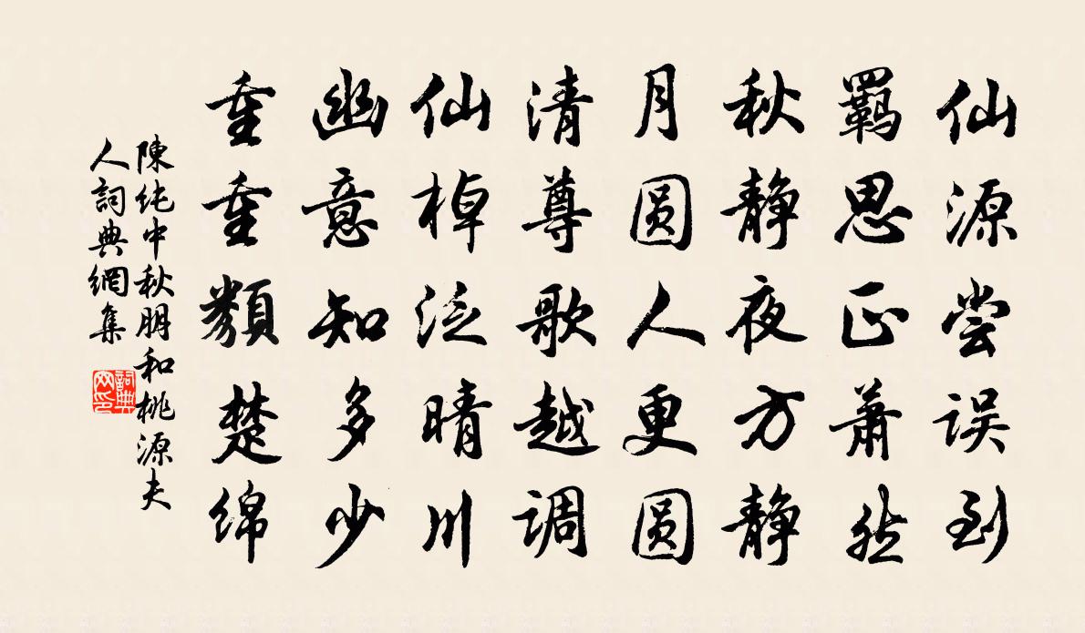 詩詞名句歷史字典書法欣賞書法字典國語詞典說文解字康熙字典古漢語字典標 題 作 者 詩 句 中秋朋和桃源夫人作者:陳純 朝代:宋代中秋朋和桃源夫人原文仙源嘗誤到,羈思正蕭然。秋靜夜方靜,月圓人更圓。清尊歌越調,仙棹泛晴川。幽意知多少,重重類楚綿。詩詞問答問:中秋朋和桃源夫人的作者是誰?答:陳純問:中秋朋和桃源夫人寫於哪個朝代?答:宋代陳純中秋朋和桃源夫人書法欣賞中秋朋和桃源夫人書法作品詩詞推薦短歌行曹叡〔魏晉〕翩翩春燕。端集余堂。陰匿陽顯。節運自常。厥貌淑美。玄衣素裳。歸仁服德。雌雄頡頏。執志精專。絜行馴良。三月三日雨作遣悶十絕句楊萬里〔宋代〕犀日何緣似個長,睡鄉未苦怯茶槍。春風解惱詩人鼻,非葉非花只是香。不寐方回〔宋代〕眇忽微茫一入思,穿天匝地遍垓維。殘秋夜靜山深處,孤客燈昏酒醒時。自寶此身方有壽,不窮我輩更無詩。少陵【中呂】上小樓_題情團圓未任昱〔元代〕題情團圓未成,嬋娟空病。桂子虛庭,翠羽圍屏,雁足寒檠。巴到明,空自省,青樓薄倖,恨分開鳳釵鸞鏡。隱居崴晚出城楊萬里〔宋代〕溫飽能消底?奔忙自作痴。平生腳已繭,今日鬢將絲。山刻霜余骨,梅臨水底枝。只嫌長落莫,不道許幽奇。霜角 漁梁送客張可久〔元代〕浪花飛雪。船閣蒼雲缺。一片鸕鶿西照,檣燕語、柳絲結。話別。情哽咽。酒邊歌未闋。他日寄書雙鯉,順流過、又敘謝汪莘〔宋代〕竹翁惡俗客,屢舉卻塵翁。云何一見我,捉手形深睠。坐呼蘭溪酒,即取太白勸。階前抱關卒,為我顏色變。解榻泛五雲溪許渾〔唐代〕此溪何處路,遙問白髯翁。佛廟千岩里,人家一島中。魚傾荷葉露,蟬噪柳林風。急瀨鳴車軸,微波漾釣筒。石苔山墅閒題韋莊〔唐代〕邐迤前岡厭後岡,一川桑柘好殘陽。主人饋餉炊紅黍,鄰父攜竿釣紫魴。靜極卻嫌流水鬧,閒多翻笑野雲忙。有名和主司王起(一作和主司酬周侍郎)蒯希逸〔唐代〕一振聲華入紫薇,三開秦鏡照春闈。龍門舊列金章貴,鶯谷新遷碧落飛。恩感風雷宜變化,詩裁錦繡借光輝。誰知古邑二首宋祁〔宋代〕古邑蓬池上,私居市道鄰。初拋三釜粟,來作一廛民。乞火黔薪突,繙經振隙塵。何從復何去,更欲問圓神。送柳才僉判蔡州文同〔宋代〕翩翩河東孫,豪邁有祖德。二十補楚掾,能用口破賊。歸來入京寺,不借推挽力。驕夸固其宜,了不見顏色。題輿人情吟邵雍〔宋代〕古事參今事,今人乃古人。只應情未浹,情浹自相親。再和劉克莊〔宋代〕依本文章趁韻詩,暮年深不願人知。退閒時有賓留刺,攣痹難為長折枝。蚓竅聲微羞入社,鴉塗札惡懶臨池。僧談絕句二首吳則禮〔宋代〕滿船買了洞庭柑,雪色新裁白紵衫。喚得姬同一醉,春風相送過江南。雙雁兒楊無咎〔宋代〕休驚明日歲華新。且喜得,又逢春。北堂歌舞奉慈親。願遐齡,等大椿。□□□□□□□。□□□,□□□。□□題束季博山園二十首西崦牟巘五〔宋代〕行行西崦西,螟色蒼然入。芸芸各歸根,我亦坐內息。頌古一百首釋智愚〔宋代〕泠泠溜泣秋壑遠,纏會滄溟便泛舟。見說許由曾洗耳,可憐巢父更鞭牛。自釋葉茵〔宋代〕繁紅妒紫絢前林,杖策來棲花下陰。休道游情難似昔,可能他日尚如今。乍晴澗曲縈流水,未曉庭皋調野禽。畢竟小雨陸游〔宋代〕小雨過岩扃,殘雲傍野亭。花光相映發,鶯語苦叮嚀。舉酒和神氣,彈琴悅性靈。索居朋友絕,得句遺誰聽?名句推薦生當作人傑,死亦為鬼雄。李清照《夏日絕句》 天行有常,不為堯存,不為桀亡。荀子《荀子·天論》 誰家秋院無風入?何處秋窗無雨聲?曹雪芹《代別離·秋窗風雨夕》 素娥惟與月,青女不饒霜。李商隱《十一月中旬至扶風界見梅花》 一派青山景色幽, 前人田地後人收。范仲淹《書扇示門人》 妙年出補父兄處,公自才力應時須黃庭堅《送范德孺知慶州》 永豐柳,無人盡日飛花雪。張先《千秋歲·數聲鶗鴂》 以若所為,求若所欲,猶緣木而求魚也。孟子《孟子·梁惠王章句上·第八節》 猶有桃花流水上,無辭竹葉醉尊前。劉禹錫《憶江南·春去也》 光陰可惜,譬諸逝水。顏之推《顏氏家訓·勉學篇》