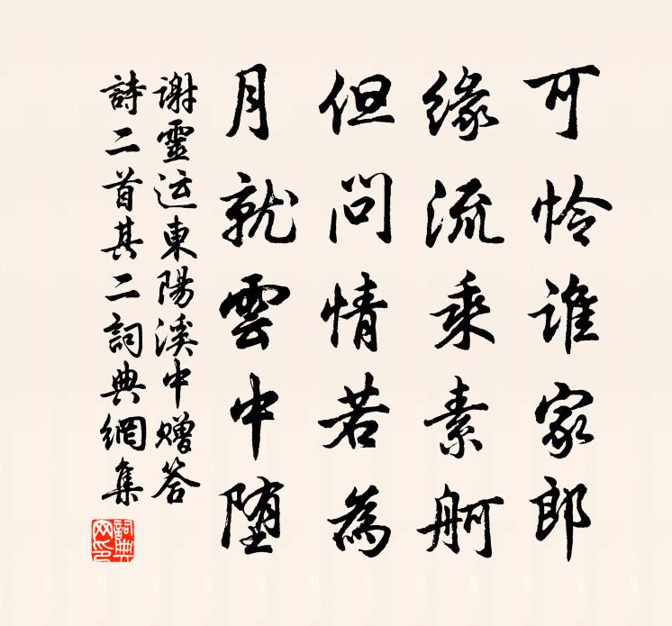 可憐誰家郎?緣流乘素舸。但問情若為,月就雲中墮。