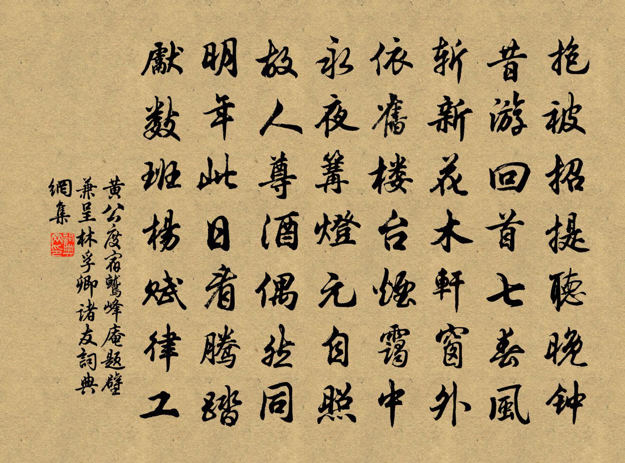 詩詞名句歷史字典書法欣賞書法字典國語詞典說文解字康熙字典古漢語字典標 題 作 者 詩 句 宿鷲峰庵題壁兼呈林孚卿諸友作者:黃公度 朝代:宋代原文抱被招提聽晚鐘,昔游回首七春風。斬新花木軒窗外,依舊樓台煙靄中。永夜篝燈元自照,故人尊酒偶然同。明年此日看騰踏,先數班楊賦律工。詩詞問答問:《宿鷲峰庵題壁兼呈林孚卿諸友》的作者是誰?答:黃公度問:該詩寫於哪個朝代?答:宋代書法欣賞宿鷲峰庵題壁兼呈林孚卿諸友書法作品詩詞推薦賦雪徐集孫〔宋代〕漫天飄瑞壓囂塵,一夜西湖幻出銀。煎入茶鐺清肺腑,吟歸詩句爽精神。糝填鶴跡看旋沒,封合梅花認不真。茅舍大雨踰旬既止復作江遂大漲一陸游〔宋代〕牆角蚊雷喧甲夜,濕星昏昏出雲罅。臨堂仰占久嘆吒,懸知龍君未稅駕。行人困苦泥沒胯,居人悲啼江入舍。便晴題湯宰山居吳芾〔宋代〕住在青山下,風流踵謝家。屋頭千個竹,園裡萬株花。亂石危通徑,清泉淺見沙。幽居誰得此,倦客倍興嗟。元旦何汝樵〔宋代〕臘盡寒猶厲,春來雪未乾,流年憐易失。為客敢求安。故里屠蘇酒,新年柏葉盤,嗟哉老兄弟,誰與共清歡。朝南以詩送巴石研屏香幾用韻研屏洪咨夔〔宋代〕天上何有修月斧,巧將餘刃斲巴山。玉蜍清浸婆娑影,正在微雪點綴間。趙承遠雲扃鄒登龍〔宋代〕聞道幽居好,棲雲結數椽。庭深關竹雨,衣潤染茶煙。嵐氣生朝壁,湍聲入夜弦。半生飛動意,未得痼林泉。即事章甫〔宋代〕門靜悠悠日,春愁淡淡天。風塵殊未已,形影自相憐。有客還詩債,無人與酒錢。感時歌慷慨,憂國淚潺湲。戲題石門長老東軒柳宗元〔唐代〕石門長老身如夢,旃檀成林手所種。坐來念念非昔人,萬遍蓮花為誰用。如今七十自忘機,貪愛都忘筋力微。莫向減字木蘭花張元乾〔宋代〕客亭小會。可惜無歡容易醉。歸去更闌。細雨鳴窗一夜寒。昏然獨坐。舉世疏狂誰似我。強撥爐煙。也道今宵是上寧退耕岩維石隆湖隱皆嘗有德於余圖報未能而釋文珦〔宋代〕吾生素無寵祿願,自向空林灰百念。但存心地如砥平,不道人間有崖塹。皇天幸能念無辜,脫我險難歸夷塗。天定偈頌七十六首釋師觀〔宋代〕時不待人,月不破五。那一著子,未敢相許。和奇父二首胡寅〔宋代〕丈室虛明了不扃,寸田蕪廢正須耕。容顏半嘆年華改,品目猶煩月旦評。洗礪子荊真可慕,中庸伯始竟何成。且將再使河北司馬光〔宋代〕桑麥青青四月初,皇華使者又指車。為臣豈得辭王事,只向金鑾坐讀書。書璨相公梅卷方岳〔宋代〕一梢兩梢曉灘月,三花五花暮江雪。春風到手眼生寒,煙水村深有茅蕝。送人歸吳寇準〔宋代〕忽憶湖山景,沿流興不窮。孤舟將去夜,絕塞已來鴻。白髮前期近,滄川舊業空。明時方道在,莫更學漁翁。次韻蕭同年古意方岳〔宋代〕春拜有耕夫,扣角臥林麓。朝飢不能忍,肯受世薰沐。脫身從牛衣,入耳皆狗曲。何如一蓑寒,風雨立於獨。人言句呂希哲〔宋代〕將謂清風全掃地,世間今復有慮鴻。登大鞋嶺望大海楊萬里〔宋代〕杖履千崖表,波濤萬頃前。瓊天吹不定,銀地濕無邊。一石當流出,孤尖卓筆然。更將垂老眼,何許看風煙。念奴嬌(坐上和何司戶)王之望〔宋代〕堂堂七尺,懍一時人物,孤映三蜀。閒雅風流豪醉後,猶有臨邛遺俗。十載虞庠,一官楚塞,雅操凌寒玉。江山千挽東陽郭德誼陳傅良〔宋代〕簪紱何能貴,聲名幸自修。凡今為我友,幾半與君游。翰墨千年托,松梧一夜秋。令人懷昔日,烱烱夢丹丘。名句推薦先天下之憂而憂,後天下之樂而樂范仲淹《岳陽樓記》 外內表里,自相副稱。王充《論衡·卷十三·超奇篇》 軍聽了軍愁,民聽了民怕。王磐《朝天子·詠喇叭》 綠遍山原白滿川,子規聲里雨如煙。翁卷《鄉村四月》 朝聞遊子唱離歌,昨夜微霜初渡河。李頎《送魏萬之京》 人閒桂花落,夜靜春山空。王維《鳥鳴澗》 欲多傷神,財多累心!佚名《增廣賢文·下集》 故明主必謹養其和,節其流,開其源,而時斟酌焉。荀子《荀子·富國》 道不拾遺,民不妄取劉向《戰國策·秦一·衛鞅亡魏入秦》 夜來能有幾多寒,已瘦了、梨花一半。黃升《鵲橋仙·春情》