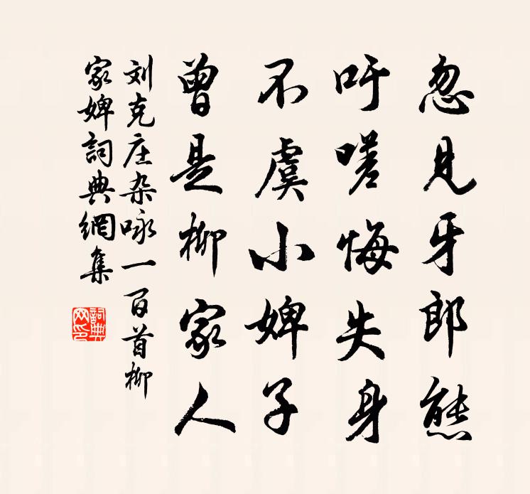忽見牙郎態,吁嗟悔失身。不虞小婢子,曾是柳家人。