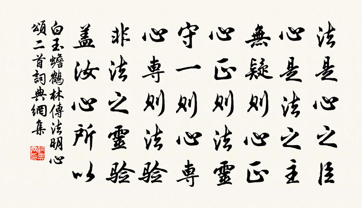 詩詞名句歷史字典書法欣賞書法字典國語詞典說文解字康熙字典古漢語字典標 題 作 者 詩 句 鶴林傳法明心頌二首作者:白玉蟾 朝代:宋代鶴林傳法明心頌二首原文法是心之臣,心是法之主。無疑則心正,心正則法靈。守一則心專,心專則法驗。非法之靈驗,蓋汝心所以。詩詞問答問:鶴林傳法明心頌二首的作者是誰?答:白玉蟾問:鶴林傳法明心頌二首寫於哪個朝代?答:宋代問:鶴林傳法明心頌二首是什麼體裁?答:五古白玉蟾鶴林傳法明心頌二首書法欣賞鶴林傳法明心頌二首書法作品詩詞推薦袁居士輓詞林季仲〔宋代〕君看袁居士,蒼然松柏姿。生涯一樽酒,事業五言詩。去跨月邊鶴,空餘床下龜。江村相送處,尚憶杖過眉。五更枕上丁竹岩〔宋代〕一著非時一局非,出房愁到曉鍾時。楠榴枕上平生事,聽雨聽風聽子規。上清寶鼎詩李白〔唐代〕朝披夢澤雲,笠釣青茫茫。尋絲得雙鯉,中有三元章。篆字若丹蛇,逸勢如飛翔。歸來問天老,奧義不可量。金刀次韻韓川奉祠西太乙宮四首黃庭堅〔宋代〕泰壇下瑞雲黃,雨師灑道塵香。便面猶承墜露,金鉦半吐東牆。蘭亭歸途陳起〔宋代〕山水佳如此,都忘客路難。鷗明寒渚淨,雁入野田寬。事久人多厭,心清夢卻安。獨憐鸞翼遠,誰念篋衣單。眼兒媚(下郭趙園)韓淲〔宋代〕西溪回合小青蒼。梅雨弄殘陽。意行隴畝,景分庭院,乳燕春長。酒深不用人歌嘯,鋤圃試商量。細晞菜甲,旋尋和胡宿韻寄蔣之奇鄧忠臣〔宋代〕夢罷靜思岩野回,何心商鼎作羙梅。東門祖帳新光寵,北斗樞星舊冠魁。無故弟兄真可樂,相忘父子總多才。扁舟摸魚兒(餞黃侍郎疇若勸酒)魏了翁〔宋代〕向江頭、幾回凝望,垂楊那畔舟才艤。江神似識東歸意。故放一篙春水。卻總被。三百里人家、祖帳連天起。且行如珠上人釋祖欽〔宋代〕等閒剔出影團團,一一如珠走玉盤。風前燦燦寶光寒,落落誰從轉處看。當隨機括動,休被眼睛瞞,魚目光生也一與黨侍御元結〔唐代〕眾坐吾獨歡,或問歡為誰。高人黨茂宗,復來官憲司。昔吾順元和,與世行自遺。茂宗正作吏,日有趨走疲。及吾壬寅二月,有詔令郡吏分往屬縣滅決囚禁。自蘇軾〔宋代〕遠人罹水旱,王命釋俘囚。分縣傳明詔,尋山得勝游。蕭條初出郭,曠盪實消憂。薄暮來孤鎮,登臨憶武侯。崢嶸送張柔翁必強西上王邁〔宋代〕說詩匡鼎筆如椽,此去雲宵稱著鞭。富貴恰當年五十,扶搖快上路三千。乃翁積種今歸子,是理乘除信有天。梅友神光燦譚處端〔元代〕奔名逐利, * 牽纏,昏昏轉轉迷濛。虛幻浮華,不覺暗易顏童。百歲雲間電閃,限臨頭、那肯從容。不肯悟,到蝶戀花晏幾道〔宋代〕庭院碧苔紅葉遍,金菊開時,已近重陽宴。日日露荷凋綠扇,粉塘煙水澄職練。試倚涼風醒酒面,雁字來時,恰向挽蔡祭酒詩二首曹彥約〔宋代〕昔締金昆好,慈恩有舊題。及今如社燕,與子共朝雞。未見星常北,相逢日易西。定應湖上路,塞色黯招提。雜感顧禧〔宋代〕不與漁樵狎,甯知世事非。功成枯戰骨,發端誤儒衣。風雨槐陰夢,倉黃斗柄微。東鄰瓜正熟,把酒裛清輝。次韻和岳醵飲西峰寺分韻成詩十四首見寄陳著〔宋代〕傑瓶酒榼近多空,書友詩朋亦閒逢。只有漁樵是知己,也嫌老似雪中松。禪人並化主寫真求贊釋正覺〔宋代〕妙明絕思,廓靜無涯。智空三際,性融二儀。借功光歷歷,借伴老垂垂。文彩縱橫成底事,機關不初不掛梭絲。再用前韻四首郭印〔宋代〕身留瘴癘地,家住水雲村。何事懷三徑,無才叩九門。秋風吹旅思,夜雨滴歸魂。目斷岷峨路,煙深夕照昏。水國詩(以下雜體詩)陸龜蒙〔唐代〕水國不堪旱,斯民生甚微。直至葭菼少,敢言魚蟹肥。我到荒村無食啖,對案又非梁謝覽。況是乾苗結子疏,歸時名句推薦空山松子落,幽人應未眠。韋應物《秋夜寄邱員外 / 秋夜寄丘二十二員外》 明眸皓齒誰復見,只有丹青余淚痕。蘇軾《虢國夫人夜遊圖》 凌晨過驪山,御榻在嵽嵲杜甫《自京赴奉先縣詠懷五百字》 見善則遷,有過則改。佚名《易傳·象傳下·益》 百花頭上開,冰雪寒中見。辛棄疾《生查子·重葉梅》 史有三長:才、學、識。宋祁、歐陽修、范鎮、呂夏卿等《新唐書·列傳·卷五十七》 天涯海角悲涼地,記得當年全盛時。趙鼎《鷓鴣天·建康上元作》 北風吹白雲,萬里渡河汾。蘇頲《汾上驚秋》 生前心已碎,死後性空靈。曹雪芹《紅樓夢·第五回》 綠桑高下映平川,賽罷田神笑語喧。歐陽修《田家》