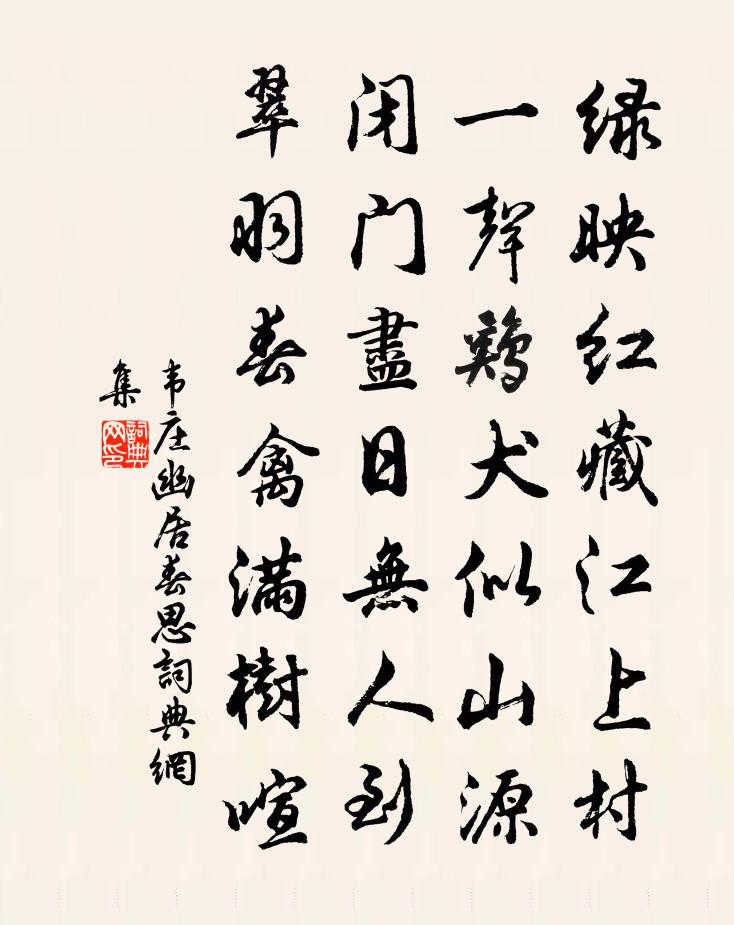 綠映紅藏江上村,一聲雞犬似山源。閉門盡日無人到,翠羽春禽滿樹喧。