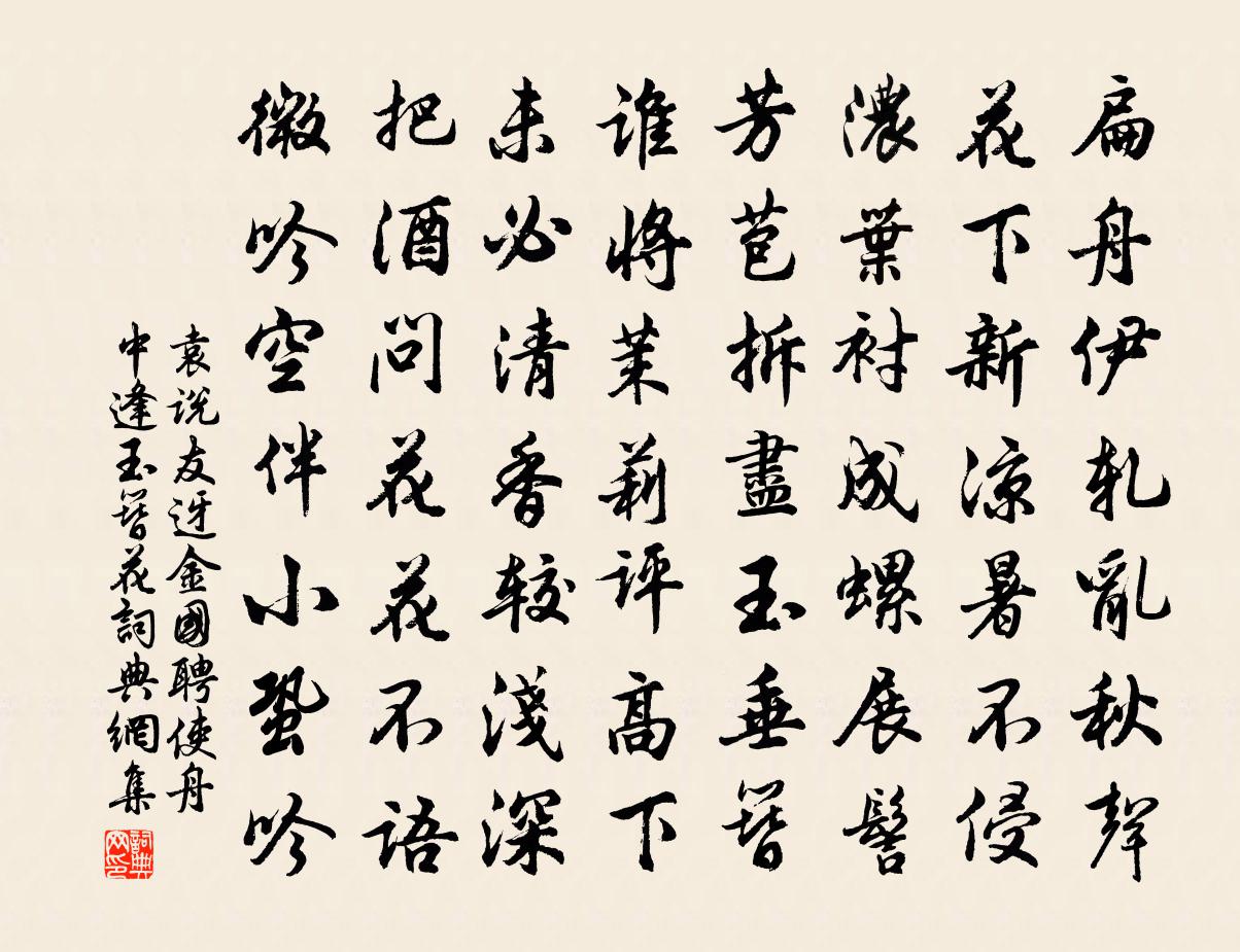 詩詞名句歷史字典書法欣賞書法字典國語詞典說文解字康熙字典古漢語字典標 題 作 者 詩 句 迓金國聘使舟中逢玉簪花作者:袁說友 朝代:宋代迓金國聘使舟中逢玉簪花原文扁舟伊軋亂秋聲,花下新涼暑不侵。濃葉襯成螺展髻,芳苞拆盡玉垂簪。誰將茉莉評高下,未必清香較淺深。把酒問花花不語,微吟空伴小蛩吟。詩詞問答問:迓金國聘使舟中逢玉簪花的作者是誰?答:袁說友問:迓金國聘使舟中逢玉簪花寫於哪個朝代?答:宋代袁說友迓金國聘使舟中逢玉簪花書法欣賞迓金國聘使舟中逢玉簪花書法作品詩詞推薦感皇恩阮閱〔宋代〕芝檢下中天,春寒猶淺。餘閏銀蟾許重看。滿城燈火,又遍高樓深院。寶鞍催繡轂,香風軟。憔悴慢翁,蕭條古縣為茭橋居士作念念即佛頌黃庭堅〔宋代〕諸介心內,眾生心心作佛。眾生心中,諸佛念念證真。君言諸佛無相,山鬼窟里安葬。即今十二時中,是誰隨波逐偈頌一百一十七首釋紹曇〔宋代〕客路賓士歲月深,朝游東魯暮西秦。子規苦勸人歸去,血濺岩花幾見春。清音亭陳洵直〔宋代〕水石何曾有古今,如絲如竹度高深。自疑扁榜通塵聽,百代潺潺無賞音。自警二首宋度宗〔宋代〕孳孳為善,無怠講習。心思唐虞,聖道可人。淨信院陳岩〔宋代〕來自青松翠竹關,秋風吹帽醉醒間。紛紛遮眼塵如海,拈起毫端又說山。蘇武慢虞集〔元代〕對酒當歌,無愁可解,是個道人標格。好風過耳,皓月盈懷,清淨水聲山色。世上千年,山中七日,隨處慣曾為客野廟司馬光〔宋代〕古廟崩榱在,牆間雜樹荒。依稀余像設,寂寞必祠堂。舊日牲豭地,今晨孤兔鄉。英靈如未滅,何以度淒涼。梅洪咨夔〔宋代〕竹屋茅檐一樹斜,冰霜意氣蓋韶華。有餘不盡如知道,半已青青半尚花。青玉案(再和)張元乾〔宋代〕王孫陌上春風E649。蕊珠宴、雲軿從。歸去笙歌常醉擁。蠟殘花炬,月侵冰簟,慣作涼堂夢。玉人勸客釵斜鳳逍遙詠宋太宗〔宋代〕非來非去亦非忙,所是凡為自短長。專志比徒歸一等,誰知禮度畏三光。相傳只要達真境,勿說辛勤卻易傷。授得沁園春(為友人壽)程正同〔宋代〕富敵陶猗,才卑賈馬,氣吞曹劉。更妓娛安石,東山名勝,樽盈文舉,北海風流。事冷千年,身兼八子,豪舉伊誰題洪內翰爽榭裘萬頃〔宋代〕霧閣雲窗天外安,懸知幽趣勝人間。簾櫳夜月浮銀海,桃李春風醉玉山。自笑紅塵無暇日,浪憑清夢覓商顏。何如數花風(別義興諸友)張炎〔宋代〕好遊人老,秋鬢蘆花共色。征衣猶戀去年客。古道依然黃葉。誰家蕭瑟。自笑我、如何是得。酒樓仍在,流落天涯齊天樂劉辰翁〔宋代〕海枯泣盡天吳淚。又漲經天河水。萬古魚龍,雷收電卷,宇宙剎那間戲。沉蘭墜芷。想重整荷衣,頓驚腰細。尚有武陵別文瑩上人張師正〔宋代〕碧嶂孤雲冉冉歸,解攜情緒異當時。餘生歲月能多少,此別應難約後期。送蒲元禮南歸黃庭堅〔宋代〕元禮佳少年,俊氣欲無敵。文章詩最豪,溟漲助筆力。三年葉公城,於我固多益。恨無荊雞材,使君有羽翼。此行游峨眉馮時行〔宋代〕向來一紀登臨意,白髮頹齡才一至。阮哭窮途真可笑,孔小天下或如是。平生歷覽廓無礙,方稱老懷疏不緻。安能負謫後登乾越亭作劉長卿〔唐代〕天南愁望絕,亭上柳條新。落日獨歸鳥,孤舟何處人。生涯投越徼,世業陷胡塵。杳杳鍾陵暮,悠悠鄱水春。秦台頌證道歌證道歌釋印肅〔宋代〕境靜林閒獨自游,端威無動體皆周。元來不管他人事,任彼橋流水不流。名句推薦薄倖郎君何日到,想自當初,莫要相逢好。施耐庵《蝶戀花·一別家山音信杳》 巨屨小屨同賈,人豈為之哉。孟子《孟子·滕文公章句上·第四節》 明月出海底,一朝開光曜。李白《古風·齊有倜儻生》 鎮日思歸歸未得,孤負殷勤杜宇。王瀾《念奴嬌·避地溢江書於新亭》 天時懟兮威靈怒,嚴殺盡兮棄原野。屈原《國殤》 善謀生者,但令長幼內外,勤修恆業,而不必富其家王永彬《圍爐夜話·第九則》 人人親其親、長其長而天下平。孟子《孟子·離婁章句上·第十一節》 帆影依依楓葉外,灘聲汩汩碓床間查慎行《雨過桐廬》 閨中風暖,陌上草薰江淹《別賦》 輕陰池館水平橋,一番弄雨花梢。陳子龍《畫堂春·雨中杏花》