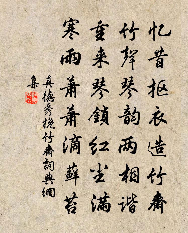 詩詞名句歷史字典書法欣賞書法字典國語詞典說文解字康熙字典古漢語字典標 題 作 者 詩 句 挽竹齋作者:真德秀 朝代:宋代挽竹齋原文憶昔摳衣造竹齋,竹聲琴韻兩相諧。重來琴鎖紅塵滿,寒雨蕭蕭滴蘚苔。詩詞問答問:挽竹齋的作者是誰?答:真德秀問:挽竹齋寫於哪個朝代?答:宋代真德秀挽竹齋書法欣賞挽竹齋書法作品詩詞推薦殘句:杜甫且為詩宰相王禹偁〔宋代〕杜甫且為詩宰相。寄遠杜牧〔唐代〕兩葉愁眉愁不開,獨含惆悵上層台。碧雲空斷雁行處,紅葉已雕人未來。塞外音書無信息,道傍車馬起塵埃。功名山西莊舍贈信上人和彥時兄四首王之道〔宋代〕四壁蕭然犬自馴,年來食粥甑生塵。相逢未暇寒溫語,請效參寥作故人。劉大資輓詞二首陳與義〔宋代〕天柱欹傾日,堂堂墮虜圍。遂聞王蠋死,不見華元歸。一代名超古,千年淚染衣。當時如有繼,猶足變危機。葉濤致遠見和二詩複次其韻(濤顛倒元韻。)蘇軾〔宋代〕平生無一女,誰復嘆耳耳。滯留生此兒,足慰周南史。那知非真實,造物聊戲爾。煩惱初無根,恩愛為種子。煩公重陽後二日徐僑〔宋代〕我來不及赴重陽,孤負清幽獨自芳。夾徑也能隨意白,出牆無柰著情黃。亟邀舊友將余玩,細酌新醪對汝嘗。懸知讓皇帝廟樂章奠幣李紓〔唐代〕惟帝時若,去而上仙。祀用商武,樂備宮懸。白璧加薦,玄纁告虔。子孫拜後,承茲吉蠲。泉牧帖請囊山福上人住持承天既至有沮之者興劉克莊〔宋代〕揖退新龍象,歸尋舊鶴猿。空令行百里,不遣罵三門。易致實封者,難招不動尊。辟支放光處,尚有石龕存。旅興劉基〔明代〕倦鳥冀安巢,風林無靜柯。路長羽翼短,日暮當如何?登高望四方,但見山與河。寧知天上雨,去去為滄波。慷慨次魯吉父韻王洋〔宋代〕憔悴非同十載前,旅酬那復似初筵。蜜房羽客非無課,木局枯棋亦任緣。得酒且思陪笑語,著詩終欲共林泉。北壇頌古九首靈雲桃華釋梵言〔宋代〕春風二月半,桃華紅爛漫。靈雲到處逢,衲僧著眼看。看,看,短棹孤舟,誰居彼岸。古寺陸游〔宋代〕秋草荒無路,來游感廢興。殘僧僅粥飯,古像冷香燈。扶病驚重到,題名記昔曾。自量難笑汝,一嘆倚枯藤。高陽台(落梅)李萊老〔宋代〕門掩香殘,屏搖夢冷,珠鈿糝綴芳塵。臨水搴花,流來疑是行雲。蘚梢空掛淒涼月,想鶴歸、猶怨黃昏。黯消凝。糖多令/唐多令周密〔宋代〕絲雨織鶯梭。浮錢點細荷。燕風輕、庭宇正清和。苔面唾茸堆繡徑,春去也、奈春何。宮柳老青娥。題紅隔翠波。江北梅開殊晚和林實之別駕韻孫應時〔宋代〕許氏南園十裡間,蹉跎勝賞 * 。寄聲行客如回首,莫把尋常醉眼看。漢宮春·立春日辛棄疾〔宋代〕春已歸來,看美人頭上,裊裊春幡。 無端風雨,未肯收盡余寒。 年是時燕子,料今宵夢到西園。 渾未辦黃柑西淙山觀雨劉克莊〔宋代〕與客同登萬仞崖,蔽天風雨驀然來。六丁白晝誅炎魃,百怪蒼淵起蟄雷。毒蟒噴時林盡黑,怒龍裂處石中開。吾生和中書侍郎院壁畫雲李收〔唐代〕粉壁畫雲成,如能上太清。影從霄漢發,光照掖垣明。映筱多幽趣,臨軒得野情。獨思作霖雨,流潤及生靈。擬古 其七陶淵明〔魏晉〕日暮天無雲,春風扇微和。佳人美清夜,達曙酣且歌。歌竟長太息,持此感人多。皎皎雲間月,灼灼月中華。豈無秭歸縣范成大〔宋代〕永日貪程客,長年弔古詩。悲秋荒故宅,負石慘空祠。峻壁鴉翻倦,高畲麥秀遲。窮山熊繹國,逼仄建邦時。名句推薦茶為累也,亦猶人參。陸羽《茶經·一之源》 願君多採擷,此物最相思。王維《相思》 行出於己,名生於人。佚名《逸周書·卷六·諡法解》 無參驗而必之者,愚也;弗能必而據之者,誣也。韓非及後人《韓非子·顯學》 搴帷拜母河梁去,白髮愁看淚眼枯。黃景仁《別老母》 編草結庵,不違涼暑。蕭子顯《南齊書·列傳·卷四十》 夜來攜手夢同游,晨起盈巾淚莫收。白居易《夢微之》 鳳凰台上鳳凰游,鳳去台空江自流。李白《登金陵鳳凰台》 古人今人若流水,共看明月皆如此。李白《把酒問月·故人賈淳令予問之》 自與東君作別,剗地無聊。納蘭性德《風流子·秋郊即事》