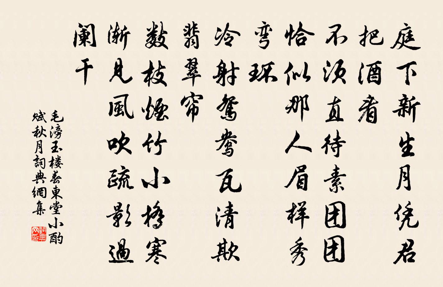 毛滂玉樓春(東堂小酌賦秋月)書法欣賞