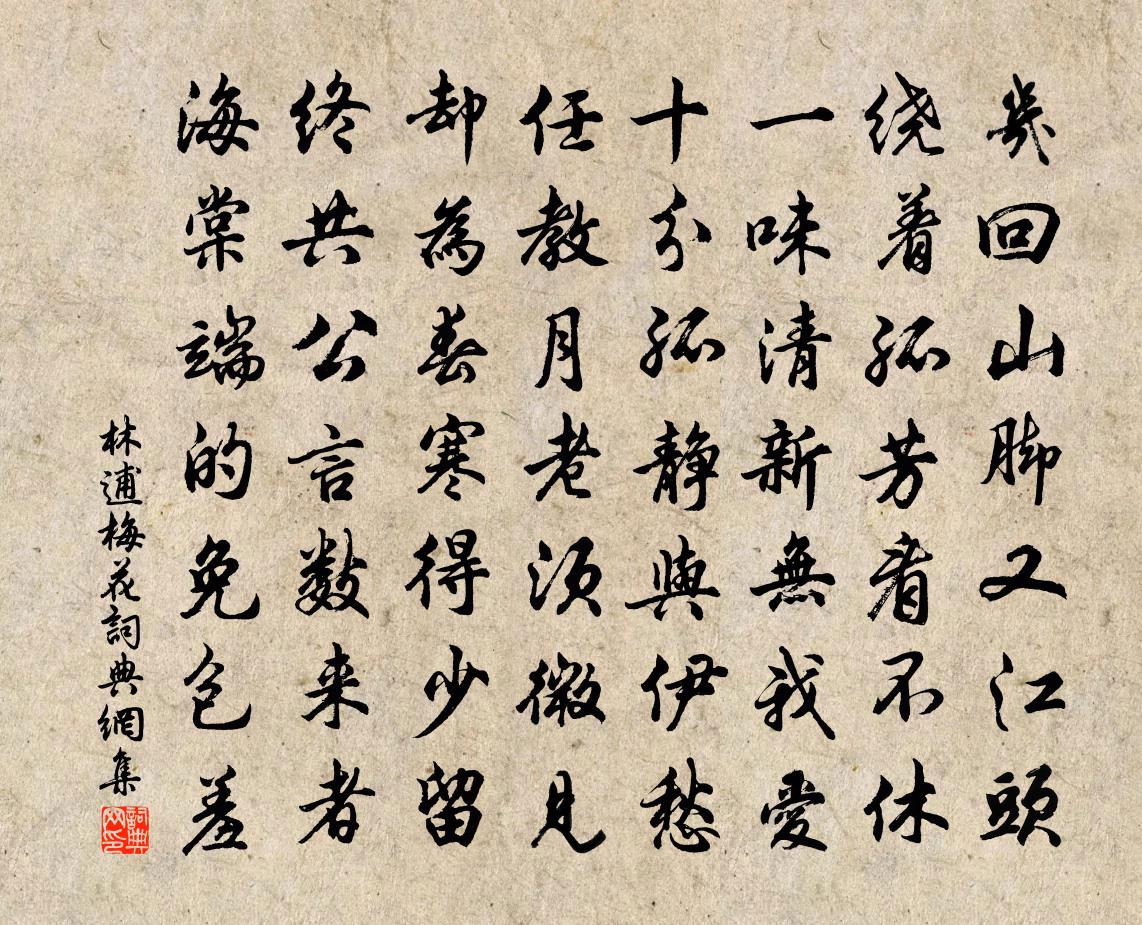 詩詞名句歷史字典書法欣賞書法字典國語詞典說文解字康熙字典古漢語字典標 題 作 者 詩 句 梅花作者:林逋 朝代:宋代梅花原文幾回山腳又江頭,繞著孤芳看不休。一味清新無我愛,十分孤靜與伊愁。任教月老須微見,卻為春寒得少留。終共公言數來者,海棠端的免包羞。詩詞問答問:梅花的作者是誰?答:林逋問:梅花寫於哪個朝代?答:宋代林逋梅花書法欣賞梅花書法作品詩詞推薦元日合門拜表遇雪呈永叔梅堯臣〔宋代〕六花隨表拜東廂,庭下遙呼萬歲長。王會圖中陳璧馬,漢官儀里濕旗常。因風亂絮沾螭首,似鵠輕毛落井床。素髮春盡日天津橋醉吟偶呈李尹侍郎白居易〔唐代〕宿雨洗天津,無泥未有塵。初晴迎早夏,落照送殘春。興發詩隨口,狂來酒寄身。水邊行嵬峨,橋上立逡巡。疏傅憩瑞安北湖詩三首林季仲〔宋代〕吐晴林雨薄,弄水夕陽驕。風定雲橫野,馬鳴人度橋。蘚斑封石骨,花影動溪腰。誰破南窗夢,空山落斷樵。春暮思平泉雜詠二十首。金松(出天台山,葉帶金色)李德裕〔唐代〕台嶺生奇樹,佳名世未知。纖纖疑大菊,落落是松枝。照日含金晰,籠煙淡翠滋。勿言人去晚,猶有歲寒期。三像寺酬元秘書趙嘏〔唐代〕官總芸香閣署崇,可憐詩句落春風。偶然侍坐水聲里,還許醉吟松影中。車馬照來紅樹合,煙霞詠盡翠微空。不因淳熙十二年加上太上皇帝太上皇后尊號十一首佚名〔宋代〕我尊我親,承天之祉。壽名兼美,家國鹹喜。公傅秉禮,實冊有糨。惟千萬祀,令聞不已。苕溪朱繼芳〔宋代〕維舟古祠下,野飯就魚羹。坐聽篙人說,行逢牽路平。居民難問姓,溪鴨自呼名。天目無由到,沿洄更幾程。仙明洲口號李群玉〔唐代〕長愛沙洲水竹居,暮江春樹綠陰初。浪翻新月金波淺,風損輕雲玉葉疏。半浦夜歌聞盪槳,一星幽火照叉魚。二年【中呂】朱履曲盧摯〔元代〕訪立軒上人於廣教精舍,作此命佐樽者歌之,阿嬌楊氏也。相約下禪林閒士,更尋將樂府嬌兒,鶴唳松雲雨催詩。燕居十六首彭龜年〔宋代〕多貪緣縱慾,多欲必傷生。來日應難料,空留不善名。和苗員外寓直中書包何〔唐代〕朝列稱多士,君家有二難。貞為台里柏,芳作省中蘭。夜宿分曹闊,晨趨接武歡。每憐雙闕下,雁序入鴛鸞。留題敷水李先生隱居魏野〔宋代〕棠樹陰中來得得,蓮花峰下去遲遲。好將門外岩磨取,為刻西巡御賜詩。一寸金佚名〔宋代〕富貴又爭人我,貧窮更待如何。有緣有分是非多。無福無災無禍。教他一任奢侈,簞瓢也是存活。勸君休要苦張羅詠懷庾信〔南北朝〕日色臨平樂,風光滿上蘭。南國美人去,東家棗樹完。抱松傷別鶴,向鏡絕孤鸞。不言登隴首,唯得望長安。酹江月侯善淵〔元代〕貪財競色,利名牽、縈系何時休歇。鎮日忙忙如夢想,顛倒心猿馬劣。昧地謾天,多能已會,以巧翻為拙。萬般虛秋日野步和王覺民十六首王之道〔宋代〕簞瓢不失生涯在,詩酒何當習氣除。欲倩雕弧落新雁,足間尋覓子卿書。送客不及雍陶〔唐代〕水闊江天兩不分,行人兩處更相聞。遙遙已失風帆影,半日虛銷指點雲。題張仲宗鷗盟軒李彌遜〔宋代〕寄語沙頭不下鷗,詩翁新葺面江樓。早知世事翻覆手,更覺人生起滅漚,念盡不應書咄咄,身閒何用榜休休。徑須山行道間衛宗武〔宋代〕行春行不足,今日又明朝。平嶺上危嶺,長橋過短橋。殘紅明石澗,膩綠暗風條。最是宜人聽,遷鶯出谷嬌。菩薩蠻·人人盡說江南好韋莊〔唐代〕人人盡說江南好,遊人只合江南老。春水碧於天,畫船聽雨眠。壚邊人似月,皓腕凝霜雪。未老莫還鄉,還鄉須斷名句推薦古人學問無遺力,少壯工夫老始成。陸游《冬夜讀書示子聿》 治國之道,愛民而已。劉向《說苑·政理》 清香隨風發,落日好鳥歸。李白《詠鄰女東窗海石榴》 聽風聽雨過清明。愁草瘞花銘。吳文英《風入松·聽風聽雨過清明》 成事享其功,敗事委其過,且聖人弗能逾者,概人之本然也。來俊臣《羅織經·閱人卷第一》 看萬山紅遍,層林盡染;漫江碧透,百舸爭流。 * 《沁園春·長沙》 此後錦書休寄,畫樓雲雨無憑。晏幾道《清平樂·留人不住》 丈夫不能再辱。班固《漢書·傳·李廣蘇建傳》 天意憐幽草,人間重晚晴。李商隱《晚晴》 渡頭楊柳青青。枝枝葉葉離情。晏幾道《清平樂·留人不住》