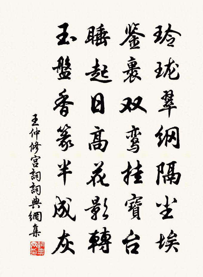 詩詞名句歷史字典書法欣賞書法字典國語詞典說文解字康熙字典古漢語字典標 題 作 者 詩 句 宮詞作者:王仲修 朝代:宋代宮詞原文玲瓏翠綱隔塵埃,鑒裹雙鸞掛寶台。睡起日高花影轉,玉盤香篆半成灰。詩詞問答問:宮詞的作者是誰?答:王仲修問:宮詞寫於哪個朝代?答:宋代王仲修宮詞書法欣賞宮詞書法作品詩詞推薦巫山神女劉方平〔唐代〕神女藏難識,巫山秀莫群。今宵為大雨,昨日作孤雲。散漫愁巴峽,徘徊戀楚君。先王為立廟,春樹幾氛氳。題扇二十四首曹勛〔宋代〕松篁交翠入幽深,道院蕭閒每遣心。一炷清香宜燕坐,數聲鐘磬有餘音。初秋宿直晏殊〔宋代〕絳河星斗夜闌乾,禁署沈沈閉九關。上帝冊書群玉府,仙人宮闕巨鰲山。涼蟾影度秋陰薄,促漏聲來夜唱閒。擁鼻示椿藏主釋如珙〔宋代〕一夏工夫打不徹,百千億劫不消磨。金烏玉兔長相逐,雁盪峰頭見也麽。【雙調】落梅風_天寶補遺姮張可久〔元代〕天寶補遺姮娥面,天寶年,鬧漁陽鼓聲一片。馬嵬坡襪兒得了看錢,太真妃死而無怨。西湖湖光靜,山影孤,載斜近報黃文雷〔宋代〕入春風雨惡情懷,談柄誰資近報來。比歲時聞通國信,新年又說建行台。難言鐵冶飛灰燼,易見銅駝郵草萊。羌筦梁卦孫過飲鄭獬〔宋代〕手搓兩眼睡已足,落花滿床紅飄颻。山鳥不須報春曙,清明自放端門朝。夜來賓客偶過我,呼奴留客解金鑣。花枝宮詞一百首岳珂〔宋代〕奎躔五緯驗連珠,瑞紀人文啟聖符。一札鐵衣天下誦,千山黑處起金烏。和人聞韓魏公出鎮永興過洛邵雍〔宋代〕佐命三朝為太宰,名垂千古號元功。栽培桃李滿天下,出入風濤半海中。虎帳夜寒心益壯,鳳池波暖位猶空。君王贈人二首(一作贈工部郎中)王建〔唐代〕金爐煙里要班頭,欲得歸山可自由。每度報朝愁入閣,在先教示小千牛。多在蓬萊少在家,越緋衫上有紅霞。朝回船子和尚贊釋智朋〔宋代〕不是輕舟蕩漾戲,一撓未展命如絲。雙眸炯炯煙波外,伶利闍梨欲到時。詩一首何逢原〔宋代〕萬偽何緣鬭一真,時間謾得面前人。生男種女多暗啞,果報元來必有因。范陽驛范成大〔宋代〕郵亭偪仄但宜冬,恰似披裘坐土空。枕上驚回丹闕夢,屋頭白塔滿鈴風。過西侖莊一宿王炎〔宋代〕南首巴陵道,籃輿小作程。欲隨王事去,頗戀佛廬清。一雨暑欲退,四山秋有聲。流年欺鬢髮,搖落又關情。又和宋侯三首劉克莊〔宋代〕梨園部里奏雲和,衰惰煩公發藥多。有囀春鶯觴客酒,無如龍馬暴民禾。盍陪天下傳柑宴,且聽民間秀麥歌。歸對憶昔陸游〔宋代〕憶昔高皇絀柄臣,招徠賢雋聚朝紳。寧知遺恨忽千載,追數同時無一人。薶骨九原應已朽,殘書數帙尚如新。此身中書程先生委校勘春秋分紀大參李雁湖文集因曾由基〔宋代〕雪柳梢頭鬧玉梅,萬家燈火月樓台。校讎幸不開天上,省得扶藜太乙來。以詩問谹父病五首王洋〔宋代〕閒門歲滿常驅迫,事外那容免剝膚。為問赤城香火客,不知還欠藥錢無。壽史石泉二首吳泳〔宋代〕胸次玻瓈湛不搖,高風炯炯揭冰條。昆墟已瀉南軒派,蜀貢猶傳北斗杓。問學有源天一水,文章無盡海門潮。三灘葵花萱草范成大〔宋代〕衛足保明哲,忘憂助歡娛。欣欣夏日永,媚我幽人廬。名句推薦無處不傷心,輕塵在玉琴。納蘭性德《菩薩蠻·蕭蕭幾葉風兼雨》 孤客傷逝湍,徒旅苦奔峭。謝靈運《七里瀨》 愚者暗於成事,知者見於未萌。民不可與慮始,而可與樂成。商鞅《商君書·更法》 梨花淡白柳深青,柳絮飛時花滿城。蘇軾《東欄梨花》 杯酒相延,今夕不應慳。陳著《江城子·中秋早雨晚晴》 江南三月聽鶯天,買酒莫論錢。吳錫麒《少年游·江南三月聽鶯天》 江闊雲低、斷雁叫西風。蔣捷《虞美人·聽雨》 願妾身為紅菡萏。年年生在秋江上。歐陽修《漁家傲·近日門前溪水漲》 書中自有黃金屋,書中自有顏如玉趙恆《勸學詩》 寧可濕衣,不可亂步李汝珍《鏡花緣·第二十回》