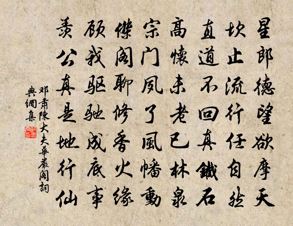 詩詞名句歷史字典書法欣賞書法字典國語詞典說文解字康熙字典古漢語字典標 題 作 者 詩 句 陳大夫華嚴閣作者:鄧肅 朝代:宋代陳大夫華嚴閣原文星郎德望欲摩天,坎止流行任自然。直道不回真鐵石,高懷未老已林泉。宗門夙了風幡動,傑閣聊修香火緣。顧我驅馳成底事,羨公真是地行仙。詩詞問答問:陳大夫華嚴閣的作者是誰?答:鄧肅問:陳大夫華嚴閣寫於哪個朝代?答:宋代鄧肅陳大夫華嚴閣書法欣賞陳大夫華嚴閣書法作品詩詞推薦滿庭芳 偕 士安馬明初登荀和叔廣思樓許有壬〔元代〕沙路無泥,柳風如水,嫩涼偏入吟鞍。廣思樓上,雨後看西山。回首炎氛千丈,便長嘯、跳出塵寰。青天外,斜陽或以予辭酒為過復作長句陸游〔宋代〕陸生酒戶如蠡迮,痛酒豈能堪大白;正緣一快敗萬事,往往吐茵仍墮幘。爾來人情甚不美,似欲殺我以麴櫱。滿傾家兄有和再用韻艾可翁〔宋代〕亂離生世晚,衰白在人前。雲水飛飢鶴,山林付亂蟬。日今行黑道,人有隔黃泉。晷漸秋來短,愁長亦敵年。寄貫休齊己〔唐代〕子美曾吟處,吾師復去吟。是何多勝地,銷得二公心。錦水流春闊,峨嵋疊雪深。時逢蜀僧說,或道近游黔。香球元稹〔唐代〕順俗唯團轉,居中莫動搖。愛君心不惻,猶訝火長燒。大熱見田中病牛文同〔宋代〕壠上病牛良可悲,皮毛枯杭頭角垂。兩鼻谽谺只自喘,四蹄屴岌曾不皮。牧童默坐罷牽挽,耕叟拱立徒嗟咨。朝驅題虎丘寺張祜〔唐代〕輕棹駐回流,門登西虎丘。霧青山月曉,雲白海天秋。倚殿松株澀,欹庭石片幽。青蛾幾時墓,空色尚悠悠。訪秋李商隱〔唐代〕酒薄吹還醒,樓危望已窮。江皋當落日,帆席見歸風。煙帶龍潭白,霞分鳥道紅。殷勤報秋意,只是有丹楓。菩薩蠻李真人〔元代〕還丹節行將何作。師曾囑咐留言約。莫近貴豪門。貴豪賺 * 。不須夸富有。富有難長久。隱循且悠悠。願將天地齋中雜題陸游〔宋代〕湖水日益長,柳色日益深。好鳥西山來,飛鳴過前林。年華挽不留,陳跡曠難尋。花開少共賞,酒熟惟孤斟。王謝閒居常自足鄭剛中〔宋代〕閒居常自足,謂欠亦誰增。辟穀知難學,餐霞豈易能。菜非饕地主,米不慁鄰僧。白日惟扃戶,黃昏便點燈。菖蒲花董嗣杲〔宋代〕開時可食勝餐松,應在神人守護中。九節自知遺種異,一花誰可斗香同。碧叢露養仙苗細,靈卉泉抽玉髓空。還有過雲安縣張嵲〔宋代〕平日雲安縣,常見少陵詩。今朝忽經過,人生信難期。不聞鶗鴂鳴,蕭蕭山樹悲。昔人不可見,長江無盡時。人送岩桂二首姜特立〔宋代〕七月濁暑氣氤氳,天香忽墮明月輪。一枝先入西風手,洗我三伏胸中塵。旅舍書事楊時〔宋代〕懶拙乖時尚,支離與世殊。饋漿驚禦寇,避席愧陽居。觸事紛難解,忘形色易鋤。不須修混沌,機械本來無。友人婚楊氏催妝賈島〔唐代〕不知今夕是何夕,催促陽台近鏡台。誰道芙蓉水中種,青銅鏡里一枝開。汴河雨後呈同行馬秘書梅堯臣〔宋代〕雨霽晚虹收,河堤淨如掃。清陰拂人樹,翠色垂流草。漢漕走王都,華言雜夷獠。時方同馬生,野泊聊論道。寄吳傳正寺丞邵雍〔宋代〕天津風月一何孤,似我經秋相憶無。每仗晴波寄聲去,不知曾得到東都。喜友人歸上元別業曹松〔唐代〕一檣千里外,隱者興宜孤。落日長邊海,秋風滿故都。掩關苔色老,盤徑葉聲枯。匡岳來時過,遲回絕頂無。偈頌二十首釋如珙〔宋代〕曉來雲過闌乾濕,手把圓珠獨自立。聲聲稱念南無佛,佛道現前不成佛。名句推薦前年過代北,今歲往遼西薛道衡《昔昔鹽》 愁絕行人天易暮,行向鷓鴣聲里住納蘭性德《菊花新·用韻送張見陽令江華》 春草細還生,春雛養漸成。揭傒斯《畫鴨》 便縱有千種風情,更與何人說?柳永《雨霖鈴·寒蟬淒切》 廉者憎貪,信者疾偽宋祁、歐陽修、范鎮、呂夏卿等《新唐書·列傳·卷三十二》 萬物同宇而異體,無宜而有用為人,數也。荀子《荀子·富國》 狂風吹我心,西掛鹹陽樹。李白《金鄉送韋八之西京》 昔人已乘黃鶴去,此地空餘黃鶴樓。崔顥《黃鶴樓 / 登黃鶴樓》 紅淚偷垂,滿眼春風百事非。納蘭性德《採桑子·當時錯》 有梅無雪不精神,有雪無詩俗了人。盧梅坡《雪梅·其二》