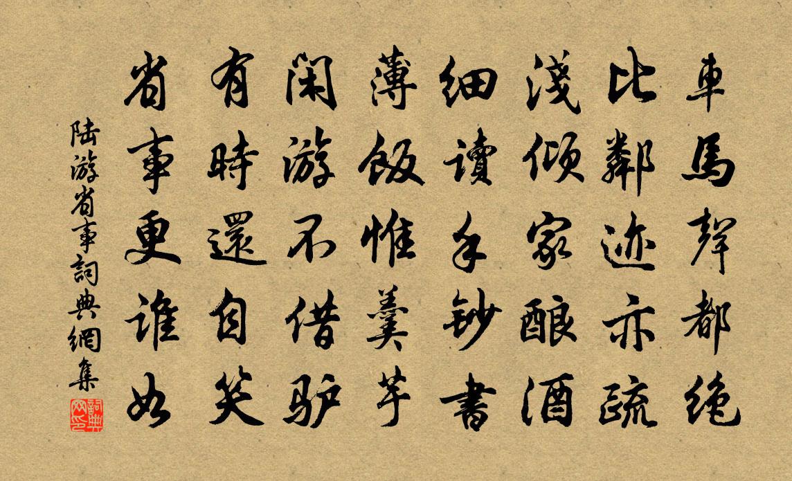 車馬聲都絕,比鄰跡亦疏。淺傾家釀酒,細讀手鈔書。