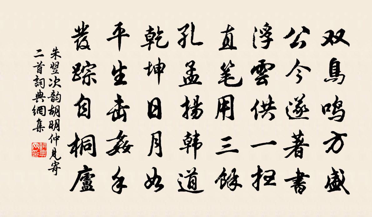 詩詞名句歷史字典書法欣賞書法字典國語詞典說文解字康熙字典古漢語字典標 題 作 者 詩 句 次韻胡明仲見寄二首作者:朱翌 朝代:宋代次韻胡明仲見寄二首原文雙鳥鳴方盛,公今遂著書。浮雲供一掃,直筆用三餘。孔孟揚韓道,乾坤日月如。平生擊奸手,發蹤自桐廬。詩詞問答問:次韻胡明仲見寄二首的作者是誰?答:朱翌問:次韻胡明仲見寄二首寫於哪個朝代?答:宋代朱翌次韻胡明仲見寄二首書法欣賞次韻胡明仲見寄二首書法作品詩詞推薦題汪水雲詩十首羅志仁〔宋代〕綠幕紅簾沒柁船,船頭日日撲花錢。笙歌水面盈盈去,過眼笙歌正可憐。數名詩權德輿〔唐代〕一區揚雄宅,恬然無所欲。二頃季子田,歲晏常自足。三端固為累,事物反徽束。四體苟不勤,安得豐菽粟。五侯竹窗王安石〔宋代〕竹窗紅莧兩三根,山色遙供水際門。只我近知牆下路,能將屐齒記苔痕。龍池春草宋迪〔唐代〕鳳闕韶光遍,龍池草色勻。煙波全讓綠,堤柳不爭新。翻葉迎紅日,飄香借白蘋。幽姿偏占暮,芳意欲留春。已勝代白紵曲鮑照〔南北朝〕春風澹蕩俠思多。天色淨綠氣妍和。桃含紅蕚蘭紫芽。朝日灼爍發園華。卷幌結帷羅玉筵。齊詎秦吹盧女弦。千金小重山(二)韋莊〔唐代〕秋到長門秋草黃,畫梁雙燕去,出宮牆。玉簫無復理霓裳。金蟬墜,鸞鏡掩休汝。憶昔在昭陽,舞衣紅帶,繡鴛鴦踏莎行(五月十三日月甚佳)張孝祥〔宋代〕藕葉池塘,榕陰庭院。年時好月今宵見。雲鬢玉臂共清寒,冰綃霧縠誰裁剪。撲粉口綿,侵塵寶扇。遙知掩抑成淒題香積寺馮時行〔宋代〕撥草詹風日,招提重訪尋。雪如將路斷,雲實助山深。密印傳初祖,英國嗣少林。我來聊借榻,靜夜聽龍吟。喻賣松者釋智圓〔宋代〕莫嫌人不買,人亦愛蒼翠。卻是歲寒根,難種塵埃地。且歸栽潤底,映水成嘉致。他年苟合拱,採取不我棄。天子孟子私淑陳普〔宋代〕百有餘年澤未窮,寒潭秋月寸心同。尼山想像人如玉,夜半相逢夢寐中。並山東南閒步至野人吳氏居乃歸陸游〔宋代〕信步閒行遍四鄰,擁籬老稚看綸巾。人隨世換朋儕少,志與年衰感慨頻。梅送冷香橫雪岸,雁翻孤影下煙津。豐年戲為雙松圖歌(韋偃畫)杜甫〔唐代〕天下幾人畫古松,畢宏已老韋偃少。絕筆長風起纖末,滿堂動色嗟神妙。兩株慘裂苔蘚皮,屈鐵交錯回高枝。白摧桃源憶故人(五之三)陸游〔宋代〕一彈指頃浮生過。墮甑元知當破。去去醉吟高臥。獨唱何須和。殘年還我從來我。萬里江湖煙舸。脫盡利名韁鎖。閒園獨賞(因夢得所寄蜂鶴之詠,因成此篇以和之)白居易〔唐代〕午後郊園靜,晴來景物新。雨添山氣色,風借水精神。永日若為度,獨游何所親。仙禽狎君子,芳樹倚佳人。蟻斗釋老六言十首劉克莊〔宋代〕道家事頗恍惚,稗官書多詼諧。帝居非若溷也,天上豈有廁哉。贈閭丘宿松李白〔唐代〕阮籍為太守,乘驢上東平。剖竹十日間,一朝風化清。偶來拂衣去,誰測主人情。夫子理宿松,浮雲知古城。掃地頌古九十八首釋印肅〔宋代〕師子全威境白聞,誰人敢扣鬼門關。除非體用知無我,瓶傾不出悟無難。欲晚訪韓持國忽道損見過不克往持國示詩因答梅堯臣〔宋代〕西雲沈日腳,命仆駕我車。我車已在庭,有客方詣廬。談笑不覺夕,雞黍且煩渠。重約勿以怪,但當摘園蔬。清涼山乾隆〔清代〕雪蹊歷歷度橋蹤,白玉層梯認碧松。春月景殊秋月景,下方鍾和上方鍾。得教觸目清裁別,間復翹心□韻重。只有謁廟馬上有感歐陽修〔宋代〕旌旆曉悠悠,行驚歲已遒。霜雲依日薄,野水帶冰流。富庶齊三服,山川禹九州。自憐思潁意,無異旅人愁。名句推薦聖王者不貴義而貴法,法必明,令必行,則已矣。商鞅《商君書·畫策》 山從人面起,雲傍馬頭生。李白《送友人入蜀》 秋霜不惜人,倏忽侵蒲柳。李白《長歌行》 柳外輕雷池上雨,雨聲滴碎荷聲。歐陽修《臨江仙·柳外輕雷池上雨》 後不乏人,榮之方久,賢者自苦亦惠嗣。來俊臣《羅織經·固榮卷第六》 生資之高在忠信,非關機巧;學業之美在德行,不僅文章。王永彬《圍爐夜話·第十則》 橋成漢渚星波外,人在鸞歌鳳舞前。晏幾道《鷓鴣天·當日佳期鵲誤傳》 俱懷逸興壯思飛,欲上青天攬明月。李白《宣州謝朓樓餞別校書叔雲》 梨花最晚又凋零,何事歸期無定準。歐陽修《玉樓春·去時梅萼初凝粉》 積雪覆平皋,飢鷹捉寒兔。孟浩然《南歸阻雪》