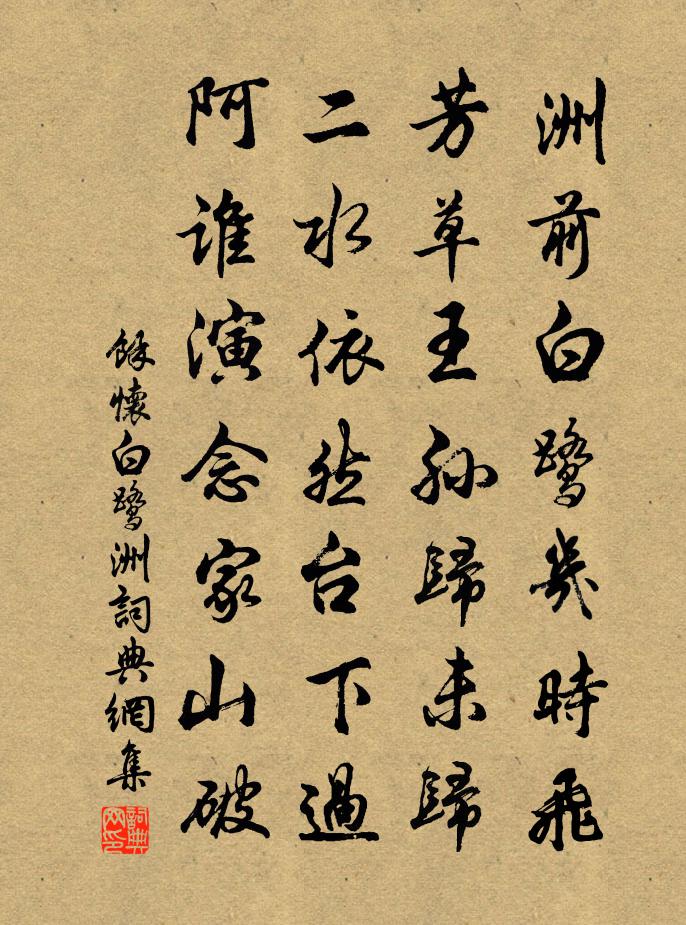 詩詞名句歷史字典書法欣賞書法字典國語詞典說文解字康熙字典古漢語字典標 題 作 者 詩 句 白鷺洲作者:余懷 朝代:清代白鷺洲原文洲前白鷺幾時飛?芳草王孫歸未歸?二水依然台下過,阿誰演念家山破。詩詞問答問:白鷺洲的作者是誰?答:余懷問:白鷺洲寫於哪個朝代?答:清代問:白鷺洲是什麼體裁?答:七絕余懷白鷺洲書法欣賞白鷺洲書法作品詩詞推薦鹿伯可郎中園池雜詠梅坡樓鑰〔宋代〕江梅留待主人還,見說歸時得飽看。回首殘花飛作雪,一峰當戶正高寒。猿方岳〔宋代〕三峽巴江水,何年籬爾群。艱難俱未免,清切不堪聞。羈旅仍春蒲,愁懷況暮雲。尚思靈澗冷,蘿蔦月紛紛。熙寧祭風師五首佚名〔宋代〕奠獻紛紛,靈心欣欣。超然而返,眾御如雲。其施伊何,多黍多稌。其祥伊何,不愆厥作。次韻答蜀人薛仲章項安世〔宋代〕只憐久病劉公幹,不羨多騶鄧仲華。解寄長年新句法,頗思前夜好燈花。自離窗外千秋雪,長看天西一色霞。想見秦兵部書堂張耒〔宋代〕丈人憐我厚,許與過常情。身世已迂闊,功名何敢爭。笑談忘晚輩,樽俎罄生平。欲斸臨淮地,從公老此生。杜工部詩有送弟觀歸藍田迎新婦二首偶與縣尉陳著〔宋代〕墨龜初卜食,青鳥好音回。冰玉皆前契,風波任外來。重因藍袖舞,輕放赤城開。此事關宗事,終須飲醮杯。句朱浚〔宋代〕金寒霜氣山無虎,劍動星光水有龍。玉樓春石孝友〔宋代〕黃鍾應律扶炎統。舜日迎長佳節用。娟娟芳意著花梢,盎盎暖香浮酒瓮。壽觴喚取纖纖捧。雨歇珠簾雲繞棟。興來建炎初秋不得北獰訊息作鄭樵〔宋代〕昨夜西風到漢軍,塞鴻不敢傳殷勤。幾山衰草連天見,何處悲笳異地聞。犬馬有心雖許國,草茅無路可酬君。微臣同高叔不愚如晦飲再次韻二首陳造〔宋代〕詩老掀髯吟掉頭,紅妝間坐眼波秋。快傾良夕如澠酒,宛是當時鎖燕樓。想有疎簾窺白下,可無急鼓袞伊州。憑君西陵絕句詩十四首李鄴嗣〔清代〕司馬墳前客過頻,灰飛常見紙錢新。豈如哭祭文山客,只有西台甲乙人。句趙世長〔宋代〕玉清仙子下雲達。聲聲慢 贈王彥寶劉志淵〔元代〕癭除人我,冰冷高低,喚惺今是昨非。檢教靈質,枉受萬劫沉迷。況遇真風大闡,要諸仙、選陀名題。顯一志,敢浣溪沙 壽湯總管王惲〔元代〕十載煙花紫紫游。嘉謨曾補翠雲裘。歸來尤荷寵光優。畫戟清香高北里,虎符金節照南州。壽波無惜卷吟甌。春日宴林亭陳襄〔宋代〕把灑春亭覽眾芳,水精簾箔逗山光。孤松冷落千年操,野槿紛華一日香。綠圃煙深迷蛺蝶,曲池波暖睡鴛鴦。文園和趙晦之司戶三首鄭剛中〔宋代〕文士務悅目,常患器局卑。余雖嗜古勁,而乏撫媚姿。袖繹起深愧。漸摩賴良規。溫言謾相訹,何以慰所思。送權二王維〔唐代〕高人不可有(一作友)。清論復河深。一見如舊識。一言知道心。明時當薄宦。解薜去中林。芳草空隱處。白雲余上法智大師釋遇昌〔宋代〕雨霽遙空木落時,危亭南望倍依依。白蓮舊社人離久,丹闕經年信去稀。入觀夜堂江月滿,揮松秋殿晝燈微。林中司空平章軍國事贈太師開國正獻呂公輓辭五首蘇頌〔宋代〕首建司空府,前臨魏闕門。特留黃髮老,對直紫微垣。故事傳台閣,清風遺子孫。四方桃李滿,不待史官言。奉使契丹二十八首其二十二學士院端午帖子二蘇轍〔宋代〕溽暑避華構,清風迎早朝。楓槐高自舞,冰雪晚初消。名句推薦不知香積寺,數里入雲峰王維《過香積寺》 天外鳳凰誰得髓?無人解合續弦膠。杜牧《讀韓杜集》 柳葉雙眉久不描,殘妝和淚污紅綃。江采萍《謝賜珍珠》 念歸林葉換,愁坐露華生。張九齡《西江夜行》 迸籜分苦節,輕筠抱虛心。柳宗元《巽公院五詠·苦竹橋》 離多最是,東西流水,終解兩相逢。晏幾道《少年游·離多最是》 明歲秋風知再會,暫時分手莫相思。曹雪芹《殘菊》 桑柘影斜春社散,家家扶得醉人歸。王駕《社日》 思量舊夢,黃梅聽雨,危闌倦倚鄧廷楨《水龍吟·雪中登大觀亭》 籬落疏疏一徑深,樹頭花落未成陰。楊萬里《宿新市徐公店》