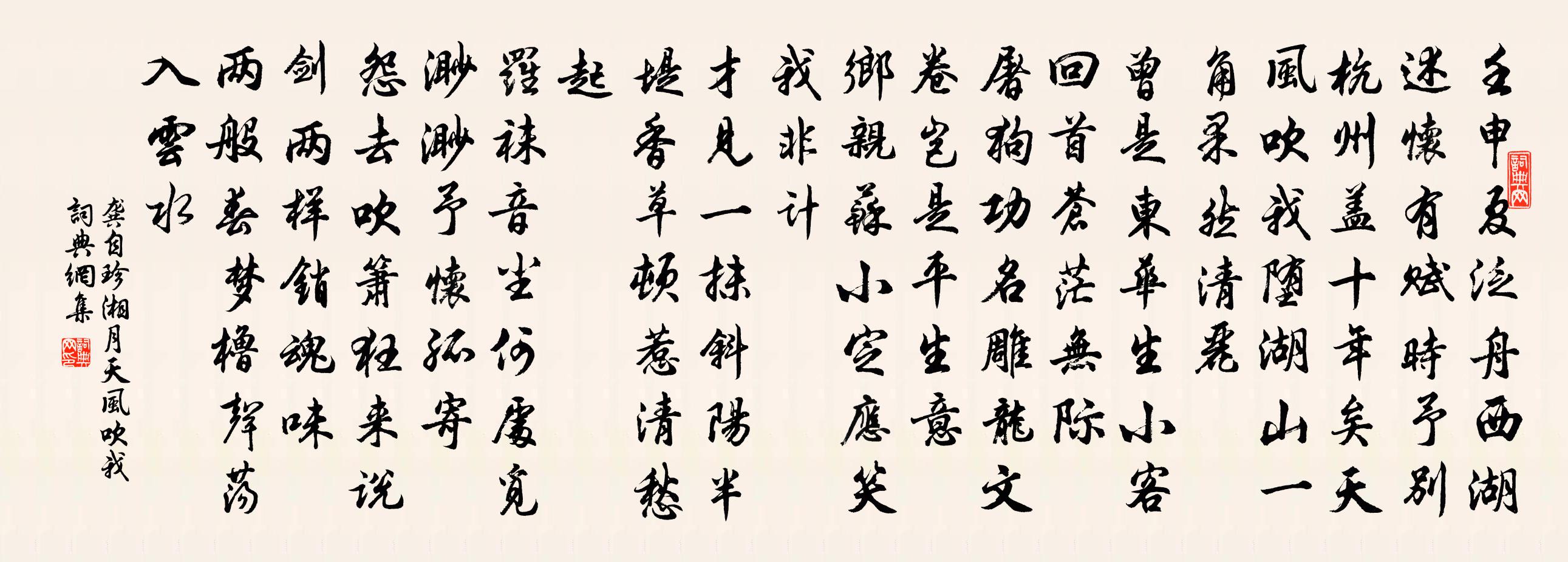 這首詞作於嘉慶十七年壬申(1812年),當時作者年僅二十歲。這一四月,龔自珍陪同母親到蘇州看望外祖父段玉裁,並在舅家與表妹段美貞結為伉儷。這一年夏天,龔自珍攜新婚夫人回到闊別十年的故鄉杭州,泛舟西湖時,作《湘月》一詞抒懷。