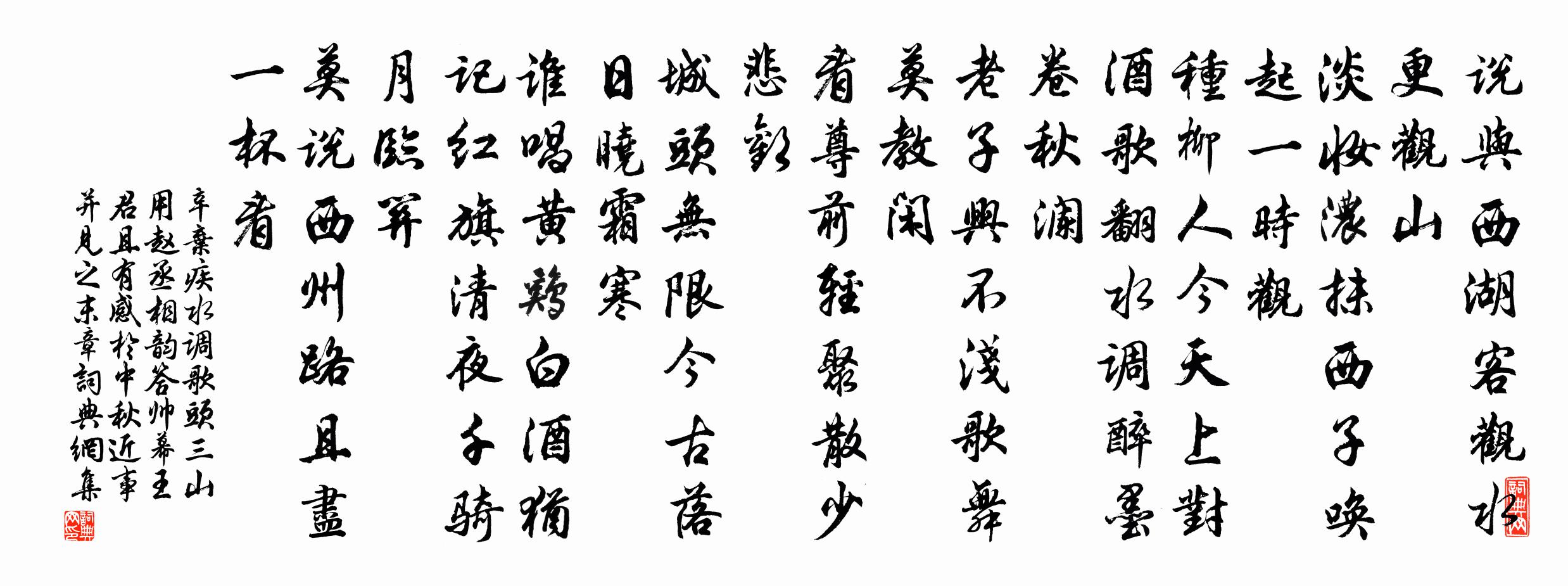 種柳人今天上,對酒歌翻水調,醉墨卷秋瀾。