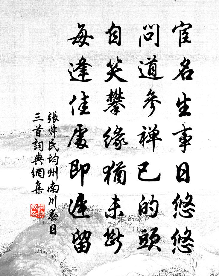詩詞名句歷史字典書法欣賞書法字典國語詞典說文解字康熙字典古漢語字典標 題 作 者 詩 句 均州南川春日三首作者:張舜民 朝代:宋代均州南川春日三首原文宦名生事日悠悠,問道參禪已的頭。自笑攀緣猶未斷,每逢佳處即遲留。詩詞問答問:均州南川春日三首的作者是誰?答:張舜民問:均州南川春日三首寫於哪個朝代?答:宋代張舜民均州南川春日三首書法欣賞均州南川春日三首書法作品詩詞推薦憶黃州梅花五絕蘇軾〔宋代〕雖老於梅心未衰,今朝誰贈楚江枝。旋傾尊酒臨清影,正是吳姬一笑時。題郴陽道中一古寺壁二絕秦觀〔宋代〕哀歌巫女隔祠叢,飢鼠相追壞壁中。北客念家渾不睡,荒山一夜兩吹風。浮遠周弼〔宋代〕橫障瀰漫恃此丘,長江東騖轉湍流。波間去海無多里,沙際鋪淮輒數州。風勢起花山郭暗,潮聲侵樹野田浮。無由春日田園雜興連文鳳〔宋代〕老我無心出市朝,東風林壑自逍遙。一犁好雨秧初種,幾道寒泉藥旋澆。放犢曉登雲外壟,聽鶯時立柳邊橋。池塘公退曝日仇遠〔宋代〕公退無營懶讀書,出門佳客費招呼。閒搔短髮身將老,獨坐長檐日未晡。溪女賣魚隨市價,村夫騎馬納官租。勞生金山寺前泛舟西下艾可翁〔宋代〕機舂坎坎水潺潺,曲折舟行亂石間。無數水禽飛不起,杜鵑花滿夕陽山。悲秋陸游〔宋代〕小雨簾櫳慘澹天,醉中偏藉亂書眠。夢回有恨無人會,枕伴橙香似昔年。偈頌八十七首釋慧開〔宋代〕今朝十朋念五,黃龍有一轉語。分明更不囊藏,直截當陽為舉。七十八詠六言十首劉克莊〔宋代〕心炎寵辱交戰,骨朽是非乃公。物議糞土伯始,史筆芳馨兩龔。公子家 / 公子行 / 長安花聶夷中〔唐代〕種花滿西園,花發青樓道。花下一禾生,去之為惡草。次韻寇秀才寄下邳家兄陳師道〔宋代〕少共千憂老一官,中間毀譽兩茫然。去留有命真如此,俯仰從人郤未然。故著江山供極目,正將強健人新年。驚逢沁園春 送楊伯可陸文圭〔元代〕雨足江皋,月滿中秋,使客將歸。看扁舟空載,貧無長物,破囊收貯,富有新詩。清白傳家,懷金不受,潔已從來綺羅香王沂孫〔宋代〕夜滴花研朱,晨花妝試花,寒花樹偷分春艷。賦冷吳江,一片試霜猶淺。驚漢殿、絳點初凝,認隋苑、彩枝重翦。平韻滿江紅(牡丹)彭元遜〔宋代〕翠袖余寒,早添得、銖衣幾重。保須怪、妍華都謝,更為誰容。銜盡吳花成鹿苑,人間不恨雨和風。便一枝、流落二蘇文登趨闕二帖贊岳珂〔宋代〕文字之祥,劂有原委。父師昆弟,以及諸子。文兮斜川,道兮潁水。以文貫道,一家濟美。施及翰林,特遊戲耳。湖山尋梅陸游〔宋代〕小雪湖上尋梅時,短帽亂插皆繁枝。路人看者竊相語:此老胸中常有詩。歸來青燈耿窗扉,心鏡忽入造化機。墨池詠丹桂贈周純甫馮德厚袁甫〔宋代〕一種自然色,如吾方寸丹。天教傳信到,人莫作花看。骨氣超凡俗,聲名徹廣寒。留君良為此,憶別鼻休酸。神松嶺即岳神為珪禪師一夕自北嶺移者李廌〔宋代〕初聞百梁村,拔自天池井。今知萬松岡,一夕趨北嶺。顧茲挾山威,何心罔知警。送樞密樓相公歸田陳邦固〔宋代〕宦歷年多鬢未霜,乞閒幾度上封章。共看解組朝辭館,爭賀懸魚晚在鄉。家篋已添新劃藁,錦袍猶帶舊薰香。溪南謁金門蔡伸〔宋代〕溪聲咽。溪上有人離別。別語叮嚀和淚說。羅巾沾淚血。盡做剛腸如鐵。到此也應愁絕。回首斷山帆影滅。畫船空名句推薦上之為政,得下之情則治,不得下之情則亂。墨子《墨子·13章 尚同(下)》 日中則昃,月盈則食佚名《易傳·彖傳下·豐》 匝路亭亭艷,非時裛裛香。李商隱《十一月中旬至扶風界見梅花》 巧笑東鄰女伴,採桑徑里逢迎。晏殊《破陣子·春景》 遺廟丹青落,空山草木長。杜甫《武侯廟》 一去無訊息,那能惜馬蹄。薛道衡《昔昔鹽》 飛雪帶春風,裴回亂繞空。劉方平《春雪》 天欲禍人,必先以微福驕之,要看他會受陳繼儒《小窗幽記·集醒篇》 君子之言寡而實,小人之言多而虛。劉向《說苑·談叢》 別來幾春未還家,玉窗五見櫻桃花。李白《久別離》
