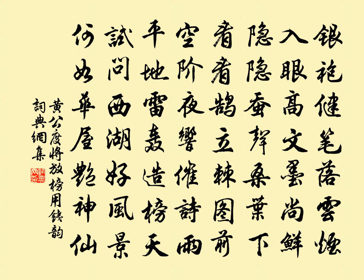 詩詞名句歷史字典書法欣賞書法字典國語詞典說文解字康熙字典古漢語字典標 題 作 者 詩 句 將放榜用錢韻作者:黃公度 朝代:宋代將放榜用錢韻原文銀袍健筆落雲煙,入眼高文墨尚鮮。隱隱蠶聲桑葉下,看看鵠立棘圖前。空階夜響催詩雨,平地雷轟造榜天。試問西湖好風景,何如華屋艷神仙。詩詞問答問:將放榜用錢韻的作者是誰?答:黃公度問:將放榜用錢韻寫於哪個朝代?答:宋代黃公度將放榜用錢韻書法欣賞將放榜用錢韻書法作品詩詞推薦答趙景猷曹攄〔魏晉〕導以水柔。示以火急。寬猛相濟。孰能企及。古人難慕。洪流叵挹。軀小裁博。余將焉襲。惜分飛(歌樓別客)汪元量〔宋代〕燕子留君君欲去。征馬頻嘶不住。握手空相覷。淚珠成縷。眉峰聚。恨入金徽孤鳳語。愁得文君更苦。今夜西窗雨讀故許昌薛尚書詩集鄭谷〔唐代〕篇篇高且真,真為國風陳。澹薄雖師古,縱橫得意新。翦裁成幾篋,唱和是誰人。華岳題無敵,黃河句絕倫。吟殘淳熙己亥歲傅子淵勸予無弄文墨自是絕意筆研項安世〔宋代〕兒時月露與風雲,半世調場罷策勛。老子今年新有興,良朋嗔我久無文。不妨翰墨鳴斯事,聊遣篇章記所云。不見鸛帶箭行陳造〔宋代〕城邊鶴城棲,水食衣楚楚。欲鳴不鳴候天雨,此肉胡宜登鼎俎。柳營子弟弓石人,南山之石猶飲羽,如汝正可虛弦春日五首劉克莊〔宋代〕老懶何心更出嬉,閉門終日讀陶詩。湘南二月花如掃,恰似扶疏繞屋時。送鄆州知府宋諫議王安石〔宋代〕盛世千齡合,宗工四海瞻。天心初吁俊,雲翼首離潛。德望完圭角,儀形壯陛廉。徐鳴蒼玉佩,盡校碧牙籤。綸掖澄虛觀玉皇閣次韻陳深〔宋代〕巋然高閣鎮吳州,妙手應煩玉斧修。萬疊紅雲凝實座,一輪白日抱瑈樓。濛濛灝氣疑浮蜃,炯炯神光遠射牛。終待別詩人余叔雲黃敏求〔宋代〕筆硯無靈久,寒檠自掩門。虛名何預我,漫刺重煩君。茶外無祗待,計邊得細論。別懷莫兒女,相祝張吾軍。吳大帝廟曾極〔宋代〕曾將一劍定全吳,斗大祠庭泣楚巫。故國神遊應撫掌,蘆花楓葉幾年無。招隱二首陳傅良〔宋代〕將子無涉水,水深下無極。鯈魚舞浮陽,螭首闖陰碧。弱去一羽沉,惡來萬波激。子兮何所求,快此蛟涎滴。議諫方春時群免食麥先生置罝焉終無所獲今者原頭王洋〔宋代〕吳山積雪不潤麥,客子思鄉疑卜宅。先生好客如聚書,豈料向來遭五厄。{左夋右兔}{左夋右兔}自是安無虞,孤山王鎡〔宋代〕芙蓉十里媚薰風,岸上花開水底紅。認得孤山舊遊處,酒旗搖颺樹雲中。山居二首姜特立〔宋代〕山居少交遊,在家仍懶出。忽得佳友生,開懷可銷日。杯盤隨所有,新故皆如一。客醉不肯留,我歡終未畢。詠荷花中小蓮蓬楊萬里〔宋代〕山蜂愁雨損蜂兒,葉底安巢更倒垂。只有荷蜂不愁雨,蠟房仰臥萬花枝。和子瞻次韻陶淵明勸農詩蘇轍〔宋代〕我行四方,稻麥黍稷。果蔬蒲荷,百種鹹植。糞溉耘籽,乃後有穡。爾獨何為,開口而食。偈頌九十三首釋梵琮〔宋代〕元正啟祚,萬物鹹新。不勞擬議,覿體全真。到此更須進步,卻來拂子頭上翻身。詠濯纓亭程珦〔宋代〕西園勝跡名天下,唐相經營用意工。島嶼迴環壓湖面,樓台重複倚雲空。濯纓泉潔存遺蹟。促軫亭空想舊風。公暇行路難寄紫元白玉蟾〔宋代〕贈君以丹棘忘憂之草,青裳合懽之花,馬腦遊仙之夢枕,龍綜辟寒之寶砂。天河未翻月未落,夜長如年引春酌。古撲蝴蝶曹組〔宋代〕人生一世。思量爭甚底。花開十日,已隨塵共水。且看欲盡花枝,未厭傷多酒盞,何須細推物理。幸容易。有人爭名句推薦君子欲訥於言而敏於行。孔子弟子《論語·里仁篇》 不見年年遼海上,文章何處哭秋風?李賀《南園十三首》 害人之心不可有,防人之心不可無!佚名《增廣賢文·下集》 枝上流鶯和淚聞,新啼痕間舊啼痕。秦觀《鷓鴣天·枝上流鶯和淚聞》 越人語天姥,雲霞明滅或可睹。李白《夢遊天姥吟留別 / 別東魯諸公》 貴上極則反賤,賤下極則反貴。司馬遷《史記·貨殖列傳》 雨色秋來寒,風嚴清江爽。李白《酬裴侍御對雨感時見贈》 何須急管吹雲暝,高寒灩灩開金餅。高觀國《菩薩蠻·何須急管吹雲暝》 支離東北風塵際,漂泊西南天地間。杜甫《詠懷古蹟五首·其一》 春心莫共花爭發,一寸相思一寸灰!李商隱《無題·颯颯東風細雨來》