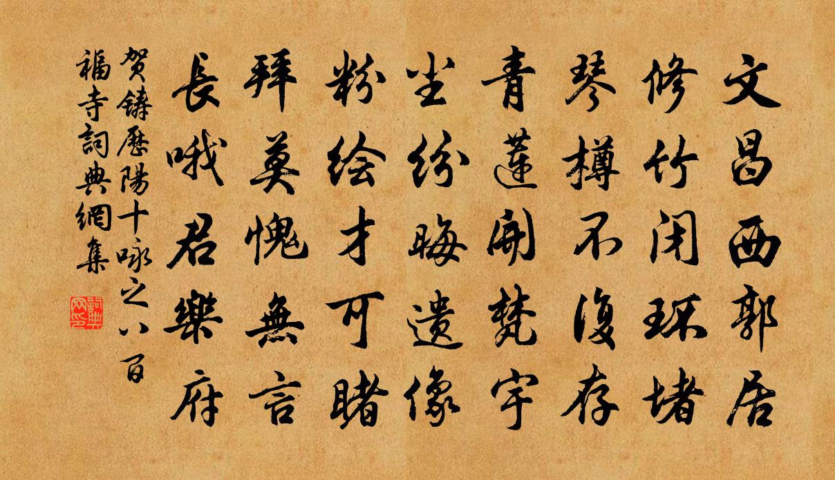 詩詞名句歷史字典書法欣賞書法字典國語詞典說文解字康熙字典古漢語字典標 題 作 者 詩 句 歷陽十詠之八百福寺作者:賀鑄 朝代:宋代歷陽十詠之八百福寺原文文昌西郭居,修竹閉環堵。琴樽不復存,青蓮開梵宇。塵紛晦遺像,粉繪才可睹。拜莫愧無言,長喔君樂府。詩詞問答問:歷陽十詠之八百福寺的作者是誰?答:賀鑄問:歷陽十詠之八百福寺寫於哪個朝代?答:宋代問:賀鑄的名句有哪些?答:賀鑄名句大全賀鑄歷陽十詠之八百福寺書法欣賞歷陽十詠之八百福寺書法作品詩詞推薦偈頌一百零二首釋慧遠〔宋代〕托跡但知忘世故,棲蘆何事不容閒。已能躡足龍門過,試把輪鉤揚碧灣。湖上曲陳起〔宋代〕鞦韆索外闌乾側,一曲凝雲花影直。玉瓶風暖醉忘歸,春水不分楊柳色。贈友人罷舉赴辟命杜荀鶴〔唐代〕連天一水浸吳東,十幅帆飛二月風。好景采拋詩句里,別愁驅入酒杯中。漁依岸柳眠圓影,鳥傍岩花戲暖紅。不是存方寸地胡仲弓〔宋代〕此心僅方寸,去天唯咫尺。欲付子孫耕,先自竭吾力。同諸韓及孫曼叔晚游西湖三首梅堯臣〔宋代〕舟中演滿意不淺,卻坐林塘景欲昏。翠色蜻蜓立菱蕊,青絲騕裊秣城根。談星陳炎發求詩胡仲弓〔宋代〕從來此物最瞞人,術好多為造物嗔。若把天機會泄漏,罰教甘石一生貧。上冊寶十三首真宗〔宋代〕[黃鐘宮]籩豆大房,牲尊將將。聲香既登,明靈迪賞。其樂伊何,吹笙鼓簧。靈來燕娭,降福無疆。孤山釋善珍〔宋代〕數樹梅花地,先朝處士廬。柳凹人系馬,萍破鷺窺魚。空冢衣冠蛻,山房水石虛。白頭舊園吏,曾見幸金輿。讀劉與權壯士歌吳芾〔宋代〕滿眼煙塵未息戈,御戎無策奈愁何。一尊濁酒空庭晚,獨自歌君壯士歌。投龍寶室洞天過延慶觀方王卒共父劍峰精舍程公許〔宋代〕璧簡薦寶室,襟裾馥旃檀。眷言石交舊,可憚腳力酸。層岩一劍裂,陰壑千古寒。數椽棲泬寥,小樓面贊元。風穴襲美以巨魚之半見分因以酬謝陸龜蒙〔唐代〕誰與春江上信魚,可憐霜刃截來初。鱗隳似撤騷人屋,腹斷疑傷遠客書。避網幾跳山影破,逆風曾蹙浪花虛。今朝斛律丞相司馬光〔宋代〕君臣日荒宴,歌舞諱言愁。老相猶當國,疆鄰不敢謀。謠言雖未出,奸謗已先流。誰察忠臣意,通宵抱膝憂。句趙庚夫〔宋代〕詩句日從窗眼寫,墨丸夜入枕頭收。北渚陸游〔宋代〕北渚露濃苹葉老,南塘雨過藕花稀。新秋漸近蟬更急,殘日已沉鴉未歸。銅鏡面顏無藥駐,玉關勳業與心違。一蓑喜鄭唐老相過陸游〔宋代〕鄭子有書癖,對書百事忘,頭亂不暇櫛,炙冷不暇嘗;持此金石心,力求古文章,吟喔屈宋作,蚤夜聲琅琅。方揮題楊補之梅二首曾豐〔宋代〕風流青帝欲回春,先遣玉妃清路塵。過眼被渠偷筆寫,雖忙猶得九分真。夜發吳城渡陳杰〔宋代〕秋風江上生,秋月渡頭明。人地籟俱寂,水天心共清。一雙斜閣櫓,二百順流程。已泊還佳寐,城頭劣四更。春從天上來 贈首陽山李志朴王丹桂〔元代〕既悟塵緣,擺愛海恩山,蝸利蠅名。樂然拂袖,絕慮忘情。熟境慎勿牽縈。抱始終一志,但兀兀、莫問途程。處無次韻許節推喜雨陳造〔宋代〕昨夕聽雨喜不寐,清曉欲作喜雨詩。捻髭臨紙筆未落,墮前乃獲瓊瑰辭。白鵝免烹巫不鼓,麥田欲乾沛甘雨。玄璧續小娘歌十首(選二)元好問〔金代〕其 一山無洞穴水無船,單騎驅人動數千;直使今年留得在,更教何處過明年。其 二雁雁相送過河來,人歌人哭名句推薦北極懷明主,南溟作逐臣。宋之問《途中寒食題黃梅臨江驛寄崔融》 先拂商弦后角羽,四郊秋葉驚摵摵。李頎《聽董大彈胡笳聲兼寄語弄房給事》 將失權,不操其勢,亦如魚龍脫於江湖,欲求游洋之勢,奔濤戲浪,何可得也。諸葛亮《將苑·卷一·兵權》 為問山翁何事,坐看流年輕度,拚卻鬢雙華。葉夢得《水調歌頭·秋色漸將晚》 歲華向晚愁思,誰念玉關人老?蔡挺《喜遷鶯·霜天秋曉》 明朝萬一西風動,爭向朱顏不耐秋。晏幾道《鷓鴣天·守得蓮開結伴遊》 午枕夢初殘,高樓上,獨憑闌乾。朱栴《青杏兒·秋》 門有車馬客,駕言發故鄉。陸機《門有車馬客行》 楓樹夜猿愁自斷,女蘿山鬼語相邀李商隱《楚宮》 牧童騎黃牛,歌聲振林樾。袁枚《所見》