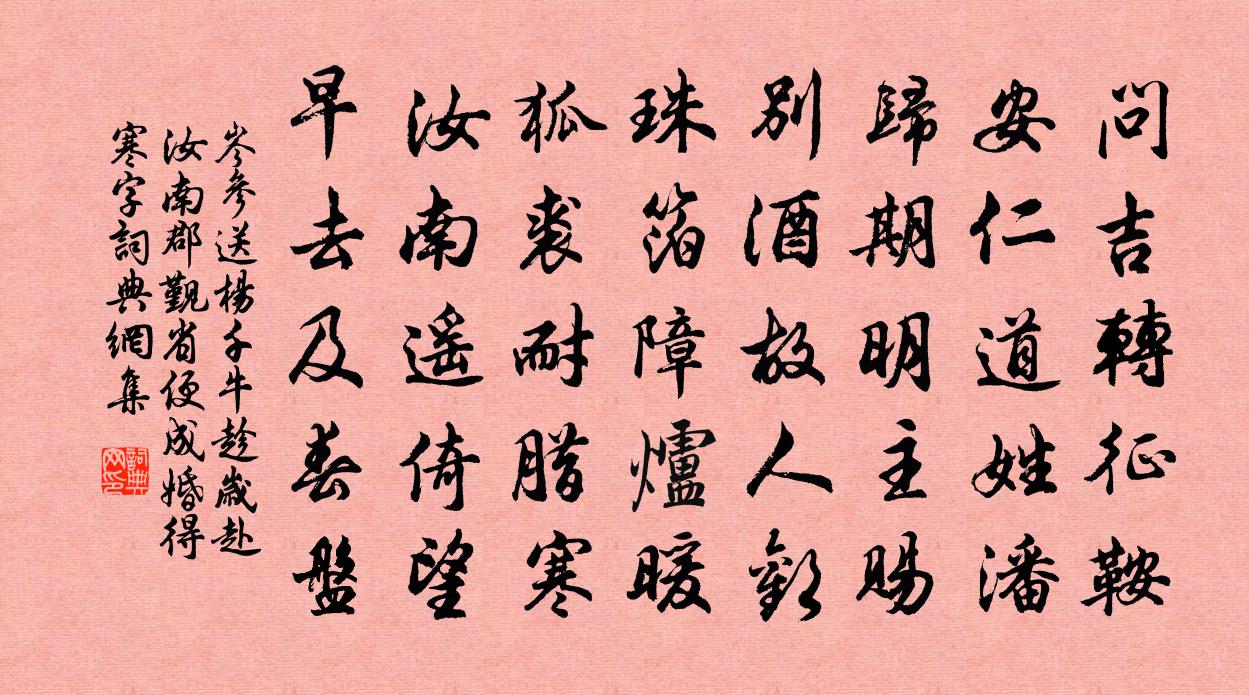 問:《送楊千牛趁歲赴汝南郡覲省便成婚(得寒字)》的作者是誰?答:岑參