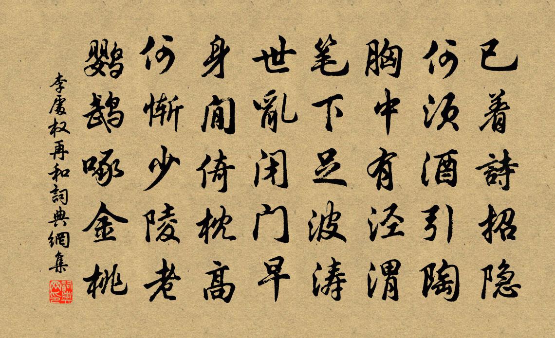 詩詞名句歷史字典書法欣賞書法字典國語詞典說文解字康熙字典古漢語字典標 題 作 者 詩 句 再和作者:李處權 朝代:宋代再和原文已著詩招隱,何須酒引陶。胸中有涇渭,筆下足波濤。世亂閉門早,身閒倚枕高。何慚少陵老,鸚鵡啄金桃。詩詞問答問:再和的作者是誰?答:李處權問:再和寫於哪個朝代?答:宋代李處權再和書法欣賞再和書法作品詩詞推薦送李仲實官郡學任滿歸餘姚陳著〔宋代〕手分教雨□鄰庠,咫尺何分明越鄉。一正不為崖壁異,三年相與藻芹香。梅花時節催行色,藜焰風流要當行。應有詗斛峰李純父右司趙汝騰〔宋代〕衰拙新來領建安,郡齋夜夢繞餘干。東都得爾名節重,西賊聞之心膽寒。海內四賢尚家食,閩中一叟愧空餐。幔亭十離詩。鸚鵡離籠薛濤〔唐代〕隴 * 自一孤身,飛去飛來上錦茵。都緣出語無方便,不得籠中再喚人。喜表公往楚王城齊己〔唐代〕已聞人舍地,結構舊基平。一面湖光白,鄰家竹影清。應難尋輦道,空說是王城。誰信興亡跡,今來有磬聲。廣寧橋懷韓有功朱襲封〔宋代〕河梁風月故時秋,不見先生曳杖游。萬疊遠青愁封起,一川漲綠淚爭流。浣溪沙許有壬〔元代〕修黛橫愁苦愛顰。*霞亂玉更宜嗔。嗅香*蕊柰何春。織就回文難會意,寫成離字亦傷神。他年不及卷中人。前庭涼夜白居易〔唐代〕露簟色似玉,風幌影如波。坐愁樹葉落,中庭明月多。送二趙金陵秋闈之行陳造〔宋代〕君家種德麻葦似,兩郎今日東南美。石麟角犀互輝映,拄腹撐腸皆錦綺。賢書聯翩取如掇,文字欲貴江淮紙。步光送徐衡仲歸侍次福建帥屬二首張鎡〔宋代〕和篇猶未忽成行,無奈離情雜愧情。風雨連朝難遠送,湖山何日再尋盟。飽參屢見從頭舉,識破懸知到處輕。疎懶壺中天/念奴嬌佚名〔宋代〕乘鸞駕鶴,問神仙何日,崧高生甫。飛下瓊台,因報導,恰是今年夏五。飲了蒲觴,才經半月,昴宿行初度。榮華和彥詹題遠軒陳師道〔宋代〕開窗得遠意,興出杳冥間。芳草日邊路,片雲天外山。好花和露斸,修竹夾藤刪。每許南鄰伴,時來一寄閒。瑞岩仰老見和復酬前韻七首曹勛〔宋代〕雙澗流泉徹底清,五峰晴掛白雲輕。泉流雲散遲歸步,猶欲思豐問此生。和聖俞農具詩十五首其十一錢鎛王安石〔宋代〕於易見耒耜,於詩聞錢鎛。百工聖人為,此最功不薄。欲收禾黍善,先去蒿萊惡。願同欹器悟,更使臣工作。趙山甫居玉壺盡得湖山之勝醉後和其韻二章杜范〔宋代〕相見雖無幾,相觀卻有餘。清襟無這樣,塵世有誰如。文理須教密,濃醺且放疎。論文何日再,欲別更躊躇。淳熙七年端午帖子詞皇帝合六首崔敦詩〔宋代〕采縷盤金麗,香蒲鏤玉勻。君王千萬壽,歲歲樂茲辰。病思陸游〔宋代〕賣劍還山學老農,不堪衰與病交攻。將軍閉戶方鋤菜,處士攜家欲賃舂。殘齒強留終臲卼,病腰扶拜苦龍鍾。壯遊故太子詹事王公輓詩二首張栻〔宋代〕大節元無玷,中心本不欺。排奸力扛鼎,憂國鬢成絲。方喜三旌召,俄興一鑒悲。西風吹淚眼,夫豈哭吾私。北園新齋成應趙王教詩庾信〔南北朝〕虹枌跂鳥翼。山節拱蘭枝。畫梁雲氣繞。雕窗玉女窺。月懸唯返照。蓮開長倒垂。盤根紐壞石。行雨暴澆池。長藤無題陳允平〔宋代〕千樹琅玕碧玉梢,秋聲半夜浙江潮。小庭寂寞無人到,誰與同吹月下簫。桂枝香(四明中秋)趙以夫〔宋代〕青霄望極。際萬里月明,無點雲色。一片冰壺世界,水鄉先得。年年客里驚秋半,倚西風、鬢華吹白。覓閒無路,名句推薦等閒識得東風面,萬紫千紅總是春。朱熹《春日》 尋河愁地盡,過磧覺天低。岑參《磧西頭送李判官入京》 權勢之徒,雖至親亦作威福,豈知煙雲過眼,已立見其消亡王永彬《圍爐夜話·第二二則》 他鄉逢七夕,旅館益羈愁。孟浩然《他鄉七夕》 莫等閒,白了少年頭,空悲切!岳飛《滿江紅·寫懷》 人歸山郭暗,雁下蘆洲白。韋應物《夕次盱眙縣》 又說今夕天津,西畔重歡遇。吳文英《荔枝香近·七夕》 黃河萬里觸山動,盤渦轂轉秦地雷。李白《西嶽雲台歌送丹丘子》 禮者,人道之極也。荀子《荀子·禮論》 油壁香車不再逢,峽雲無跡任西東。晏殊《無題·油壁香車不再逢》
