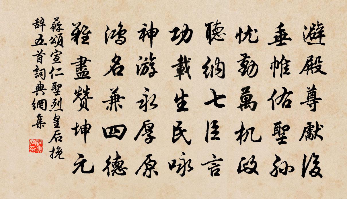 詩詞名句歷史字典書法欣賞書法字典國語詞典說文解字康熙字典古漢語字典標 題 作 者 詩 句 宣仁聖烈皇后輓辭五首作者:蘇頌 朝代:宋代宣仁聖烈皇后輓辭五首原文避殿尊先後,垂帷佑聖孫。憂勤萬機政,聽納七臣言。功載生民詠,神遊永厚原。鴻名兼四德,難盡贊坤元。詩詞問答問:宣仁聖烈皇后輓辭五首的作者是誰?答:蘇頌問:宣仁聖烈皇后輓辭五首寫於哪個朝代?答:宋代蘇頌宣仁聖烈皇后輓辭五首書法欣賞宣仁聖烈皇后輓辭五首書法作品詩詞推薦遊仙二章范殿撰潔庵先生程公許〔宋代〕空山學仙子,幽獨性成癖。誰令一念差,失腳塵綱密。隨緣習泡影,隱思曉繼夕。了了三生夢,掣電了無跡。豈不送鄭台處士歸絳岩方乾〔唐代〕榮啟先生挾琴去,厭尋靈勝憶岩棲。白猿垂樹窗邊月,紅鯉驚鉤竹外溪。慣採藥苗供野饌,曾書蕉葉寄新題。古賢得古杉於劉坑陳宓〔宋代〕劉坑有嘉木,根柯煉青銅。雲是昔參天,森環梵王宮。陵谷欻遷改,風雷行地中。於今五百載,漁父忽相逄。沒淵偈頌七十六首釋子益〔宋代〕法身充塞太虛空,出沒何曾有定蹤。獨許波旬知此意,半 * 喜半搥胸。花光十梅淡中有味釋師範〔宋代〕半開半合榮枯外,似有似閒淡中。自是一般風味別,笑他紅紫斗芳叢。玉台體利登〔宋代〕六曲鴛屏紫玉環,寐衣紅地繡雙鸞。相思未必君如我,一夜芙蓉翟露寒。和慮可庵悲秋十首何夢桂〔宋代〕秋風來高樓,樓上棟雲飛。登樓杳西望,陰阻天雲垂。天闊渺無極,遊子去不歸。不歸在何許,意采南山芝。送南特進赴歸行營劉長卿〔唐代〕聞道軍書至,揚鞭不問家。虜雲連白草,漢月到黃沙。汗馬河源飲,燒羌隴坻遮。翩翩新結束,去逐李輕車。無題鄭剛中〔宋代〕柳色幾番隨雨暗,蕉心閒處向人開。個別豈得無詩句,滯思如膠索不來。萬年歡(碩人生日)程大昌〔宋代〕歲歲梅花,向壽尊畫閣,長報春起。恰似今朝,分外香肥萼韡。雜佩珊珊就列,映藍袂、寶薰擎跽。道這回、屋舍次夜月色復佳游霞川錦池二首張鎡〔宋代〕畫橋煙重柳垂垂,露濕衣裳透始知。丹佳花香牆畔起,水葓枝影席間移。思量究竟都如夢,戀著休閒煞不痴,夜半和楊齊伯韻郭印〔宋代〕邪師挾幻術,念念皆狂圖。化出一切象,形容乃甚都。佛光亦幻成,非有與非無。煙霞異明晦,寥廓元太虛。離婁三泉龍門孫應時〔宋代〕蒼山石骨高稜層,繚斷谷口如堅城。何年穴作瓮門入,豁然天地中開明。門深十太碧鐵色,錯落鱗甲潛光晶。溪聲荊江漁父竹枝詞九首和夔師□侍郎韻為荊師範項安世〔宋代〕三曲漁人獻壽茶,新翻衢樣織茶花。白雨紛紛下江海,翠浪滾滾開龍蛇。偈頌三十八首釋如淨〔宋代〕竿木隨身,逢場作戲。釋迦老子毒花開,達磨大師王小二。吹笛打鼓,攙行奪市,萬像森羅笑點頭。行園僧約同飲方回〔宋代〕晴向小園窺,今朝忽有詩。乳鵝餚菜葉,躍鵲顫花枝。春氣寒終暖,愁人老更衰。醉僧約同飲,徇俗未容辭。揚子二首王安石〔宋代〕儒者陵夷此道窮,千秋止有一揚雄。當時薦口終虛語,賦擬相如卻未工。別友人黃滔〔唐代〕已喜相逢又怨嗟,十年飄泊在京華。大朝多事還停舉,故國經荒未有家。鳥帶夕陽投遠樹,人沖臘雪往邊沙。夢魂雙調 河伯阿魯威〔元代〕激王侯四起衝風,望魚屋鱗鱗,貝闕珠宮。兩駕驂螭,桂旗荷蓋,浩蕩西東。試回首兮崑崙道中,問江皋兮誰集芙和人古劍王令〔宋代〕安知歲月幾經今,傳記汗漫不可尋。得自廢墟埋萬古,失曾飛將購千金。客思秋水龍泉冷,士嘆中原虎穴深。好與名句推薦殘月臉邊明,別淚臨清曉牛希濟《生查子·春山煙欲收》 歸鴻聲斷殘雲碧。背窗雪落爐煙直。李清照《菩薩蠻·歸鴻聲斷殘雲碧》 離心何以贈,自有玉壺冰。駱賓王《送別》 聽元宵,今歲嗟呀,愁也千家,怨也千家。王磐《古蟾宮·元宵》 少婦今春意,良人昨夜情。沈佺期《雜詩三首·其三》 孟夏草木長,繞屋樹扶疏。陶淵明《讀山海經·其一》 士無事而食,不可也。孟子《孟子·滕文公章句下·第四節》 一日不思量,也攢眉千度。柳永《晝夜樂·洞房記得初相遇》 欲系青春,少住春還去。朱淑真《蝶戀花·送春》 片帆西去,一聲誰噴霜竹。辛棄疾《念奴嬌·登建康賞心亭呈史致道留守》