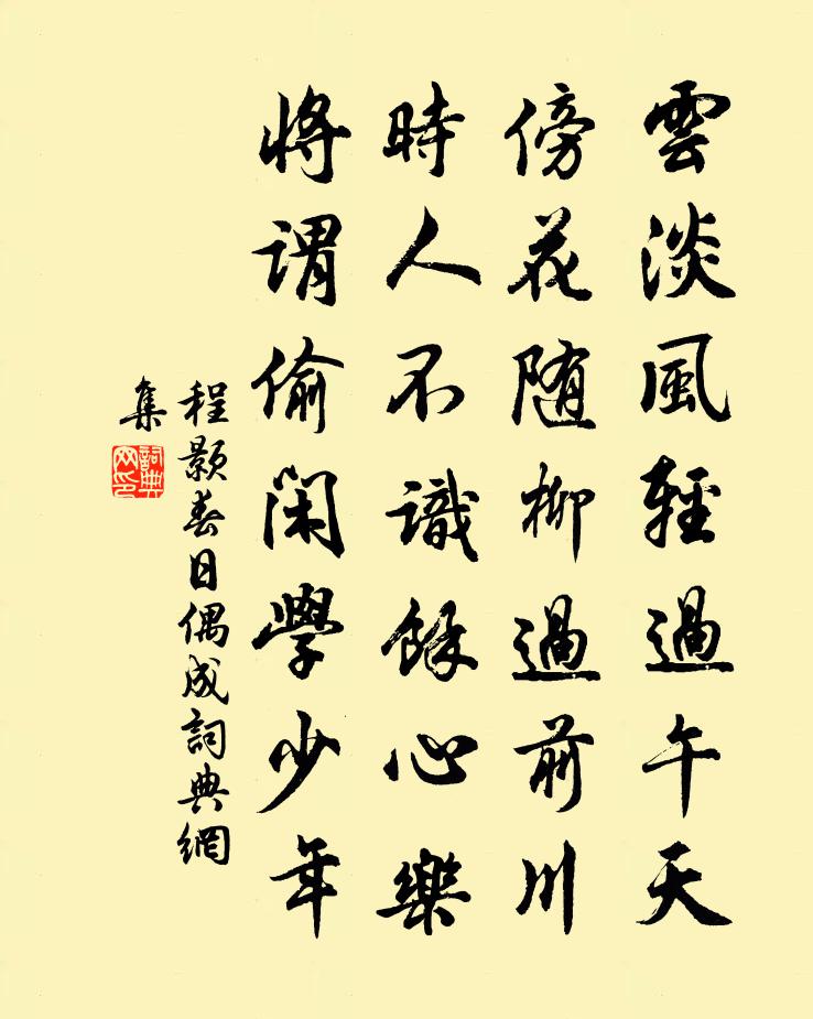 雲淡風輕過午天,傍花隨柳過前川。時人不識余心樂,將謂偷閒學少年。