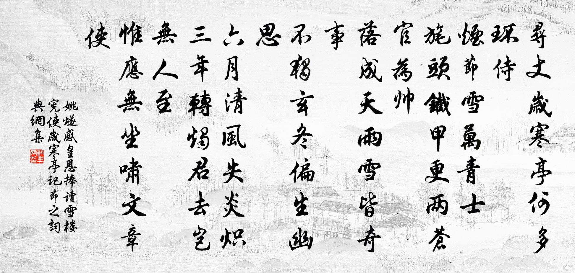詩詞名句歷史字典書法欣賞書法字典國語詞典說文解字康熙字典古漢語字典標 題 作 者 詩 句 感皇恩 捧讀雪樓憲使歲寒亭記, 節之作者:姚燧 朝代:元代原文尋丈歲寒亭,何多環侍。煙節雪萬青士。旄頭鐵甲,更兩蒼官為帥。落成天雨雪、皆奇事。不獨玄冬,偏生幽思。六月清風失炎熾。三年轉燭,君去豈無人至。惟應無坐嘯、文章使。詩詞問答問:《感皇恩 捧讀雪樓憲使歲寒亭記, 節之》的作者是誰?答:姚燧問:該詩寫於哪個朝代?答:元代問:該詩是什麼體裁?答:詞書法欣賞感皇恩 捧讀雪樓憲使歲寒亭記, 節之書法作品詩詞推薦送郭季勇同年歸衡山范成大〔宋代〕天壞郭有道,文獻今在茲。啄喙家雞群,見子野鶴姿。塵籠萬里心,擇食中夜飢。拙宦避捷徑,瘴風吹鬢絲。平生尋洪尊師不遇劉長卿〔唐代〕古木無人地,來尋羽客家。道書堆玉案,仙帔疊青霞。鶴老難知歲,梅寒未作花。山中不相見,何處化丹砂。南窗睡起陸游〔宋代〕夢中忘卻在天涯,一似當年錦里時。狂倚寶箏歌白紵,醉移銀燭寫烏絲。酒來郫縣香初壓,花送彭州露尚滋。起坐別友人楊凝〔唐代〕倦客驚危路,傷禽繞樹枝。非逢暴公子,不敢涕流離。金剛隨機無盡頌淨心行善分第二十三釋印肅〔宋代〕莫要問前程,何方不現成。動用語默處,不欠一微針。江城子·江景蘇軾〔宋代〕湖上與張先同賦,時聞彈箏鳳凰山下雨初晴,水風清,晚霞明。一朵芙蕖,開過尚盈盈。何處飛來雙白鷺,如有意春怨劉兼〔唐代〕繡林紅岸落花鈿,故去新來感自然。絕塞杪春悲漢月,長林深夜泣緗弦。錦書雁斷應難寄,菱鏡鸞孤貌可憐。獨倚採桑子朱敦儒〔宋代〕一番海角淒涼夢,卻到長安。翠帳犀簾。依舊屏斜十二山。玉人為我調琴瑟,顰黛低鬟。雲散香殘。風雨蠻溪半夜讀曲歌佚名〔宋代〕折楊柳。百鳥啼園林,道歡不離口。句釋曉瑩〔宋代〕胸中歷歷古兼今。踏莎行(贈傀儡人劉師父)劉仁父〔宋代〕不假牽絲,何勞刻木。天然容貌施妝束。把頭全仗姓劉人,就中學寫秦城築。伎倆優長,恢諧軟熟。當場喝采醒群詠瀟湘八景各一首江天暮雪劉克莊〔宋代〕絳路泥尤滑,柴門掃不開。子猷返棹後,不見有船來。和讀蘇武李陵司馬遷傳趙希逢〔宋代〕攜手河梁一別歸,衷情盡寄五言詩。故人妻子存乎否,因甚詩中無片辭。答潘文叔見寄予十月嘗訪文叔許來而猶未也孫應時〔宋代〕別離一何久,迢遞阻音形。重上君子堂,相見眼終青。君顏尚冰玉,我鬢已星星。借問十載間,風波兩蓬萍。嶺劍次韻慶充避暑水西寺范成大〔宋代〕佳晨出西郭,仰視天宇清。樂哉曠土懷,浩浩吞四溟。新漲忽勇退,籬落粘枯萍。風幡招客游,曠望隔苹汀。僕夫張子衍為至德知觀鄢沖真求詩白玉蟾〔宋代〕一簇樓台水上居,琅風韻竹動笙竽。魚龍飛舞半帆雨,鷗鷺眠呼兩岸蘆。雪覆高低春玉樹,月明表里夜冰壺。漁郎江南行許晝〔唐代〕江南蕭灑地,本自與君宜。固節還同我,虛心欲待誰。澗泉傍借響,山木共含滋。粉膩蟲難篆,叢疏鳥易窺。盡應師子院明初院主請釋原妙〔宋代〕鼻無兩竅,眼露雙睛。十分無面目,一味得人憎。將正續三世之業,等閒籍沒。向白雲千峰之上,特地掀騰。坐斷迷神引朱雍〔宋代〕白玉樓高雲光繞。望極新蟾同照。前村暮雪,霽梅林道。澗風平,波聲渺。喜登眺。疏影寒枝顫,太春早。臨水凝陳右司輓詩姜特立〔宋代〕麟絕絕學冠名儒,科甲巍峨壓雋途。兩作星郎歸省戶,五持玉節佩州符。義倉睦族前賢少,猶子推恩舉世無。忝竊名句推薦寒禽與衰草,處處伴愁顏。司空曙《賊平後送人北歸》 柳葉雙眉久不描,殘妝和淚污紅綃。江采萍《謝賜珍珠》 垂緌飲清露,流響出疏桐。虞世南《蟬》 大仇必去,小人勿輕,禍不可伏。來俊臣《羅織經·固榮卷第六》 遨歡任落風前帽,促飲爭吹酒上花。宋祁《九日置酒》 數點雨聲風約住,朦朧淡月雲來去李冠《蝶戀花·春暮》 話須通俗方傳遠,語必關風始動人。馮夢龍《警世通言·卷十二》 殘雪庭陰,輕寒簾影,霏霏玉管春葭。王沂孫《高陽台·和周草窗寄越中諸友韻》 多情卻被無情惱,今夜還如昨夜長。元好問《鷓鴣天·候館燈昏雨送涼》 草色煙光殘照里,無言誰會憑闌意。柳永《蝶戀花·佇倚危樓風細細》