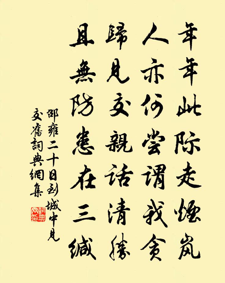 詩詞名句歷史字典書法欣賞書法字典國語詞典說文解字康熙字典古漢語字典標 題 作 者 詩 句 二十日到城中見交舊作者:邵雍 朝代:宋代二十日到城中見交舊原文年年此際走煙嵐,人亦何嘗謂我貪。歸見交親話清勝,且無防患在三緘。詩詞問答問:二十日到城中見交舊的作者是誰?答:邵雍問:二十日到城中見交舊寫於哪個朝代?答:宋代邵雍二十日到城中見交舊書法欣賞二十日到城中見交舊書法作品詩詞推薦雨雪中歲享臥病不能陪位令諸了代拜曹彥約〔宋代〕歲事無多世事忙,病夫終日臥藤床。雪積易消春已近,雨來無節晝偏長。朝儀尚想三回舞,歲享難持一瓣香。莫道江行第八十五文天祥〔宋代〕畏途隨長江,萬里滄茫水。遊子去日長,壯心不肯已。乍歸九首劉克莊〔宋代〕官滿無南物,飄然匹馬還。惟應詩卷里,偷畫桂州山。悲苦行王冕〔元代〕悲風吹沙墮空屋,老烏號鳴屋上木。誰家男子從遠征?父母妻孥相送哭。哭聲嗚咽已別離,道旁復對行人悲。去者冬日寄洛中楊少尹馬戴〔唐代〕黃河岸柳衰,城下度流澌。年長從公懶,天寒入府遲。家山望幾遍,魏闕赴何時。懷古心誰識,應多謁舜祠。師守之官枉駕過龍鵠省先公墓而去二詩送之孫應時〔宋代〕遠道勤君屐齒迂,寄聲從此問何發,歸鴻不與斜陽盡,離恨還將落葉書。吏橫要須先縛虎,民勞切記莫驚魚。扶藜贊張英玉蟬驚螳螂圖姚勉〔宋代〕一螳踉蹲上枯柳,一螳欲上鼓劍走。驚蟬側翅著樹枝,性命幾成落渠手。物生遠害當知幾,不知猶可況已知。千枝齊天樂 壽方君會洪希文〔元代〕山陰文會才三日,懷陣跡都如掃。鬱鬱蔥蔥,融融溢溢,和氣偏薰瑤草。春光未老。便撒放鶯花,收回梨棗。醉咽新涼示同學黃庭堅〔宋代〕西風先自無訊息,忽上青林報秋色。天高月明露泥泥,團扇已從蛛網織。蛩螿何苦不自聊,入我夜床鳴唧唧。似言贈司徒兼侍中宋宣獻輓詞四首宋庠〔宋代〕宗工天下寶,歸葬國西原。野闊簫聲苦,雲愁旐影昏。如存三事禮,不返九京魂。河海空成淚,難酬國士恩。留別傅才儒李彌遜〔宋代〕壯歲追隨鬢已蒼,誰將勳業問行藏。憐公錯莫雞群鶴,顧我凌兢虎質羊。敗柳變工喧暮雨,寒花直欲膩秋霜。更謀頌古釋道顏〔宋代〕二乘菩薩何年盡,諸佛凡夫早晚休。世情但將公道斷,人心難似水長流。南鄉子歐陽炯〔唐代〕嫩草如煙,石榴花發海南天。日暮江亭春影淥,鴛鴦浴,水遠山長看不足。畫舸停橈,槿花籬外竹橫橋。水上游上酒德頌劉伶〔魏晉〕 有大人先生,以天地為一朝,以萬期為須臾,日月為扃牖,八荒為庭衢。行無轍跡,居無室廬,幕天席地,縱答崔賓客晦叔十二月四日見寄(來篇雲共相呼喚醉歸來)白居易〔唐代〕今歲日餘二十六,來歲年登六十二,尚不能憂眼下身,因何更算人間事。居士忘筌默默坐,先生枕麴昏昏睡。早晚獨坐吟秦韜玉〔唐代〕客愁不盡本如水,草色含情更無已。又覺春愁似草生,何人種在情田裡。送王克憲奉職之彭澤梅堯臣〔宋代〕折柳贈子行,況聞彭澤去。將過五株下,可與青青助。渭城人唱罷,羌管愁吹處。江上定多閉,疏陰就箕踞。柳枝辭十二首徐鉉〔唐代〕蒙蒙堤畔柳含煙,疑是陽和二月天。醉里不知時節改,漫隨兒女打鞦韆。三月游延平溪源陳宓〔宋代〕溪源數里近,半載始能之。鸑鷟一峰聳,相參如有期。昔人卓庵地,惜不譚佇尼。我與五士游,正值暮春時。修梁桃花園馬上應制張說〔唐代〕林間艷色驕天馬,苑裡穠華伴麗人。願逐南風飛帝席,年年含笑舞青春。名句推薦愛人者必見愛也,而惡人者必見惡也。墨子《墨子·16章 兼愛(下)》 才道莫傷神,青衫濕一痕。納蘭性德《菩薩蠻·新寒中酒敲窗雨》 疏星淡月鞦韆院,愁雲恨雨芙蓉面。張可久《塞鴻秋·春情》 東岩富松竹,歲暮幸同歸。王勃《送盧主簿》 單于北望拂雲堆,殺馬登壇祭幾回。王之渙《涼州詞二首》 我見青山多嫵媚,料青山見我應如是。辛棄疾《賀新郎·甚矣吾衰矣》 春風十里揚州路,卷上珠簾總不如。杜牧《贈別》 觀今宜鑑古,無古不成今。佚名《增廣賢文·上集》 地白風色寒,雪花大如手。李白《嘲王歷陽不肯飲酒》 夜雨做成秋,恰上心頭。納蘭性德《浪淘沙·夜雨做成秋》