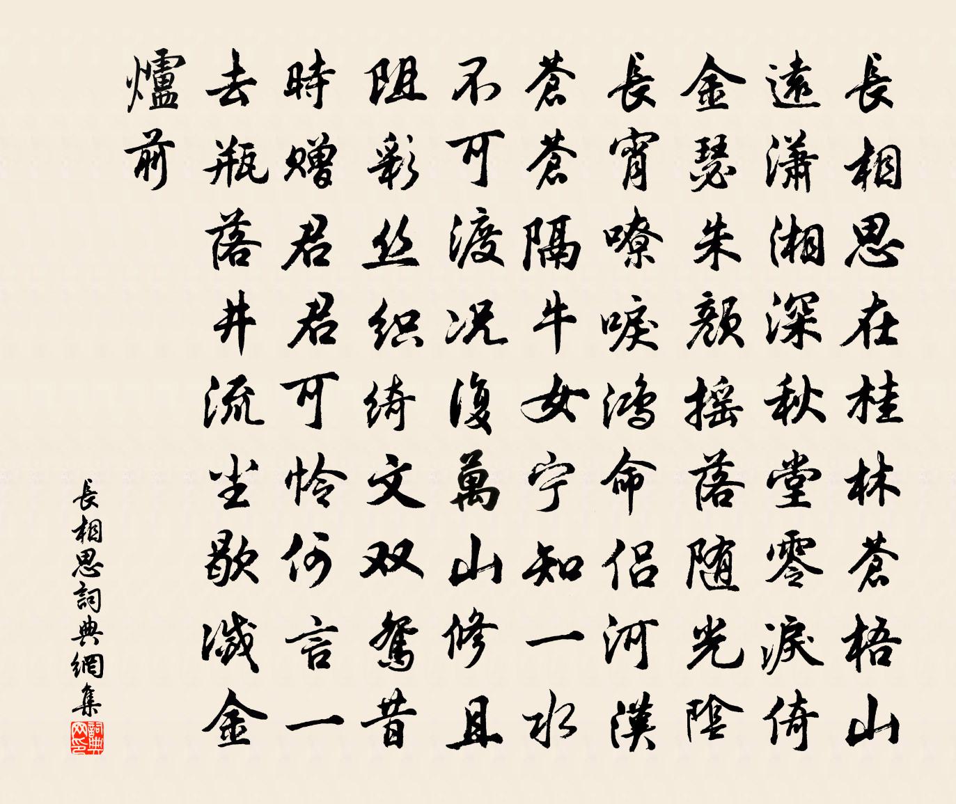 長相思,在桂林,蒼梧山遠瀟湘深。秋堂零淚倚金瑟,