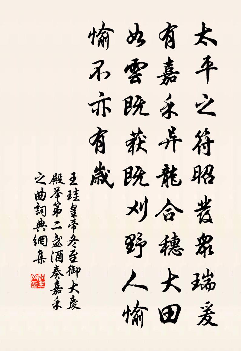 詩詞名句歷史字典書法欣賞書法字典國語詞典說文解字康熙字典古漢語字典標 題 作 者 詩 句 皇帝冬至御大慶殿舉第二盞酒奏嘉禾之曲作者:王珪 朝代:唐代原文太平之符,昭發眾瑞。爰有嘉禾,異龍合穗。大田如雲,既獲既刈。野人愉愉,不亦有歲。詩詞問答問:《皇帝冬至御大慶殿舉第二盞酒奏嘉禾之曲》的作者是誰?答:王珪問:該詩寫於哪個朝代?答:唐代書法欣賞皇帝冬至御大慶殿舉第二盞酒奏嘉禾之曲書法作品詩詞推薦好事近(留斡家詠方響)丘崈〔宋代〕空澗落鳴泉,千騎雨霖衣鐵。金奏欲終人醉,有玉聲清越。夜深縴手怯輕寒,餘韻寄愁絕。玉樹夢回何處,但滿庭用前韻寄明叔趙蕃〔宋代〕須白底用悲,我十君二五。亦莫問此身,寒暑堪幾數。別君春已夏,往往疏勞苦。況說買江天,重聽誦詩許。君德龐居士闔家都去圖贊釋智愚〔宋代〕神出鬼沒,接響承虛。這一火絡,邪法難扶。互將魚目作明珠,笑倒西天碧眼胡。山居白居易〔唐代〕山齋方獨往,塵事莫相仍。藍輿辭鞍馬,緇徒換友朋。朝餐唯藥菜,夜伴只紗燈。除卻青衫在,其餘便是僧。點絳唇 詠風蘭納蘭性德〔清代〕別樣幽芬,更無濃艷催開處。凌波欲去,且為東風住。忒煞蕭疏,怎耐秋如許?還留取,冷香半縷,第一湘江雨。中秋日客退獨坐偶成家鉉翁〔宋代〕春月令人悅,秋月令人悲。人意自悲歡,夫豈月所為。炯然此方寸,圓明貫四時。閉門獨自賞,無盈亦無虧。御閣春帖子夏竦〔宋代〕青逵布序韶暉盛,紫禁乘春樂事多。海域晏清無夕慮,齋居宣室順天和。過貴溪數里望月岩作趙蕃〔宋代〕宿雨洗清秋,行行早放舟。團團正林杪,隱隱半岩幽。永謝妖蟆食,寧須玉斧修。少微並婺女,何事獨名州。偈頌六十七首釋原妙〔宋代〕萬里不掛片雲,虛空突出一竅。雙髻峰{左足右孛}跳上三十三天,拄杖子向十字街頭揚聲大叫。炎炎六月火生冰又送道者王法圓作丐王之道〔宋代〕誓將三寸舌,求結萬人緣。寶剎成功日,當期道法圓。題南雄驛外計堂楊萬里〔宋代〕攜家度嶺夜乘槎,小泊凌江水北涯。二月山城無菜把,一年春事又楊花。舉頭海國星辰近,回顧梅山草樹遮。客子十月一日浮橋成以故事宴客凌雲陸游〔宋代〕陰風吹雨白晝昏,誰掃雲霧升朝暾?三江水縮獻洲渚,九頂秀 * 塞門。西山下竹十萬個,江面便可馳車轅。巷無城頭秋望二首楊萬里〔宋代〕秋光好處頓胡床,旋喚茶甌淺著湯。隔樹漏天青破碎,驚風度竹碧勿忙。送楊子寬還臨安寄錢處和曹勛〔宋代〕送客天台不上船,東風款段喜揚鞭。山容閣雪曉猶冷,花色烘雲春正妍。壠上麥芒猶綠嫩,枝間梅子漸青圓。有懷次韻曾宣乾項安世〔宋代〕無缽無簞曉自齋,一銎一衲晚逾乖。戰場實事膏兼血,廣坐虛談冢共骸。虜事方然人尚爾,世途何者我猶諧。道林游石溪示學者元結〔唐代〕小溪在城下,形勝堪賞愛。尤宜春水滿,水石更殊怪。長山勢回合,井邑相縈帶。石林繞舜祠,西南正相對。階庭記小圃花果二十首劉克莊〔宋代〕曼卿仙不死,隱隱素騾嘶。走入芙蓉里,花心路忽迷。獻州道中文天祥〔宋代〕三年戎服行,五嶺文玉會。躋攀上崖磴,厲揭涉瀟瀨。十步九崎嶇,山水何破碎。坐信紙管仲小,自覺伯夷隘。乃過香積寺王維〔唐代〕不知香積寺,數里入雲峰。古木無人徑,深山何處鐘。泉聽咽危石,日色冷青松。薄暮空潭曲,安禪製毒龍。依韻和張推官元夕文同〔宋代〕山郡上元榮樂事,大開金地作遨場。煙雲向曉誰教霽,燈燭乘春自有香。紫陌熒煌隨步遠,彩棚佳麗斗眉長。遊人名句推薦歲暮鋤犁傍空室,呼兒登山收橡實。張籍《野老歌 / 山農詞》 冬夜兮陶陶,雨雪兮冥冥。王逸《九思》 相逢不飲空歸去,洞口桃花也笑人。佚名《增廣賢文·上集》 去年夜半橫江夢,倚危檣,參差曾賦劉辰翁《桂枝香· * 人去》 清愁詩酒少,寒食雨風多。張鎡《寒食》 不知三江水,何事亦分流?陳子龍《三洲歌》 密雲雙鳳,初破縷金團。米芾《滿庭芳·詠茶》 睢睢而盱盱,而誰與居?大白若辱,盛德若不足。列子及其弟子《列子·黃帝》 謝公最小偏憐女,自嫁黔婁百事乖。元稹《遣悲懷三首·其一》 秋侵人影瘦,霜染菊花肥。沈復《浮生六記·閨房記樂》