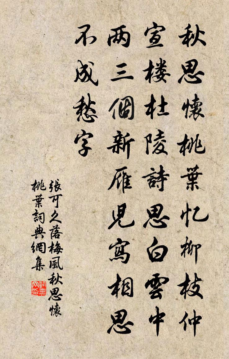懷桃葉,憶柳枝,仲宣樓杜陵詩思。白雲中兩三個新雁兒,寫相思不成愁字。