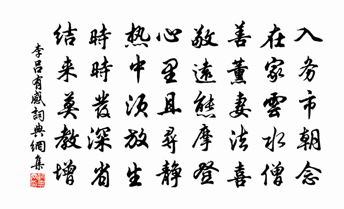 詩詞名句歷史字典書法欣賞書法字典國語詞典說文解字康熙字典古漢語字典標 題 作 者 詩 句 有感作者:李呂 朝代:宋代有感原文入務市朝念,在家雲水僧。善薰妻法喜,敬遠態摩登。心裡且尋靜,熱中須放生。時時發深省,結來莫教增。詩詞問答問:有感的作者是誰?答:李呂問:有感寫於哪個朝代?答:宋代李呂有感書法欣賞有感書法作品詩詞推薦次玩鞭亭小詩韻陳造〔宋代〕竊祿未辭官九品,歸田止欠屋三間。著書他日藏岩穴,或繼淮南大小山。癸丑年下第獻新先輩韋莊〔唐代〕五更殘月省牆邊,絳旆蜺旌卓曉煙。千炬火中鶯出谷,一聲鍾後鶴沖天。皆乘駿馬先歸去,獨被羸童笑晚眠。對酒太上皇后合端午帖子詞汪應辰〔宋代〕晉國燔山求介子,荊人角黍祀靈均。聖君今舊仍從諫,千古忠賢氣亦伸。同杜叔高祝彥集觀天保庵瀑布主人留飲兩日且辛棄疾〔宋代〕竹杖芒鞋看瀑回,暮年筋力倦崔嵬。桃花落盡無春思,直待牡丹天后來。詠貧士 其四陶淵明〔魏晉〕安貧守賤者,自古有黔婁。好爵吾不榮,厚饋吾不酬。一旦壽命盡,弊服仍不周。豈不知其極,非道故無憂。從來次韻答斌老病起獨游東園二首黃庭堅〔宋代〕萬事同一機,多慮乃禪病。排悶有新詩,忘蹄出兔徑。蓮花生淤泥,可見嗔喜性。小立近幽香,心與晚色靜。示從子河南尉班韋應物〔唐代〕拙直余恆守,公方爾所存。同占朱鳥克,俱起小人言。立政思懸棒,謀身類觸藩。不能林下去,只戀府廷恩。烏夜啼(題趙三畏舍館海棠)吳文英〔宋代〕醉痕深暈潮紅。睡初濃。寒食來時池館,舊東風。銀燭換。月西轉。夢魂中。明日春和人去,繡屏空。五祖將禪人求頌釋正覺〔宋代〕東風吹斷濡華雨,淮上秀峰青可數。束屨欲尋南北山,卷衣又別東西祖。淵魚蒲鳥鬧一家,汀筍溪蔬甘兩箸。處處錦堂春/錦堂春慢佚名〔宋代〕臘雪初晴,冰銷凝泮,尋幽閒賞名園。時向長亭登眺,倚遍朱闌。拂面嚴風凍薄,滿階前、霜葉聲乾。見小台深處【正宮】月照庭_老足秋容,佚名〔元代〕老足秋容,落日殘蟬暮霞,歸來雁落平沙。水迢迢,煙淡淡,露濕蒹葭。飄紅葉,噪晚鴉。 【麼】古岸蒼蒼,張公生日〈是歲己未初致仕。〉蘇轍〔宋代〕少年談王霸,英氣乾鬥牛。中年事軒冕,徇世仍多憂。晚歲探至道,眷眷懷林丘。今年乞身歸,始與夙昔酬。高秋展江亭海棠四首韓維〔宋代〕昔年曾到蜀江頭,絕艷牽心幾十秋。今日欄邊見顏色,夢魂不復過西州。漁家傲梵琦〔元代〕聽說西方無量樂。莊嚴七寶為樓閣。瑪瑙珊瑚兼琥珀。光堪摘。金繩界道何輝赫。寶樹靈禽皆化作。滿地鳧雁鴛鴦寄題江渙長官南園茅齋蘇轍〔宋代〕白髮章勤困小邦,塵勞坐使壯心降。河陽罷後成南圃,彭澤歸來臥北窗。畦畔草生親荷鍤,床頭酒熟自傾缸。因君點絳唇蘇茂一〔宋代〕竹翠藏煙,杏紅流水歸何處。透簾穿戶。更灑黃昏雨。織錦題書,誰寄愁情去。渾無緒。綠楊千縷。不似真眉嫵。小至杜甫〔唐代〕天時人事日相催,冬至陽生春又來。刺繡五紋添弱線,吹葭六琯動浮灰。岸容待臘將舒柳,山意沖寒欲放梅。雲物蝶戀花(次韻鄭一)韓淲〔宋代〕千葉香梅春在手。日薄簾櫳,花影遮前後。小立徐行還易久。微吟莫厭傷多久。拾翠流紅弦管透。望斷青青,休問太師平章喬文惠公輓歌詞三首杜范〔宋代〕奕世諸賢輔,清朝得老成。諫兵秦蹇叔,憂國漢蕭生。更化人皆仰,調元位獨亨。天遲諸葛死,尚欲致昇平。酹江月/念奴嬌佚名〔宋代〕仙翁初度,遇端陽佳節,又還兩日。怪得箕星光倍正,凌曉獨輝南極。料想當年,儲祥薦瑞,兆見開先吉。稱觴此名句推薦城門失火,殃及池魚。佚名《增廣賢文·上集》 云何應住,云何降伏其心。鳩摩羅什譯《金剛經·善現啟請》 爭奈醒來,愁恨又依然朱淑真《江城子·賞春》 一身轉戰三千里,一劍曾當百萬師。王維《老將行》 故人具雞黍,邀我至田家。孟浩然《過故人莊》 寵辱不驚,肝木自寧陳繼儒《小窗幽記·集靈篇》 莫驚鷗鷺,四橋儘是,老子經行處。蘇軾《青玉案·送伯固歸吳中》 信言不美,美言不信。老子《老子·德經·第八十一章》 養不教,父之過。教不嚴,師之惰。王應麟《三字經·全文》 小雨濕黃昏。重午佳辰獨掩門。李之儀《南鄉子·端午》