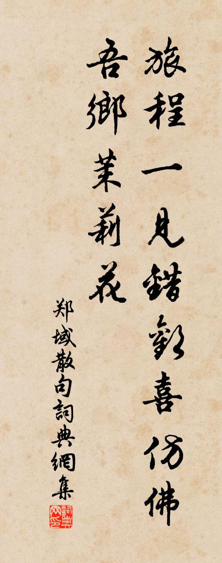 詩詞名句歷史字典書法欣賞書法字典國語詞典說文解字康熙字典古漢語字典標 題 作 者 詩 句 句作者:鄭域 朝代:宋代句原文旅程一見錯歡喜,仿佛吾鄉茉莉花。詩詞問答問:句的作者是誰?答:鄭域問:句寫於哪個朝代?答:宋代鄭域句書法欣賞句書法作品詩詞推薦蔡司業爭公議而去詩以送之胡仲弓〔宋代〕此舉朝廷系重輕,先生直以去為榮。但令天下無 * ,不願吾曹有令名。模楷昔曾宗李氏,縉紳今盡說陽城。是非瞻彼南山司馬光〔宋代〕帝白卿士,左右之臣。四方無虞,矜爾之勤。式觀且游,從予一人。於壺欲閎,於堂於陳。金石之符,翰墨之珍。次韻郭帥和楊使者張茶馬溪莊詩晁說之〔宋代〕溪莊吟興浩如神,不似逢時富貴身。雲外黃羊眠竹影,月中赤鯉戲河濱。揚雄奇字情宜密,張令清談分自親。顧我複次韻四首袁說友〔宋代〕十里髻鬟誰綰結,半天苑翠自嶙峋。教兒莫憚依山住,闊領裁衣盡土人。東籬雜書陸游〔宋代〕身與春俱老,愁隨日漸長。簾櫳聽語燕,澗谷擷幽芳。酒榼常從後,詩囊亦在傍。閒行無定處,隨意據胡床。五更出舍郎王哲〔元代〕認得五般出舍郎。黑白彰。當中赤,間青黃。哩**哩哩,妙玄良。玲瓏了,便玎鐺。醉中戲贈鄭使君 時使君先歸,留妓樂重飲。白居易〔唐代〕密座移紅毯,酡顏照綠杯。雙娥留且住,五馬任先回。醉耳歌催醒,愁眉笑引開。平生少年興,臨老暫重來。感皇恩 壽表弟韓雲卿王惲〔元代〕臨事羨君材,笑予拙宦。待詔雲龍更英盼。夢迥孤枕,依舊新豐旅*。明時無寸補、空留戀。綠泛蓮波,望高霄漢雜興十首以貧堅志士節病長高人情為韻陸游〔宋代〕仕宦遍四方,每出歸愈貧,寒暑更質衣,笑倒鄰里人。今年作史官,坐糜太倉陳;無如思歸何,日夜望絕麟。區區嘲苗振王逵〔宋代〕伯起雄豪世莫偕,官高祿重富於財。田從汶上天出生,堂自明州地架來。十雙畫船風破浪,兩行紅粉夜傳杯。自憐聞龜兒詠詩白居易〔唐代〕憐渠已解詠詩章,搖膝支頤學二郎。莫學二郎吟太苦,才年四十鬢如霜。偈頌一百二十三首釋祖欽〔宋代〕集雲一關,似乎等閒。看時容易,透時即難。森羅萬象,從教側目,三世諸佛,迥絕躋攀。一徑古松苔蘚斑。酒有和勁羅大經〔宋代〕小槽真珠太森嚴,兵廚玉友專甘醇。兩家風味欠商略,偏剛偏柔俱可憐。使君袖有轉物手,鸕鶿杓中平等分。更憑贈煜上人石窗姚勉〔宋代〕八窗本體自玲瓏,鑿石為明更不同。遮莫獼猴常應外,直須蟾月鎮當中。金陵雜興二百首蘇泂〔宋代〕東門草色綠匆匆,游女行尋郎馬蹤。雞魚不到吳大帝,簽卜爭求梁寶公。偈頌一百零一首釋慧性〔宋代〕去聖時遙,人多懈怠。逆則生嗔,順則生愛。不嗔不愛,東海剪刀,西番布袋。解脫門頭緊著關,休夸鋪席無人賣送柳子玉蘇轍〔宋代〕柳侯白首郎,風格終近古。舊遊日零落,新輩誰與伍。人情逐時好,變化無定主。試看近時人,相教蹈規矩。行身偈頌三十首釋印肅〔宋代〕乍雨乍晴寶象明,東西南北亂雲深。失珠無限人遭劫,幻應權機為汝清。感懷宋祁〔宋代〕天與疏慵地,人無榮進心。死灰差免溺,棄仗即成林。主諾固多暇,避賢懷所欽。難邀潁川鳳,敢望漢台金。倚酒次韻汪解元留別衛博〔宋代〕留別詩成語更酸,誰憐索米困長安。聖朝有意台萊詠,高士無嫌桂柏寒。聞道新書行入奏,少陪征棹慰餘歡。一封名句推薦行善濟人,人遂得以安全,即在我亦為快意王永彬《圍爐夜話·第五一則》 凡天下禍篡怨恨,其所以起者,以不相愛生也,是以仁者非之。墨子《墨子·15章 兼愛(中)》 少年辛苦終身事,莫向光陰惰寸功。杜荀鶴《題弟侄書堂》 春風依舊。著意隨堤柳。趙令畤《清平樂·春風依舊》 閣道步行月,美人愁煙空。李白《上之回》 故人離別盡,淇上轉驂騑。王維《送魏郡李太守赴任》 人情送匹馬,買賣不饒針!佚名《增廣賢文·下集》 如何同枝葉,各自有枯榮李白《樹中草》 青女素娥俱耐冷,月中霜里斗嬋娟。李商隱《霜月》 唯燒蒿棘火,愁坐夜待晨白居易《村居苦寒》
