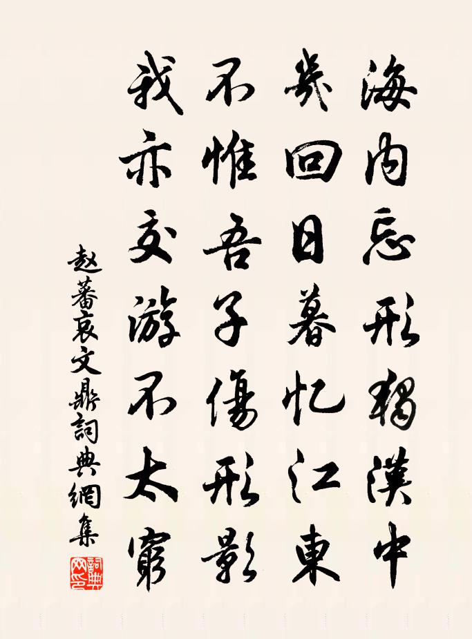 詩詞名句歷史字典書法欣賞書法字典國語詞典說文解字康熙字典古漢語字典標 題 作 者 詩 句 哀文鼎作者:趙蕃 朝代:宋代哀文鼎原文海內忘形獨漢中,幾回日暮憶江東。不惟吾子傷形影,我亦交遊不太窮。詩詞問答問:哀文鼎的作者是誰?答:趙蕃問:哀文鼎寫於哪個朝代?答:宋代趙蕃哀文鼎書法欣賞哀文鼎書法作品詩詞推薦金鈴菊史鑄〔宋代〕化工寫出爛盈枝,顆顆光明耀竹籬。賞玩佳人應笑道,待教擊向雪獅兒。明神李商隱〔唐代〕明神司過豈令冤,暗室由來有禍門。莫為無人欺一物,他時須慮石能言。金陵懷古陳元鑒〔宋代〕英雄戰守幾春秋,虎踞龍蟠古石頭。北固只憑江水在,中原長對夕陽愁。曹劉謾有經營志,王謝空遺富貴羞。舉目釣台詩范仲淹〔宋代〕漢包六合岡英豪。一個冥鴻惜羽毛。世祖功臣三十六,雲台爭似釣台高。贈別鄭判官李白〔唐代〕竄逐勿復哀,慚君問寒灰。浮雲本無意,吹落章華台。遠別淚空盡,長愁心已摧。二年吟澤畔,憔悴幾時回。寄劉九陳藻〔宋代〕一生閉門不結交,匯緣遇我如同胞。年年客里故人多,飲水逢君朱顏酡。鵲去鳩來有空屋,牝乳雛飛無啄粟。香火觀妓李何〔唐代〕向晚小乘游,朝來新上頭。從來許長袖,未有客難留。虞美人 繼重陽韻馬鈺〔元代〕馬風得遇心塵少。通得玄中妙。自然恥戴皂羅巾。真息綿綿,營養不神神。慧燈不住通天照。性命須當了。金爐便浣溪沙趙子發〔宋代〕疏蔭搖搖趁岸移。驚鷗點點過帆飛。船分水打嫩沙回。斷夢不知人去處,捲簾還有燕來時。日斜風緊轉灣西。移莎唐彥謙〔唐代〕移從杜城曲,置在小齋東。正是高秋里,仍兼細雨中。結根方迸竹,疏蔭托高桐。苒苒齊芳草,飄飄笑斷蓬。片時季秋既望吾族子侄以老人會於我家名日燕老集陳著〔宋代〕颯颯西風來,吹不開眉端。團團空中月,照不見肺肝。菊花仍舊香,過雁秋年年。我懷人得知,流光逝如川。況此鷓鴣天(元夕次韻乾譽)葉夢得〔宋代〕夾路行歌盡落梅。篆煙香細裊寒灰。雲移碧海三山近,月破中天九陌開。追樂事,惜多才。車聲遙聽走晴雷。十年奉送滁州趙學士宋庠〔宋代〕灼灼書林彥,胡為江海濱。希遷杜陵客,出守始平人。夕蘿螭階遠,前驅隼旆新。離觴君莫愬,去去易沾巾。即席依韻奉和司徒侍中上巳會許公亭二首強至〔宋代〕禊事初修樂未涯,晴陽濃淡薄雲遮。風光轉入庭前柳,春色隨來席上花。千載風流追曲水,萬人游豫掩長沙。相公元豐壬戌歲暮書事楊時〔宋代〕閩陬地力盡,種藝被山谷。涵濡一雨潤,鬱郁原野綠。春風忽雲徂,舒景變炎燠。涼飈動地軸,揫斂何神速。坐愁東丁洞效江西體次知難韻史堯弼〔宋代〕洞中滴瀝幾何深,猶有太古之遺音。我來一唱三嘆息,關雎之樂元非淫。無聲也無鳴東丁,入耳偏向幽人清。端勝寒食夜白居易〔唐代〕四十九年身老日,一百五夜月明天。抱膝思量何事在?痴男呆女喚鞦韆。休日留園中至暮乃歸陸游〔宋代〕盡道官身屬太倉,未妨寄傲向林塘。綠波春漲群魚樂,清露晨流蔓草香。閒試名弓來射圃,醉盤驕馬出球場。長城題思安清意太師幽遠庵釋擇璘〔宋代〕得意幽深觸處真,何須丘壑密藏身。愛茲殊勝園林地,非彼等間花木春。白晝杜門人莫到,清談絕俗世難親。紛紛望東湖五首袁燮〔宋代〕天上金波印水心,心中波浪亦成金。小舟蕩漾金波里,陡覺廣寒宮殿深。名句推薦殘日東風,不放歲華去。吳文英《祝英台近·除夜立春》 執古之道,以御今之有。老子《老子·道經·第十四章》 翠葆參差竹徑成。新荷跳雨淚珠傾。周邦彥《浣沙溪·翠葆參差竹徑成》 雨中黃葉樹,燈下白頭人。司空曙《喜外弟盧綸見宿》 橫看成嶺側成峰,遠近高低各不同。蘇軾《題西林壁》 長恨此身非我有,何時忘卻營營。蘇軾《臨江仙·夜飲東坡醒復醉》 飛鳥沒何處,青山空向人。劉長卿《餞別王十一南遊》 記當日、門掩梨花,翦燈深夜語。史達祖《綺羅香·詠春雨》 報國無門空自怨,濟時有策從誰吐。吳潛《滿江紅·送李御帶珙》 野戰格鬥死,敗馬號鳴向天悲。李白《戰城南》