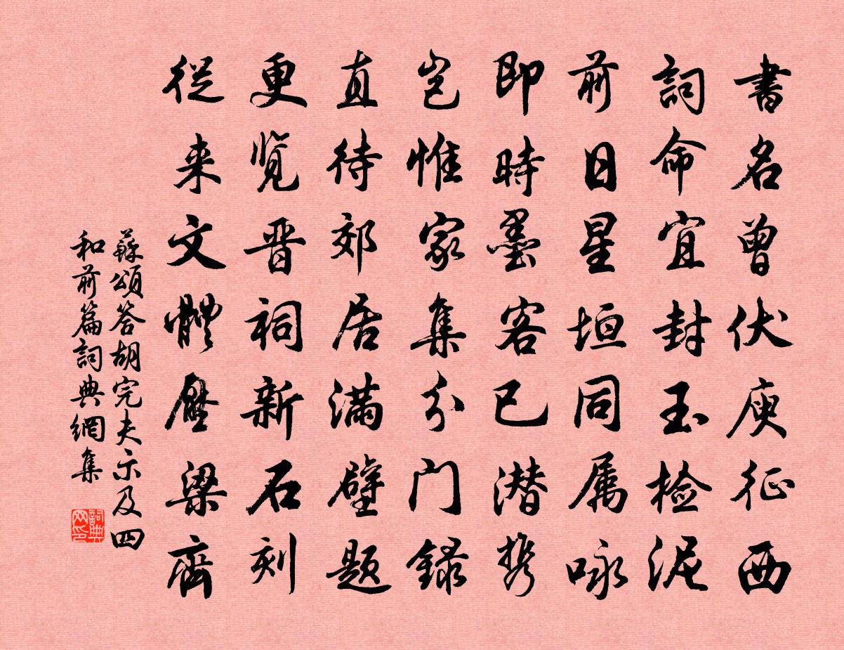 詩詞名句歷史字典書法欣賞書法字典國語詞典說文解字康熙字典古漢語字典標 題 作 者 詩 句 答胡完夫示及四和前篇作者:蘇頌 朝代:宋代答胡完夫示及四和前篇原文書名曾伏庾征西,詞命宜封玉檢泥。前日星垣同屬詠,即時墨客已潛攜。豈惟家集分門錄,直待郊居滿壁題。更覽晉祠新石刻,從來文體壓梁齊。詩詞問答問:答胡完夫示及四和前篇的作者是誰?答:蘇頌問:答胡完夫示及四和前篇寫於哪個朝代?答:宋代蘇頌答胡完夫示及四和前篇書法欣賞答胡完夫示及四和前篇書法作品詩詞推薦枕上和圓機絕句梅花十有四首晁說之〔宋代〕天馬錦輕誰得開,月兒羅薄掛香台。屈平宋玉渾無語,後輩何人敢詠梅。閃宋左司韻鄧肅〔宋代〕往事無如今日新,鑾輿一再冒胡塵。陽微陰極故多雨,柳怨花愁不忍春。已遣侈心傾虜帳,行收淚眼拜楓宸。眼前景德祭社稷三首佚名〔宋代〕百彀蕃滋,麗乎下土。聿崇明祀,垂之千古。育物惟茂,粒民斯普。報本攸宜,國章鹹睹。春遊西園朱淑真〔宋代〕閒步西園裡,春風明媚天。蝶疑莊叟夢,絮憶謝娘聯。踏草青茵軟,看花紅錦鮮。徘徊月影下,欲去又依然。贈梁教授陳造〔宋代〕梁侯藿菽芼山雌,冷坐欲試菁莪詩。嗣聖急賢饑渴似,項背趣召君得辭。九門方懸帝堯鼓,久旱可無傅岩雨。幾聽浣溪沙·鳳髻拋殘秋草納蘭性德〔清代〕鳳髻拋殘秋草生,高梧濕月冷無聲。當時七夕記深盟。信得羽衣傳鈿合,悔教羅襪葬傾城。人間空唱雨淋鈴。和子厚弟九日登魏文振亭園七首王之道〔宋代〕官道千秋坐小車,仙隨阮肇飯胡麻。男兒正患無津耳,千古留侯事可嘉。眡役於清偶書四韻寄示幕中賓客祖無擇〔宋代〕經旬一水湄,風土花緇衣。豈敢嗟於役,何當賦式微。雲中晴特秀,花木暖相輝。期子同攜手,春遊事勿違。頌古二十四首釋宗演〔宋代〕觀音大士弘悲願,千臂壯嚴千眼明。定慧慈威鹹具足,山僧贏得不惺惺。學無學頌一十五首釋印肅〔宋代〕十方世界口相吞,不斷圓音說普門。誰有普庵知說處,一個窮人不著裩。寄王山盈盈〔宋代〕枝上差差綠,林間簌簌紅。已嘆芳菲盡,安能樽俎空。君不見銅駝茂草長安東,金玉鑣勒雪花驄。二十年前是合資班婕妤陸機〔魏晉〕婕妤去辭寵。淹留終不見。寄情在玉階。托意惟團扇。春苔暗階除。秋草蕪高殿。黃昏履綦絕。愁來空雨面。送神司空曙〔唐代〕神之去,迴風裊裊雲容與。桂尊瑤席不復陳,蒼山綠水暮愁人。自訟宋祁〔宋代〕有人多病臥遙帷,誤舍寒耕失故畦。每畏賓朋嘲乘雁,寧教子弟愛家雞。淹中學廢心都塞,轅下鳴餘耳更低。自顧偈頌一百零二首釋紹曇〔宋代〕人間萬斛金連,競賞元宵佳節。法華徹骨貧窮,鬥勝不如斗劣。室內一盞燈,燦燦心共綠。不夜光明照古今,見得辛未除放鄭剛中〔宋代〕爆竹懶能熏,桃符又上門。老身迷歲月,春色偏乾坤。桂嶺家何在,茅堂酒滿尊。小籠溫衲被,清夢接黃昏。感事楊時〔宋代〕桑麻腴地莽榛荊,騎士西來劍戟腥。藜藿陋儒心更鄙,但思乾羽舞虞廷。春晚嘆陸游〔宋代〕一風花已快晴,花微雲復成花雨。盛麗花女郎花,坐看委泥土。蜂房蜜已熟,科斗生兩股。堂堂一年春,結束聽杜自柘城還府馬上蘇轍〔宋代〕春色無人見,茲行偶眾先。柳黃新過雨,麥綠稍鋪田。河潤兼冰散,禽聲向日圓。城池高受霧,濉渙暖生煙。送客送相里郎中赴江西獨孤及〔唐代〕君把一尺詔,南遊濟滄浪。受恩忘險艱,不道歧路長。戎狄方構患,休牛殊未遑。三秦千倉空,戰卒如餓狼。委輸名句推薦海畔尖山似劍鋩,秋來處處割愁腸。柳宗元《與浩初上人同看山寄京華親故》 耕則問田奴,絹則問織婢。魏收《魏書·列傳·卷五十三》 未晚先投宿,雞鳴早看天。佚名《增廣賢文·上集》 莫信直中直,須防仁不仁。佚名《增廣賢文·上集》 知之者不如行之者,行之者不如安之者。王通《中說·卷六·禮樂篇》 幾處早鶯爭暖樹,誰家新燕啄春泥。白居易《錢塘湖春行》 庭樹不知人去盡,春來還發舊時花。岑參《山房春事二首》 細雨魚兒出,微風燕子斜。杜甫《水檻遣心二首》 暗室虧心,神目如電。徐田臣《戲文·殺狗記》 松花釀酒,春水煎茶。張可久《人月圓·山中書事》