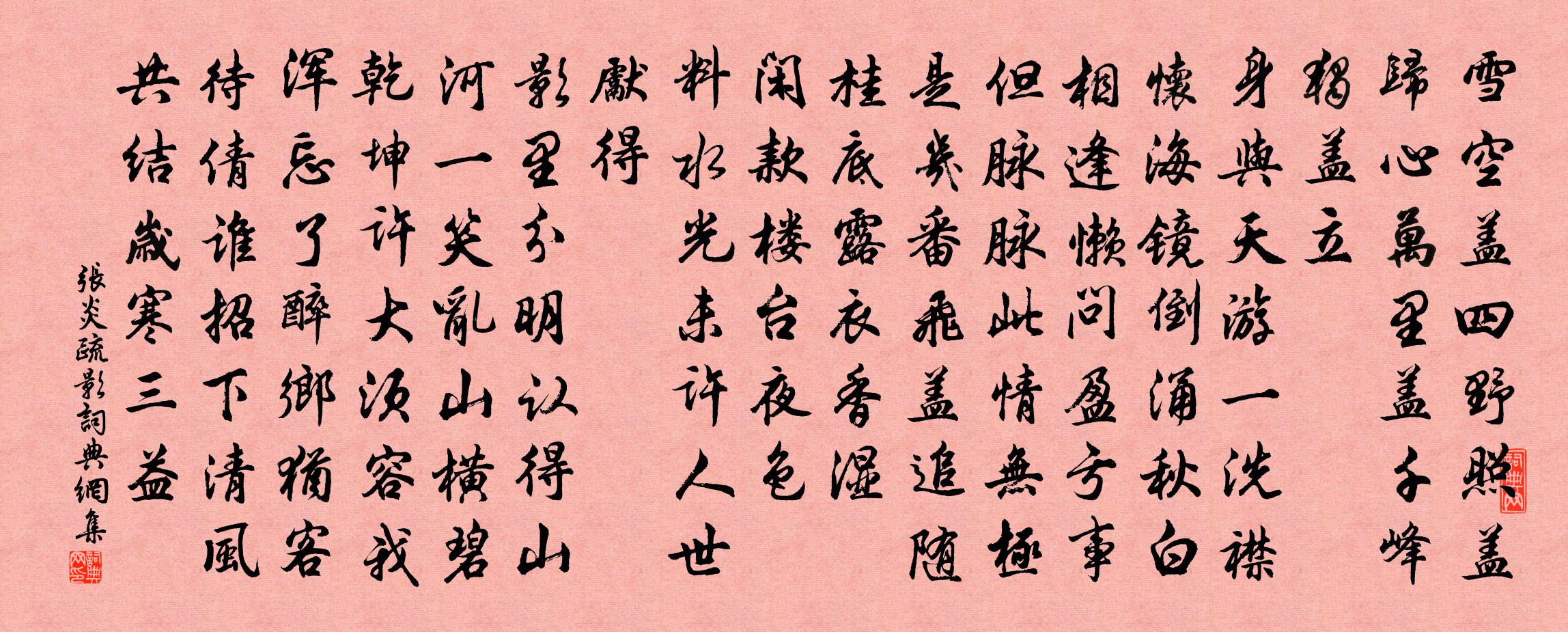 雪空蓋四野,照蓋歸心萬里蓋,千峰獨蓋立。身與天游,一洗襟懷,海鏡倒涌秋白。
