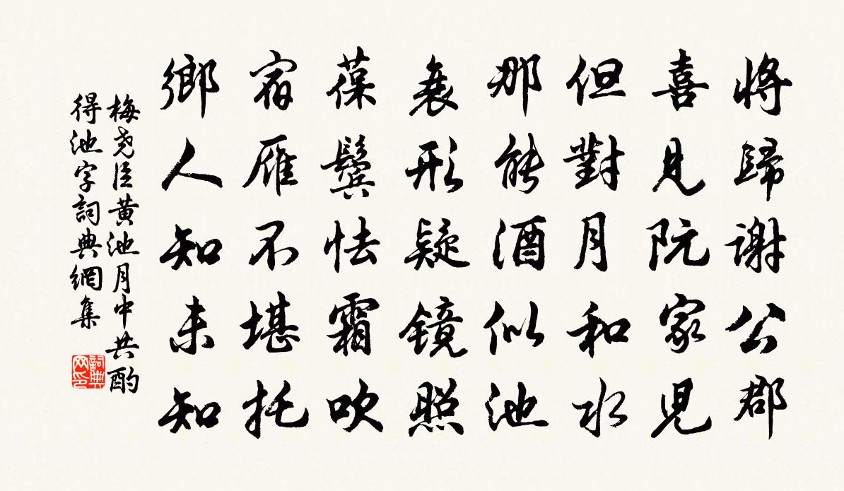 將歸謝公郡,喜見阮家兒。但對月和水,那能酒似池。