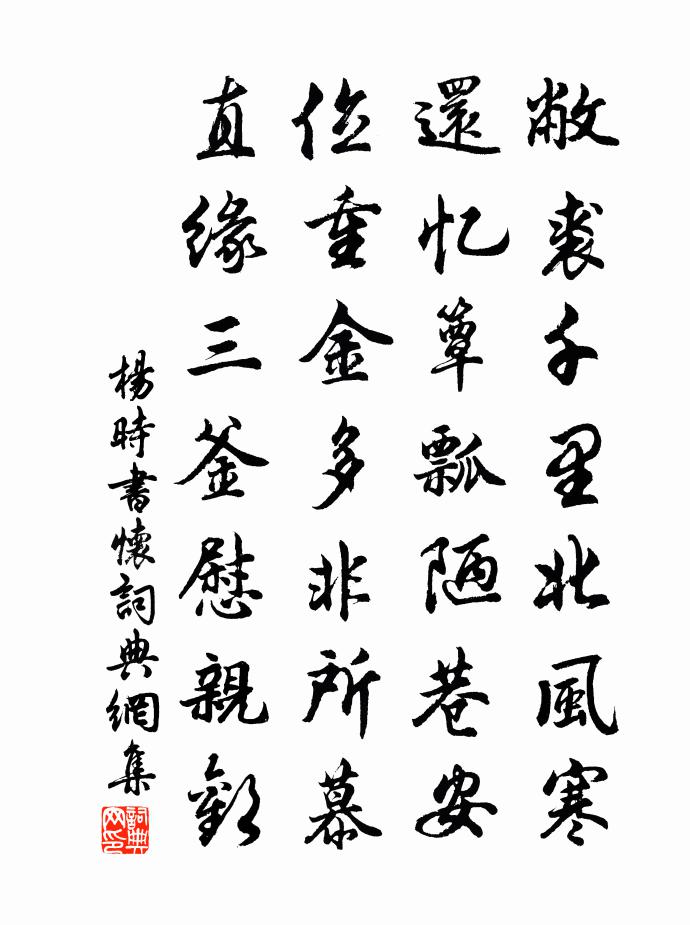 詩詞名句歷史字典書法欣賞書法字典國語詞典說文解字康熙字典古漢語字典標 題 作 者 詩 句 書懷作者:楊時 朝代:宋代書懷原文敝裘千里北風寒,還憶簟瓢陋巷安。位重金多非所慕,直緣三釜慰親歡。詩詞問答問:書懷的作者是誰?答:楊時問:書懷寫於哪個朝代?答:宋代楊時書懷書法欣賞書懷書法作品詩詞推薦次韻斯遠重別六言四首趙蕃〔宋代〕君才絕出輩流,語不驚人不休。莫嘆陽春寡和,會逢知我春秋。游岩豅寺陳天麟〔宋代〕山疑夢裹槐安國,僧住壺公小隱正。門橫一水與世隔,不知魚鼓今幾年。真人陰崖結茅屋,大千世界一粒粟,佛言蒲圻道中遇雪二首王炎〔宋代〕天慘雲垂地,風寒雪塞塗。驟看花滿眼,己覺粟生膚。冷屋無鳴漏,冰枝有立烏。馬寒如}蝟縮,行役厭馳驅。難老堂周元翁家陳與義〔宋代〕城南烏聲和且都,我識丈人屋上烏。難老堂中一樽酒,不教霜雪上髭鬚。樊侯種梓用葛謁,丈人向來亦種德。挽回送明甫赴銅鉛場六言七首劉克莊〔宋代〕出程行店絕少,官捨去家匪遙。吾聞粉□□□,□□紅巾已梟。次韻李允道四言方回〔宋代〕之子酒所,龍蛇揮掃。清風拂硯,明月視稿。佳思湧出,傍觀驚倒。豈不有學,升之曰造。送邕州高教授二首項安世〔宋代〕聽說邕州暫駐航,有金如粟馬如羊。五千里地通中國,四十三州控大荒。武事建時文未喪,化風宣處教無方。朝家淳化鄉飲酒三十三章佚名〔宋代〕蘋蘩芳滋,同誰掇之。顧言賢輔,同揚德光。致政張教授晚而買妾有女戲贈姜特立〔宋代〕隱君無婦幾經時,暮景鰥居卻未宜。且喜中郎新有女,豈容白傅老無兒。閨中不著玉川婢,天下應傳京兆眉。無計送趙德莊右司赴江東漕八首曾協〔宋代〕飽學兼內外,超然悟空無。是身任東西,乾坤一蘧廬。目前謾紛紜,一致總萬殊。良欲行世間,不效山澤癯。庚申元日口號陸游〔宋代〕南陌東阡自在身,耄年喜見歲華新。洛中九老非吾侶,且作山陰十老人。和潮韻潘璵〔宋代〕海若驅車到浙江,西風吹起水雲鄉。雷轟萬鼓不成雨,雪駕千峰只薦涼。犀手謾持吳弩射,貂璫空走伍祠香。登樓寄方叔姜特立〔宋代〕落葉滿滄灣,墜露濕疏柳。幽人曉無事,杖策經林阜。忽焉若有省,懷此山中友。便欲借風翰,翩翩插雙肘。盆中石菖蒲張九成〔宋代〕清姿水石間,相得不可無。如人飽道義,其色長敷腴。不受塵土覆,自與人世殊。我何愛軒冕,冒昧名利塗。聖人懷程正翁廖行之〔宋代〕江上送君歸,燈前凝我思。源流嗟世遠,師友不吾欺。此道無今昔,人生易別離。江湖幾千里,從此尚心期。生查子王千秋〔宋代〕鶯聲恰恰嬌,草色纖纖嫩。詩鬢已驚霜,鏡葉慵拈杏。因何積恨山,著底攻愁陣。春事到荼,還是無音信。和趙南塘離支五絕劉克莊〔宋代〕側生海畔遠難將,風日尤能變色漿。借問驛馳丞相府,何如輦致道山堂。偈頌七十六首釋師觀〔宋代〕六月炎炎如火聚,就中自有清涼處。犀牛扇子謾相隨,頭角崢嶸誰敢覷。社日游開元觀(時當水荒之後)薛逢〔唐代〕松柏當軒蔓桂籬,古壇衰草暮風吹。荒涼院宇無人到,寂寞煙霞只自知。浪漬法堂余像設,水存虛殿半科儀。因求浣溪沙曹冠〔宋代〕槐柳風微軒檻涼。芙蕖綠葉映池光。幾多飛蓋擁紅妝。泉試雲龍花乳泛,袖籠寶鼎水沈香。絞楸戲戰賭霞觴。名句推薦中山人予之貓,貓善捕鼠及雞。劉基《乞貓》 新園鎖卻愁陰,露黃漫委,寒香半畝。吳文英《瑞龍吟·送梅津》 存為善之心,不必邀為善之名。王永彬《圍爐夜話·第五五則》 厚祿故人書斷絕,恆飢稚子色淒涼。杜甫《狂夫》 義膽包天,忠肝蓋地,四海無人識。施耐庵《念奴嬌·天南地北》 官無恆友,禍存斯虛,勢之所然,智者弗怠焉。來俊臣《羅織經·謀劃卷第九》 舍其所爭,取其所棄,不亦君子乎?王通《中說·卷四·事君篇》 士有妒友,則賢交不親。荀子《荀子·大略》 美女渭橋東,春還事蠶作。李白《陌上桑》 馬毛帶雪汗氣蒸,五花連錢旋作冰,幕中草檄硯水凝。岑參《走馬川行奉送出師西征 / 走馬川行奉送封大夫出師西征》