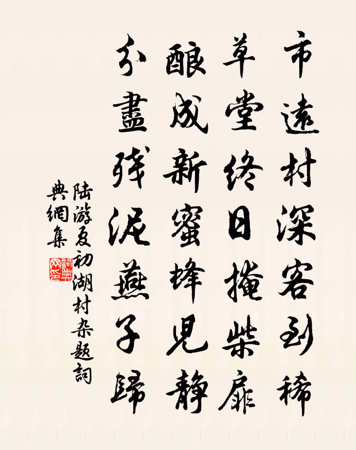 市遠村深客到稀,草堂終日掩柴扉。釀成新蜜蜂兒靜,分盡殘泥燕子歸。