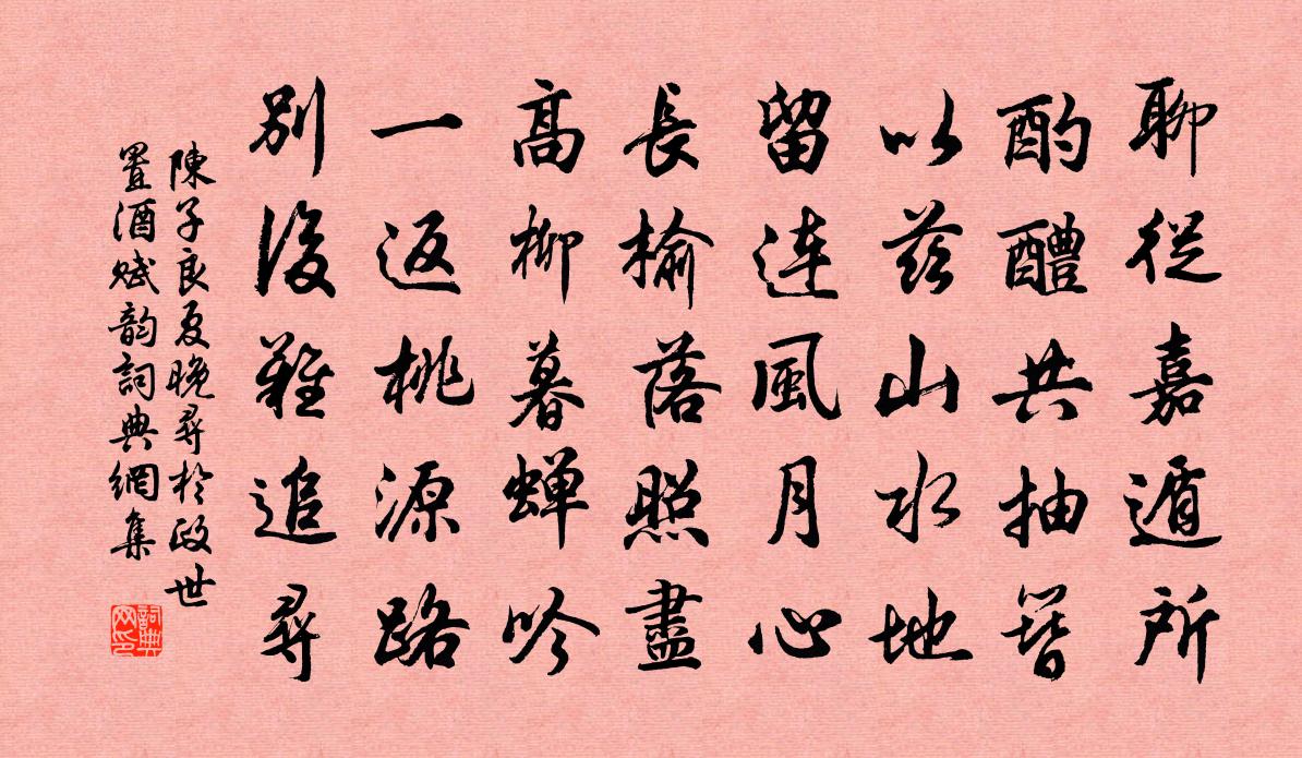 詩詞名句歷史字典書法欣賞書法字典國語詞典說文解字康熙字典古漢語字典標 題 作 者 詩 句 夏晚尋於政世置酒賦韻作者:陳子良 朝代:唐代夏晚尋於政世置酒賦韻原文聊從嘉遁所,酌醴共抽簪。以茲山水地,留連風月心。長榆落照盡,高柳暮蟬吟。一返桃源路,別後難追尋。詩詞問答問:夏晚尋於政世置酒賦韻的作者是誰?答:陳子良問:夏晚尋於政世置酒賦韻寫於哪個朝代?答:唐代陳子良夏晚尋於政世置酒賦韻書法欣賞夏晚尋於政世置酒賦韻書法作品詩詞推薦秀亭秋懷十五首方回〔宋代〕一室局戶牖,古籍勤討刪。鬱郁忽不樂,扶杖登東山。莽蒼何所極,秋色天地間。我欲出塵世,黃鶴無由攀。憂端八冬苦雨禱晴幸應劉若訥惠詩為賀因次其韻韓元吉〔宋代〕酒難忘處能消日,雨不愁時任戴星。欲和新詩無好語,竹窗燈火夜晶熒。前漢門條侯周曇〔唐代〕上將風戈賞罰明,矛鋋嚴閉亞夫營。人君卻稟將軍令,按轡垂鞭為緩行。漁父詞(其三)趙構〔宋代〕雲灑清江江上船。一錢何得買江天。催短棹,去長川。魚蟹來傾酒舍煙。汴上有懷李易初賀鑄〔宋代〕何處經行特惘然,津頭曾送木蘭船。桃花春水生前夜,楊柳秋風憶故年。驛路尺書疑斷絕,官倉斗米愧留連。飄颻王丞相生辰喻良能〔宋代〕皇宋十一葉,時清風俗淳。實維元首明,亦繄股肱純。煌煌冀國公,自昔抱經綸。初掌黃麻誥,黼黻同卿雲。繼處戲為冥吏判伶人〔唐代〕焦湖百里,一任作獺。和姜總管送別虞儔〔宋代〕富貴如浮雲,於我初何有。轉徙浙東西,僅足糊其口。去年在吳興,民物猶未阜。賑荒事方殷,奚暇詩與酒。今年詠史上劉歆陳普〔宋代〕秀國師公雄大夫,梓枝何用嘆扶疏。劉歆父子無瓜葛,何怪昌言毀仲舒。月中仙長筌子〔元代〕歷劫清凝,鑒無私瑩澄,誰是宜表。沖虛浩渺。統萬靈機變,恢恢臨照。湛然包大道。體難測、窮通暗報。素碧誰夜宿二江驛陸游〔宋代〕雞鳴原前風折樹,夜到雙流雨如注。樺皮濕透點不明,旋設篝爐燎衣褲。重城回首一夢散,錦障氈車渺無處。新聲雜詠一百首王蠋劉克莊〔宋代〕稷下空多士,誰為國重輕。列城七十二,死者一書生。四民詩其一士范仲淹〔宋代〕前王詔多士,鹹以德為先。道從仁義廣,名由忠孝全。美祿報爾功,好爵縻爾賢。黜陟金鑒下,昭昭媸與妍。此道寄晁元中十首黃庭堅〔宋代〕沙擁大江水,泥封函谷關。古來世上雄,宰木風雨寒。魯儒守一經,亦有澗谷盤。何事窮愁極,江南庾子山。愍儒坑王安石〔宋代〕智力區區不為身,欲將何物助強秦。只應埋沒千秋後,更足詩人發冢人。子夜四時歌 夏歌 一蕭衍〔南北朝〕江南蓮花開。紅光覆碧水。色同心復同。藕異心無異。和御製游慈恩寺慈恩寺沙〔唐代〕皇風扇祇樹,至德茂禪林。仙華曜日彩,神幡曳遠陰。綺殿籠霞影,飛閣出雲心。細草希慈澤,恩光重更深。題徐氏金湖書院梁白〔宋代〕煙霞縹緲鎖仙鄉,萬卷詩書一草堂。孝義聲華輝北闕,門閭烜赫照南方。千尋瀑布侵肌冷,四季間花撲鼻香。正是寄友釋文珦〔宋代〕半生行李各東西,無柰相思億萬重。又恐因書增別恨,人行不敢寄緘封。湖上喜晴方回〔宋代〕人閒塵不到,別是一清涼。雨足千峰淨,風薰百草香。陰森穿茂密,汩虢溯深長。想見吳中路,連天盡綠秧。名句推薦白雲一片去悠悠,青楓浦上不勝愁。張若虛《春江花月夜》 不成拋擲,夢裡終相覓。王國維《點絳唇·屏卻相思》 看雪飛、苹底蘆梢,未如鬢白。吳文英《瑞鶴仙·秋感》 劍河風急雪片闊,沙口石凍馬蹄脫。岑參《輪台歌奉送封大夫出師西征》 野客預知農事好,三冬瑞雪未全消。戴復古《除夜》 晻靄寒氛萬里凝,闌乾陰崖千丈冰。岑參《天山雪歌送蕭治歸京》 庭下如積水空明,水中藻、荇交橫,蓋竹柏影也。蘇軾《記承天寺夜遊 / 記承天夜遊》 燕歌未斷塞鴻飛,牧馬群嘶邊草綠。李益《塞下曲·其一》 無端和淚拭胭脂,惹教雙翅垂張泌《蝴蝶兒·蝴蝶兒》 五原秋草綠,胡馬一何驕。李白《塞上曲》
