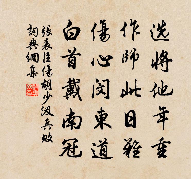 詩詞名句歷史字典書法欣賞書法字典國語詞典說文解字康熙字典古漢語字典標 題 作 者 詩 句 傷胡少汲兵敗作者:張表臣 朝代:宋代傷胡少汲兵敗原文選將他年重,作師此日難。傷心閔東道,白首戴南冠。詩詞問答問:傷胡少汲兵敗的作者是誰?答:張表臣問:傷胡少汲兵敗寫於哪個朝代?答:宋代張表臣傷胡少汲兵敗書法欣賞傷胡少汲兵敗書法作品詩詞推薦西園張耒〔宋代〕滿園紅紫春無限,盡日飛鳴鳥自由。夜雨朝晴風日好,盡舒雲錦不能收。苔封池面草芊綿,鳴蚓跳蛙意若便。頗覺冬至後西湖泛舟看斷冰偶成長句李郢〔唐代〕一陽生後陰飆竭,湖上層冰看折時。雲母扇搖當殿色,珊瑚樹碎滿盤枝。斜汀藻動魚應覺,極浦波生雁未知。山影懷成父趙蕃〔宋代〕曉枕占乾鵲,昏檐數濕螢。竹風愁獨立,山雨要同聽。懶更翻黃卷,還成倒濁瓶。猶疑到或晚,戒勿掩柴扃。發金陵折柳亭二首張耒〔宋代〕綠袞溶溶日,紅飛寂寂春。青山今古事,芳草去來人。歌吹酒家市,帆檣賈客津。誰雲絕勝地,登眺更傷神。乙卯七月十六日忽報罷任李復〔宋代〕掩關忽報被刑書,自笑無堪涉世疏。白晝曾聞驚市虎,殘灰今見禍池魚。莫嗟靜影逢沙矢,猶恐余猜及鼠蔬。逆境惜春令杜安世〔宋代〕春夢無憑猶懶起。銀燭盡、畫簾低垂。小庭楊柳黃金翠,桃臉兩三枝。妝閣慵梳洗。悶無緒、玉簫拋擲。絮飄紛紛自知丘葵〔宋代〕古寺棲身又兩期,西風吹我鬢成絲。俗兒往往貌相敬,吾道悠悠心自如。盡去皮毛方是學,若無情性定非詩。可憐浴蠶沙溪水一首為上饒陳烈婦作戴表元〔宋代〕浴蠶沙溪水,採桑玉山巔。絲成白稜稜,膠作烈婦弦。烈婦何所言,弦中意 * 。一說鸞影孤,二訴雛巢穿。巢穿辛簿趙尉夜語新亭二首錢時〔宋代〕紛紛門外走紅塵,底是人間快活人。未判兩儀先太極,直須端的自家身。送盛侍郎餞候亭詩鮑照〔南北朝〕沾霜襲冠帶。驅駕越城闉。北臨出塞道。南望入鄉津。高墉宿寒霧。平野走秋塵。君為坐堂子。我乃負羈人。欣悲桓山陳師道〔宋代〕平江如抱貫秦洪,雙嶺馳來欲並雄。是物皆為萬世計,闔棺猶有一朝窮。林巒特起終為污,美惡千年竟不空。尚有江城子(約劉左史光祖謝會再和)魏了翁〔宋代〕如公何地不陽春。往來頻。醉傾銀。聞道河陽,童稚正歡迎。移向德威堂上著,疑潞國,是前身。行人還又送行人無題梅堯臣〔宋代〕斗覺瓊枝瘦,慵開寶監妝。臨風恐僊去,倚扇怯歌長。綠桂薰輕服,靈符佩縹囊。西鄰空自賦,不解到君傍。遣意釋紹嵩〔宋代〕一生生計祗長貧,跡近群鷗意倍親。舊喜讀書今懶讀,寒灰枯木僅堪倫。句俞可〔宋代〕拂座好風來橘社,隔汀長笛過松江。餘乾史子固本知縣趨朝便舟見訪以四絕句敘舊曹彥約〔宋代〕豈無魚雁懶傳書,枯枿春風不用噓。只有簡編遮眼在,馬牛猶得遠襟裾。徐師川典祀廬山延真觀用送駒父韻餞別四首王銍〔宋代〕康阜如蓬島,欲尋風引歸。煙藤猿嘯月,雲碓水鳴機。剩結餐霞侶,深隨杖錫飛。謝公行樂處,山翠撲人衣。楊戶曹用外舅二詩韻見寄和以酬之劉學箕〔宋代〕切問而近思,進進在不已。流光駒過隙,遷變一彈指。道大無津涯,詎作井蛙喜。公私義利分,亦各從其類。甘草子寇準〔宋代〕春早。柳絲無力,低拂清門道。暖日籠啼鳥。初坼桃花小。遙望碧天淨如掃。曳一縷、輕煙縹緲。堪惜流年謝芳草和答登封王晦之登樓見寄黃庭堅〔宋代〕縣樓三十六峰寒,王粲登臨獨倚闌。清坐一番春雨歇,相思千里夕陽殘。詩來嗟我不同醉,別後喜君能自寬。舉目名句推薦凡與敵戰,三軍必要得其地利,則可以寡敵眾,以弱勝強。佚名《百戰奇略·第四卷·地戰》 離多最是,東西流水,終解兩相逢。晏幾道《少年游·離多最是》 瑤草一何碧,春入武陵溪。黃庭堅《水調歌頭·遊覽》 兒女已在眼,眉目略不省。陳師道《示三子》 識時務者為俊傑,昧先幾者非明哲。程登吉《幼學瓊林·卷三·人事》 長江悲已滯,萬里念將歸。王勃《山中》 類同相召,氣同則合,聲比則應。呂不韋《呂氏春秋·覽·恃君覽》 心似已灰之木,身如不系之舟。蘇軾《自題金山畫像》 少年射虎名豪,等閒赤羽千夫膳元好問《水龍吟·從商帥國器獵於南陽同仲澤鼎玉賦此》 菊暗荷枯一夜霜。新苞綠葉照林光。蘇軾《浣溪沙·詠橘》