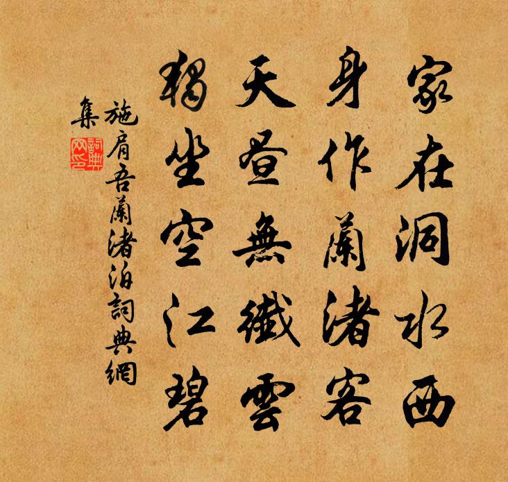 詩詞名句歷史字典書法欣賞書法字典國語詞典說文解字康熙字典古漢語字典標 題 作 者 詩 句 蘭渚泊作者:施肩吾 朝代:唐代蘭渚泊原文家在洞水西,身作蘭渚客。天晝無纖雲,獨坐空江碧。詩詞問答問:蘭渚泊的作者是誰?答:施肩吾問:蘭渚泊寫於哪個朝代?答:唐代問:蘭渚泊是什麼體裁?答:五絕施肩吾蘭渚泊書法欣賞蘭渚泊書法作品注釋全唐詩:卷494-33詩詞推薦別東武流杯蘇軾〔宋代〕莫笑官居如傳舍,故應人世等浮雲。百年父老知誰在,惟有雙松識使君。鷓鴣天(壽徐主簿)郭應祥〔宋代〕前數重陽後小春。中間十日是生辰。二年穩作棲鸞客,百里誰非賀燕人。無一事,擾天真。年登八八愈精神。句稽望雨邵雍〔宋代〕盛夏久不雨,滿天下愁苦。安得一片雲,救取人間否。次唐彥猷顧亭林韻宋輝〔宋代〕昔時高士宅,今日梵王居。樓影銜山遠,鐘聲隔岸疎。風流嗟往事,精爽閟遺墟。回首鳥衣巷,凋零兵火余。再和十首蘇轍〔宋代〕一官疏散自疑仙,三考應成醉日千。早病固須閒地著,多憂長被達人憐。偈六十九首釋道寧〔宋代〕數日寺門浩浩,全身走入荒草。五湖高士安禪,休要別處尋討。廊下喏諾分明,階前斛斟叫噪。勞生日用無私,般樞密謝公輓詞樓鑰〔宋代〕臣主一意合,風雲平地生。立朝專論諫,為國總樞衡。行矣登三事,悲哉奠兩楹。輟瓜恩意重,終始備哀榮。琴調相思引趙彥端〔宋代〕曾躡姑蘇城上台。好山知有好人來。幾回徙倚,月里暮雲開。閒倚和風千步柳,倦臨殘雪一枝梅。暖香高燭,翻動東齋夜興陸游〔宋代〕山城殘角伴疏鍾,擁褐頹然一病翁。紙帳燈明蹙龜甲,銅瓶火熟起松風。雨來尤覺睡味美,酒後不知愁思空。忽憶臨終偈楊權〔宋代〕七十九年夢覺,五湖四海隨緣。撥轉雲頭歸去,曉日東升赤然。龐道者名悟超讚黃庭堅〔宋代〕悟道識性,超凡入聖。文殊一源,普賢萬行。又記呂岩〔唐代〕數載樂幽幽,欲逃寒暑逼。不求名與利,猶恐身心役。苦志慕黃庭,殷勤求道跡。陰功暗心修,善行長日積。世路陽台曲楊維楨〔元代〕月落望夫山,高台十二鬟。楚宮多妒女,雲雨夢中還。詠吳中二燈琉璃球范成大〔宋代〕龍綜繅冰繭,魚文鏤玉英。雨絲風外縐,雲網日邊明。疊暈重重見,分光面面呈。不深閒里趣,爭識箇中情。菩薩蠻(續前意,時溧陽之行有日矣)李處全〔宋代〕杜鵑只管催歸去。知渠教我歸何處。故國淚生痕。那堪枕上聞。嚴裝吾已具。泛宅吳中路。弭棹喚東鄰。江東日暮點絳唇姚述堯〔宋代〕瀟灑寒林,玉叢遙映松篁底。鳳簪斜倚。笑傲東風裡。一種幽芳,自有先春意。香風細。國人爭媚。不數桃和李。和李商隱賦紅梅王洋〔宋代〕公主檐間睡起時,勻紅行繞大安池。北人未識春迷眼,妃子偏憐酒入肌。更若施朱疑太赤,不鬚生女白如脂。由來十分吟邵雍〔宋代〕所謂十分人,須有十分事。事苟不十分,終是未完備。事父盡其心,事兄盡其意。事君盡其忠,事師盡其義。早發橐皋王之道〔宋代〕春秋遺蹟舊山川,魯破吳亡久寂然。恰到前年征戰處,數間茅屋起炊煙。王思道碑堂下作劉禹錫〔唐代〕蒼蒼宰樹起寒煙,尚有威名海內傳。四府舊聞多故吏,幾人垂淚拜碑前。名句推薦若有知音見采,不辭遍唱陽春。晏殊《山亭柳·贈歌者》 斷虹霽雨,淨秋空,山染修眉新綠。黃庭堅《念奴嬌·斷虹霽雨》 樹陰滿地日當午,夢覺流鶯時一聲。蘇舜欽《夏意》 爭奈愁來,一日卻為長賀鑄《行路難·縛虎手》 聖人自知不自見;自愛不自貴。老子《老子·德經·第七十二章》 逢人且說三分話,未可全拋一片心。佚名《增廣賢文·上集》 明月何皎皎,照我羅床幃。佚名《明月何皎皎》 觀書老眼明如鏡,論事驚人膽滿軀辛棄疾《送湖南部曲》 日月之行,若出其中。曹操《觀滄海 / 碣石篇》 到家應是,童稚牽衣,笑我華顛。吳激《訴衷情·夜寒茅店不成眠》