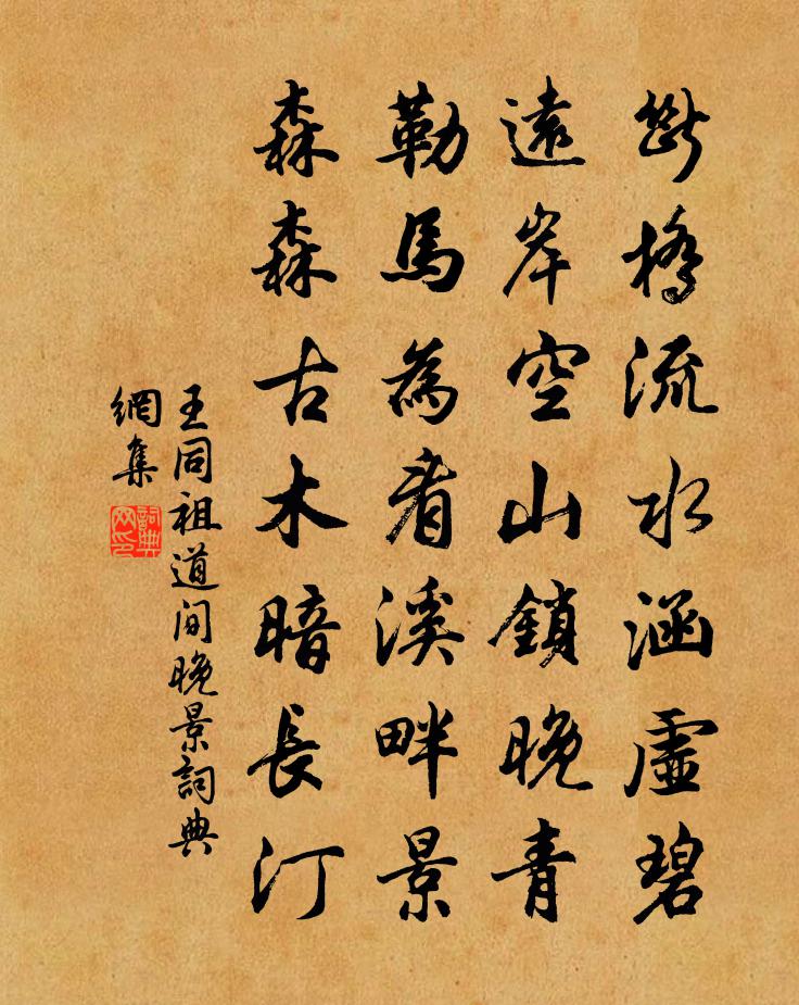 詩詞名句歷史字典書法欣賞書法字典國語詞典說文解字康熙字典古漢語字典標 題 作 者 詩 句 道間晚景作者:王同祖 朝代:宋代道間晚景原文斷橋流水涵虛碧,遠岸空山鎖晚青。勒馬為看溪畔景,森森古木暗長汀。詩詞問答問:道間晚景的作者是誰?答:王同祖問:道間晚景寫於哪個朝代?答:宋代王同祖道間晚景書法欣賞道間晚景書法作品詩詞推薦浣溪沙慕容嵓卿〔宋代〕滿目江山憶舊遊。汀洲花草弄春柔。長亭艤住木蘭舟。好夢易隨流水去,芳心空逐曉雲愁。行人莫上望京樓。句李建中〔宋代〕晴山雲罨畫,孤嶼水含稜。涼夜有懷 自此後詩並為應舉時作。白居易〔唐代〕清風吹枕席,白露濕衣裳。好是相親夜,漏遲天氣涼。臨安還游金龍洞志感趙鎮〔宋代〕幾年岩徑違清賞,今日雲蘿躡舊蹤。剎閣春陰宜燕雀,天池雷雨起蛟龍。崖流玉液空蓮座,風激篔簹送梵鍾。沿口玉漏遲何夢桂〔宋代〕青衫華發,對風霜、倚遍危樓孤嘯。惡浪平波,看盡世間多少。忘卻金閨故步,都付與、野花啼鳥。祗自笑。悠悠挽宋大卿陳宓〔宋代〕蚤歲收科耀里閭,家傳祖訓是詩書。棠陰尚使民思惠,典計能令國有儲。九列簉班嗟已晚,十連奏最召方初。輀車柳梢青(趙端禮生日)李彌遜〔宋代〕壽煙籠席。採蓮新按,舞腰無力。占盡風光,人間天上,今夕何夕。藍袍換了萊衣,慶歲歲、君恩屢錫。連夜歡聲偶成趙汝鐩〔宋代〕青雲得志士,頤指快所欲。萬事付杯酒,粉黛貯金屋。嗟我骨相窮,不受富貴逐。嗜欲人所同,有時未免欲。青奴皇后閣端午帖子夏竦〔宋代〕迎祥競獻雙條達,續壽初纏五色絲。共仰齋莊隆內訓,永觀蕃衍藏仙枝。次韻柳子玉見寄蘇軾〔宋代〕薄雷輕雨曉晴初,陌上春泥未濺裾。行樂及時雖有酒,出門無侶漫看書。遙知寒食催歸騎,定把鴟夷載後車。他日衡山道中遇雪四首趙蕃〔宋代〕驟落真成點綴,旋風已復模糊。莫擬丹青圖畫,且看造物工夫。和曼叔靈樹相別韓維〔宋代〕男兒易為別,尋尺固可輕。今日摻子祛,悽惶不自平。豈其道里遠,要是隔音形。春風卷行跡,車馬無留征。回首游山歸遇雨呈仲靈沖晦楊蟠〔宋代〕九里松門雪過時,籃輿裊裊礙松枝。雨留宿客還斜落,風送行人亦倒吹。華表忽驚黃鶴反,耳中猶帶白猿悲。來朝和子瞻和陶淵明雜詩十一首蘇轍〔宋代〕五年寓黃閣,盛服朝玄端。愧無昔人姿,謬作奇章遷。還從九淵底,回望百尺巔。身世俱一夢,往來適三餐。天公觀李中丞洪二美人唱歌軋箏歌(時量移湖州長史)皎然〔唐代〕君家雙美姬,善歌工箏人莫知。軋用蜀竹弦楚絲,清哇宛轉聲相隨。夜靜酒闌佳月前,高張水引何淵淵。美人矜名夜合花(和李浩季良牡丹)晁補之〔宋代〕百紫千紅,占春多少,共推絕世花王。西都萬家俱好,不為姚黃。謾腸斷巫陽。對沈香、亭北新妝。記清平調,詞過宜興舟中見霅川諸山李曾伯〔宋代〕八年不見此山青,一見殊增老眼明。鬢髮已從霜露改,翠屏只在水天橫。纖塵不染皆秋色,久間相於若世情。朝爽醉歌殷七七〔唐代〕琴彈碧玉調,藥煉白硃砂。解醞頃刻酒,能開非時花。秋蓮劉因〔元代〕瘦影亭亭不自容,淡香杳杳欲誰通?不堪翠減紅銷際,更在江清月冷中。擬欲青房全晚節,豈知白露已秋風。盛衰安陸贈徐礪羅隱〔唐代〕靈蛇橋下水聲聲,曾向橋邊話別情。一榻偶依陳太守,三年深憶禰先生。塵欺鬢色非前事,火爇蓬根有去程。還把名句推薦武帝宮中人去盡,年年春色為誰來。岑參《登古鄴城》 空勞縴手,解佩贈情人。牛希濟《臨江仙·柳帶搖風漢水濱》 前村深雪裡,昨夜一枝開。齊己《早梅》 絳雪生涼,碧霞籠夜,小立中庭蕪地。吳文英《拜星月慢·林鐘羽姜石帚以盆蓮數十置中庭宴客其中》 玉樹歌殘猶有曲,錦帆歸去已無家。曾棨《維揚懷古》 敵之大,無過不知;禍之烈,友敵為甚。來俊臣《羅織經·制敵卷第五》 內省不疚,夫何憂何懼!孔子弟子《論語·顏淵篇》 正不容邪,邪復妒正。曹雪芹《紅樓夢·第二回》 別來幾春未還家,玉窗五見櫻桃花。李白《久別離》 君子素其位而行,不願乎其外。子思《中庸·第十四章》