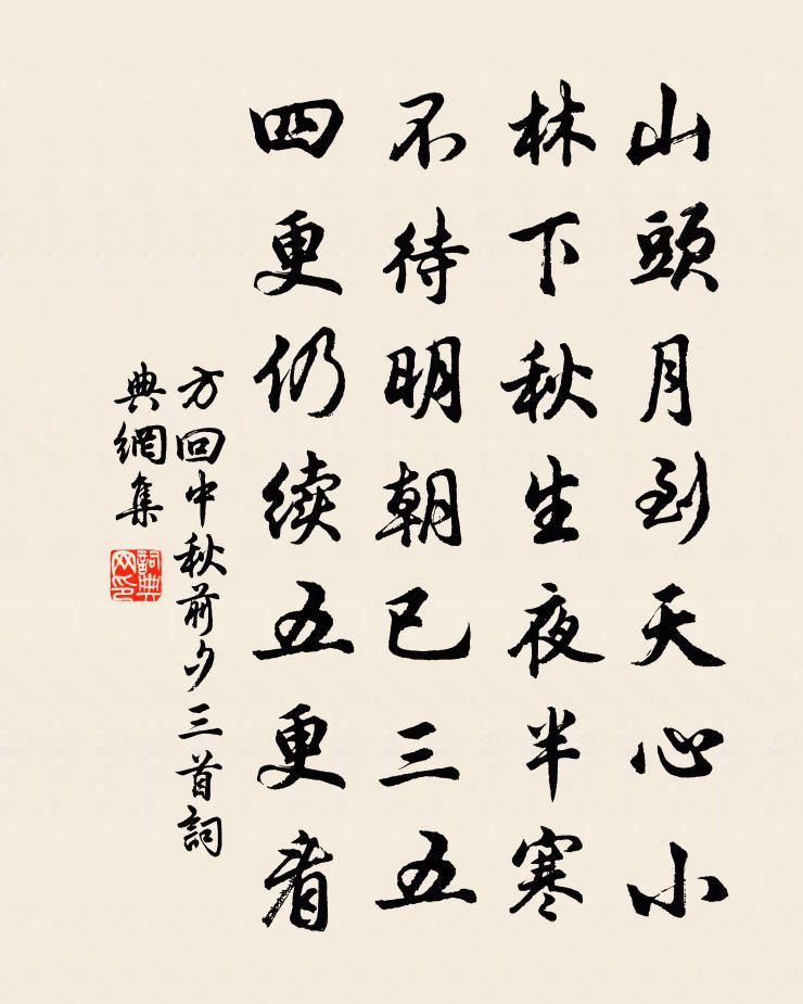 詩詞名句歷史字典書法欣賞書法字典國語詞典說文解字康熙字典古漢語字典標 題 作 者 詩 句 中秋前夕三首作者:方回 朝代:宋代中秋前夕三首原文山頭月到天心小,林下秋生夜半寒。不待明朝已三五,四更仍續五更看。詩詞問答問:中秋前夕三首的作者是誰?答:方回問:中秋前夕三首寫於哪個朝代?答:宋代方回中秋前夕三首書法欣賞中秋前夕三首書法作品詩詞推薦雜曲歌辭盧姬篇崔顥〔唐代〕盧姬小小魏王家,綠鬢紅唇桃李花。魏玉綺樓十二重,水精簾箔繡芙蓉。白玉闌乾金作柱,樓上朝朝學歌舞。前堂舞曲歌辭。凱樂歌辭。應聖期佚名〔唐代〕聖德期昌運,雍熙萬宇清。乾坤資化育,海岳共休明。闢土欣耕稼,銷戈遂偃兵。殊方歌帝澤,執贄駕昇平。送任伋通判黃州兼寄其兄孜蘇軾〔宋代〕吾州之豪任公子,少年盛壯日千里。無媒自進誰識之,有才不用今老矣。別來十年學不厭,讀破萬卷詩愈美。黃州酬謝商秘丞見贈詩牌魏野〔宋代〕初得春方暖,今來歲已闌。紫泥辭卻易,白雪和終難。頻拂心寧倦,時吟齒覺寒。會須親謝去,閒拄折魚竿。木蘭花李商隱〔唐代〕洞庭波冷曉侵雲,日日征帆送遠人。幾度木蘭舟上望,不知元是此花身。再用前韻張栻〔宋代〕元化首萬類,聖學極幾深。有如亞聖賢,尚謹殆與淫。淺見僅一斑,歡喜不自禁。豈知天地全,於穆千聖心。嗟哉次韻林郎中龔宗簿陳造〔宋代〕散人擁書茅屋底,只合下澤居鄉里。浪指青冥期策足,端復滄浪規洗耳。林侯坐分韓席半,龔侯天才寧羽慣。瓢酌腳婆子虞儔〔宋代〕此姥原無姑與嗔,平生氣類竹夫人。蛾眉漸遣溫柔夢,鴟腹猶疑見在身。包裹形模才一衲,薰蒸湯沸穩相親。承恩偈頌七十八首釋正覺〔宋代〕玉線金針相續難,劫壺空處妙投關。香林煙暖風排雪,月窟冰寒影轉山。里許借功方得活,那時退位不知閒。宗家後庭宴佚名〔宋代〕千里故鄉,十年華屋,亂魂飛過屏山簇。眼重眉褪不勝春,菱花知我銷香玉。雙雙燕子歸來,應解笑人幽獨。斷歌賦椿楸二樹鄧深〔宋代〕愛均召伯棠,名殊諸葛菜。軒檻頓輝光,東西相映帶。此意存千年,其勢當兩大。梨棗況久生,於焉稱內外。洞仙歌佚名〔宋代〕余寒未展,簾幕新來燕。楊柳梢頭嫩黃染。小溪山繚繞,別是風煙,春澹澹,誰道蓬萊路遠。冰姿人不老,長伴春挽柯東海劉克莊〔宋代〕不持寸鐵霸斯文,疇昔曾將膽許君。撰出騷詞奴宋玉,寫成帖字婢羊欣。喪無歸費人爭賻,詩有高名虜亦聞。昨覽龍山送客二首楊萬里〔宋代〕念念還鄉未得還,偶因送客到龍山。分明認得西歸路,只是回車卻入關。寒夜移疾陸游〔宋代〕南山北山高嶙峋,朝雨暮雨斷江津。時人正作市朝夢,老子已成雲水身。希世強顏心自媿,閉門謝病客生嗔。天公贈鍾尊師游茅山李中〔唐代〕筇杖擔琴背俗塵,路尋茅嶺有誰群。仙翁物外應相遇,靈藥壺中必許分。香入肌膚花洞酒,冷侵魂夢石床雲。伊予三友亭華岳〔宋代〕老松疏竹間梅英,三友如何獨擅名。應是枇杷並檜柏,當時無力預同盟。王持中讀余近詩跋以五絕因次其韻吳則禮〔宋代〕覉臣未覺詩無敵,老境誰言思不群。自有阿持提律令,且看山衲度江雲。和林帥喜湯王二魁將還舒邦佐〔宋代〕爛 * 玉不頹,自封喜信入湘來。同鄉多少同年士,兩傍何如兩奪魁。瓊苑宴開應共醉,西湖賞罷更同回。早歸留題清涼院王益〔宋代〕背倚青峰面枕溪,濡毫新向壁間題。善根不撓金蓮合,淨界無塵水月齊。會啟苾蒭真樂境,花開檐蔔遠香畦。因思名句推薦天下皆知取之為取,而莫知與之為取。范曄《後漢書·列傳·桓譚馮衍列傳上》 萬馬不嘶,一聲寒角,令行柳營。劉過《沁園春·張路分秋閱》 為高必因丘陵,為下必因川澤。孟子《孟子·離婁章句上·第一節》 明者防於無形,治者制其未亂魏徵《隋書·列傳·卷四》 內不失真,而外不殊俗王通《中說·卷六·禮樂篇》 遠看山有色,近聽水無聲王維《畫》 月有盈虧花有開謝,想人生最苦離別。張鳴善《普天樂·詠世》 殘月出門時,美人和淚辭。韋莊《菩薩蠻·紅樓別夜堪惆悵》 一霎荷塘過雨,明朝便是秋聲。項鴻祚《清平樂·池上納涼》 小雨濕黃昏。重午佳辰獨掩門。李之儀《南鄉子·端午》