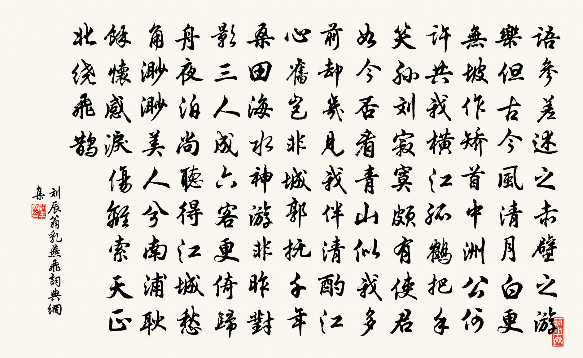 赤壁之遊樂。但古今、風清月白,更無坡作。矯首中洲公何許,共我橫江孤鶴。把手笑、孫劉寂寞。頗有使君如今否,看青山、似我多前卻。幾見我、伴清酌。
