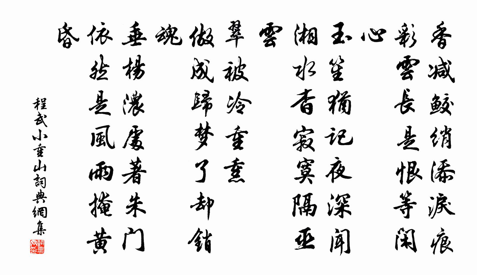 詩詞名句歷史字典書法欣賞書法字典國語詞典說文解字康熙字典古漢語字典標 題 作 者 詩 句 小重山作者:程武 朝代:宋代小重山原文香減鮫綃添淚痕。彩雲長是恨,等閒心。玉笙猶記夜深聞。湘水杳,寂寞隔巫雲。翠被冷重熏。做成歸夢了,卻銷魂。垂楊濃處著朱門。依然是,風雨掩黃昏。詩詞問答問:小重山的作者是誰?答:程武問:小重山寫於哪個朝代?答:宋代問:小重山是什麼體裁?答:詞程武小重山書法欣賞小重山書法作品詩詞推薦題畫二首張耒〔宋代〕敗蘆浸水凍灘沙,朔雪隨風亂綴花。濕翅老鴻鳴未起,暮雲山色暗天涯。菊花十二首史鑄〔宋代〕無艷無妖別有香,知心誰解賞孤芳。淵明酩酊知何處,安得斯人共一觴。竹下方岳〔宋代〕松陰竹影當行窩,日日扶筇一再過。與世無求乾牘少,對人可語笑談多。一夔一契付公等,某水某丘如我何。歲晚花石詩十一章鄧肅〔宋代〕天為黎民生父母,勝景直須盡寰宇。豈同臣庶作園池,但隔牆籬分爾汝。山間偶成二絕王炎〔宋代〕隔枝啼鳥喚幽夢,排闥青山無世情。綠樹陰陰遮日影,虛窗臥看白雲行。恭和御製秋日幸秘書省近體詩呂祖謙〔宋代〕麟閣龍旂日月章,中興再見赭袍光。仰觀焜燿人文盛,始識扶持德意長。功利從今卑管晏,浮華自昔陋盧王。願將偈頌二百零五首釋正覺〔宋代〕壽等南山,位崇北斗。機運象先,體同道久。明逾日月兮普及幽深,德合乾坤兮廓無前後。相見歡薛昭蘊〔唐代〕羅襦繡袂香紅,畫堂中。細草平沙蕃馬、小屏風。行住坐臥三十二頌釋印肅〔宋代〕護淨燒湯不離坑,慈和三昧益群盲。十方諸佛皆如是,豈效披毛業報生。減字木蘭花歐陽修〔宋代〕留春不住。燕老鶯慵無覓處。說似殘春。一老應無卻少人。風和月好。辦得黃金須買笑。愛惜芳時。莫待無花空折丘慶餘畫兔周文璞〔宋代〕家住棲賢雲,泉石恣幽討。寫出明視孫,眉目增媚好。卯日行踆踆,衣褐坐芳草。脫身文字禍,見機恨不早。仰候駕幸親賢宅贈隨駕諸公蘇轍〔宋代〕日日南風夜氣煩,一聲鳴[走畢]萬人看。禁溝飛水清黃道,涼殿分冰遍從官。急雨未成昏觀闕,微飈稍覺泛和鑾次韻趙去華提乾夏日雜興七首蘇泂〔宋代〕忽然鏡里一絲絲,老卻英雄不自知。夜半閒來看青史,百年有盡此身危。留山間種藝十絕劉克莊〔宋代〕春風滿面喜津津,縱有嗔拳不忍嗔。尚恐傍觀安註腳,笑他何事與何人。瑞鶴仙元好問〔金代〕薰風□院宇。*清香、凝戶曉涼如雨。開簾望蓮渚。擁輕紅嫩綠、三千宮女。□商泛羽。命雙成、嬋娟妙舞。記當蜀葵徐夤〔唐代〕劍門南面樹,移向會仙亭。錦水饒花艷,岷山帶葉青。文君慚婉娩,神女讓娉婷。爛熳紅兼紫,飄香入繡扃。種豆吟金朋說〔宋代〕南畝種豆苗,苗稀草猶勝。農人費鋤耘,凶穢何不淨。晚春獨酌有感張耒〔宋代〕春晏岩谷秀,喬木環我居。引此西澗泉,漍漍漱我除。危橋跨方池,修竹萬有餘。人間午陰靜,鳥下驚游魚。清風水調歌頭 中秋言懷謝應芳〔元代〕戰骨縞如雪,月色慘中秋。照我三千白髮,都是亂離愁。猶喜淞江西畔,張緒門前楊柳,堪系釣魚舟。有酒適清興蝗飛高徐照〔宋代〕戰上屍上蟲,蟲老生翅翼。目怒體甲硬,豈非怨飛激。櫛櫛辮方來,橫遮遍天黑。戍婦聞我言,色變氣咽逆。良人名句推薦古人學問無遺力,少壯工夫老始成。陸游《冬夜讀書示子聿》 力勝貧,謹勝禍,慎勝害,戒勝災。劉向《說苑·談叢》 紅旗捲起農奴戟,黑手高懸霸主鞭。 * 《七律·到韶山》 恥之於人大矣。為機變之巧者,無所用恥焉。孟子《孟子·盡心章句上·第七節》 寒山幾堵,風低削碎中原路,秋空一碧無今古。陳維崧《醉落魄·詠鷹》 柴門寂寂黍飯馨,山家煙火春雨晴。貫休《春晚書山家屋壁二首》 林表明霽色,城中增暮寒。祖詠《終南望余雪》 衰世好信鬼,愚人好求福。王充《論衡·卷二十五·解除篇》 東風吹雨過青山,卻望千門草色閒。盧綸《長安春望》 記得綠羅裙,處處憐芳草。賀鑄《綠羅裙·東風柳陌長》