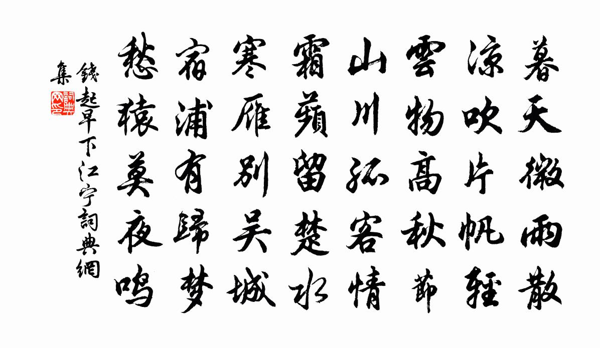 暮天微雨散,涼吹片帆輕。雲物高秋節,山川孤客情。