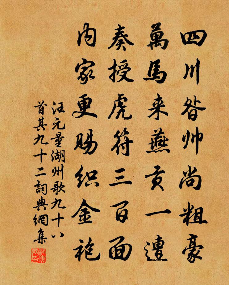 四川昝帥尚粗豪,萬馬來燕貢一遭。奏授虎符三百面,內家更賜織金袍。